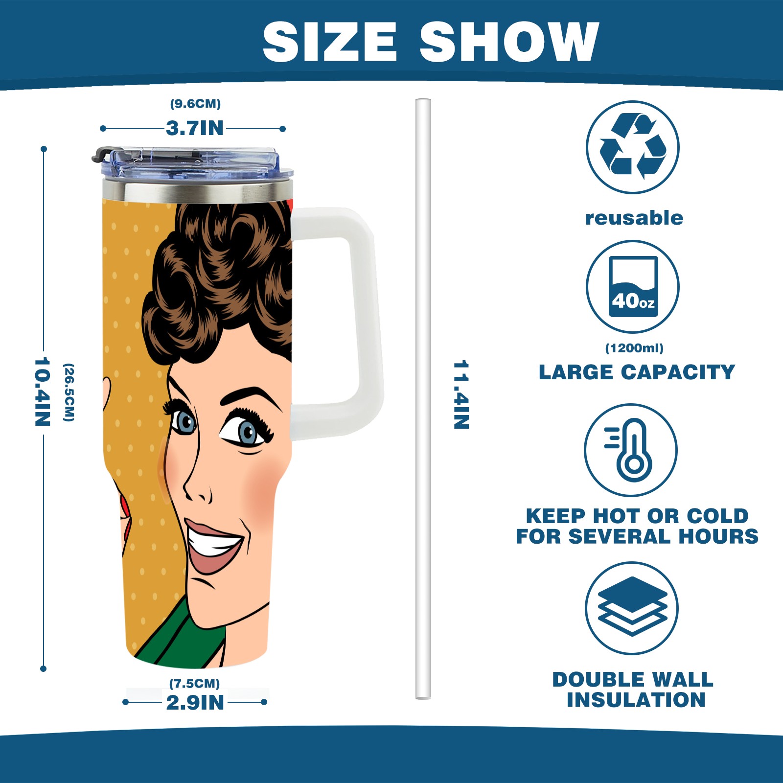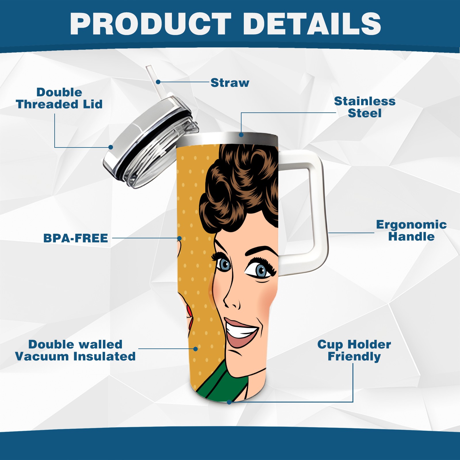 • <p>This multi-functional insulated water bottle features a simple and practical design, suitable for various daily scenarios. The ergonomic handle allows for easy one-handed drinking, and the detachable handle can be adjusted or removed as needed, making it convenient for commuting, exercising, or carrying to meetings. Made of high-quality stainless steel, it is BPA-free and features double-walled vacuum insulation technology that keeps drinks cold for 8 hours and hot for 6 hours, ensuring you can enjoy your beverage at the perfect temperature anytime, anywhere. The 40-ounce Christmas edition comes with a sliding lid, silicone straw, and a non-slip design. Accessories are dishwasher safe, and the narrow bottom and wide mouth design perfectly fits car cup holders. The exclusive flip-top straw lid is environmentally friendly and durable, with a one-touch leak-proof closure and two drinking modes: sip and gulp. A dust cover provides effective protection. This bottle is suitable for travel, office work, sports, camping, and other occasions, making it a thoughtful gift for friends and family.</p>