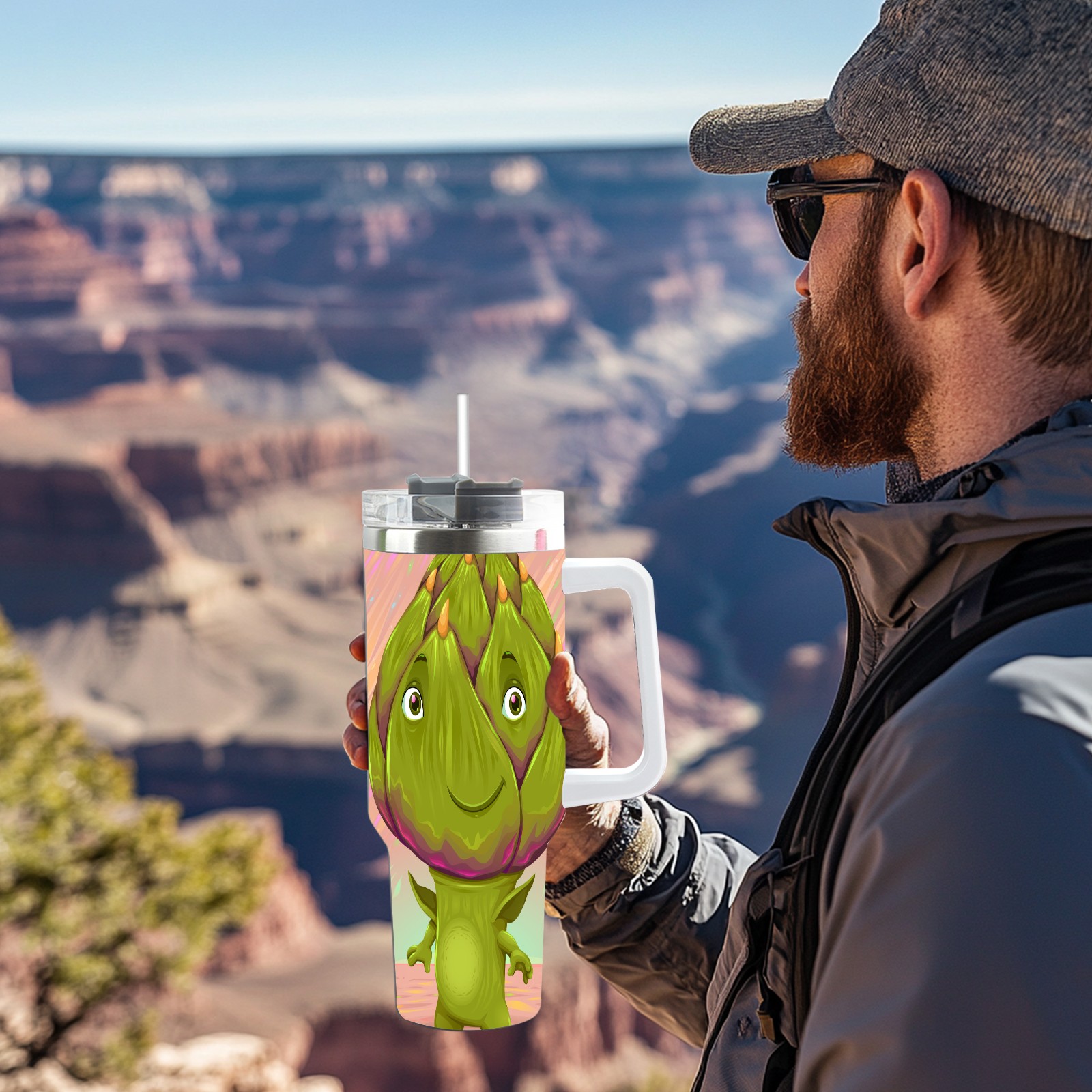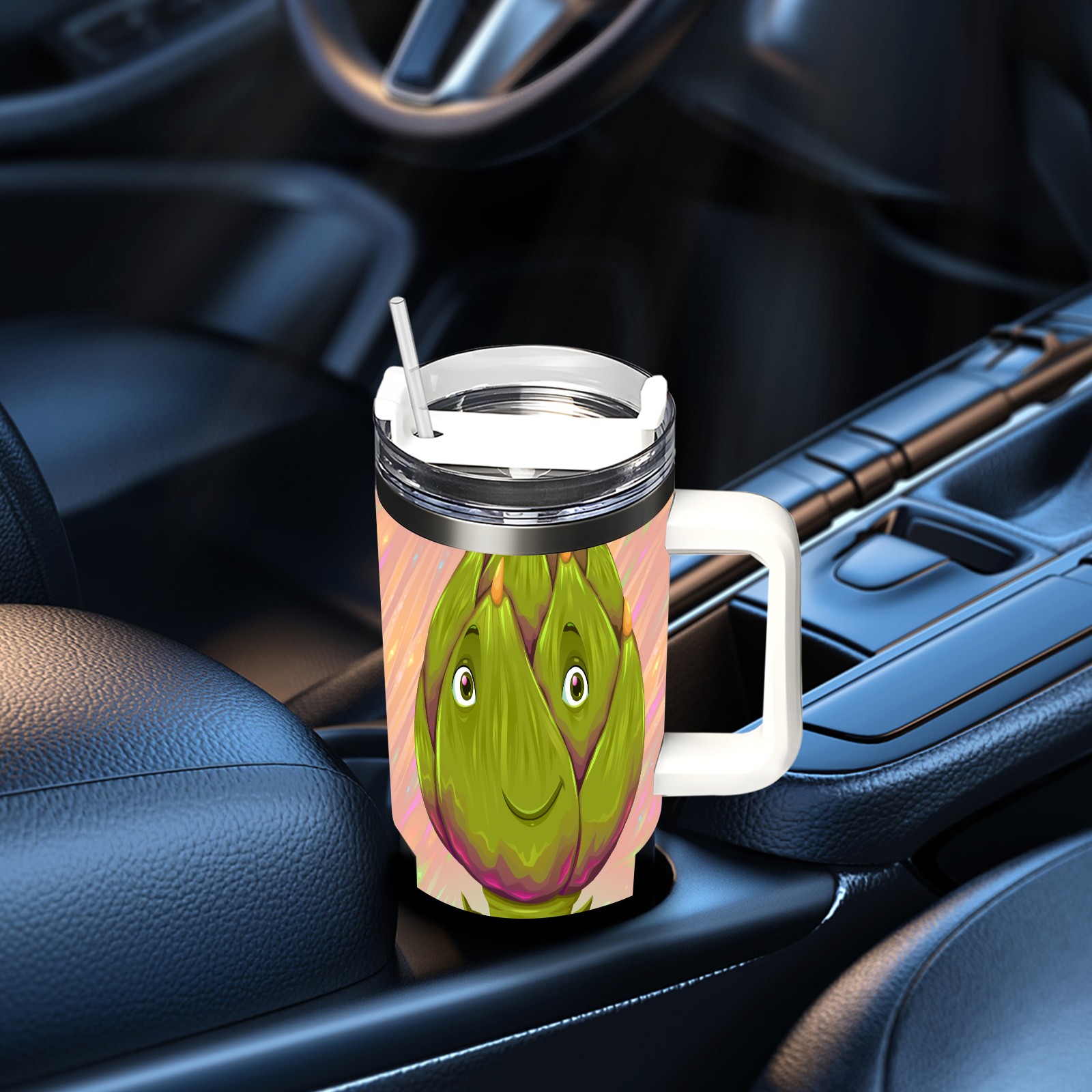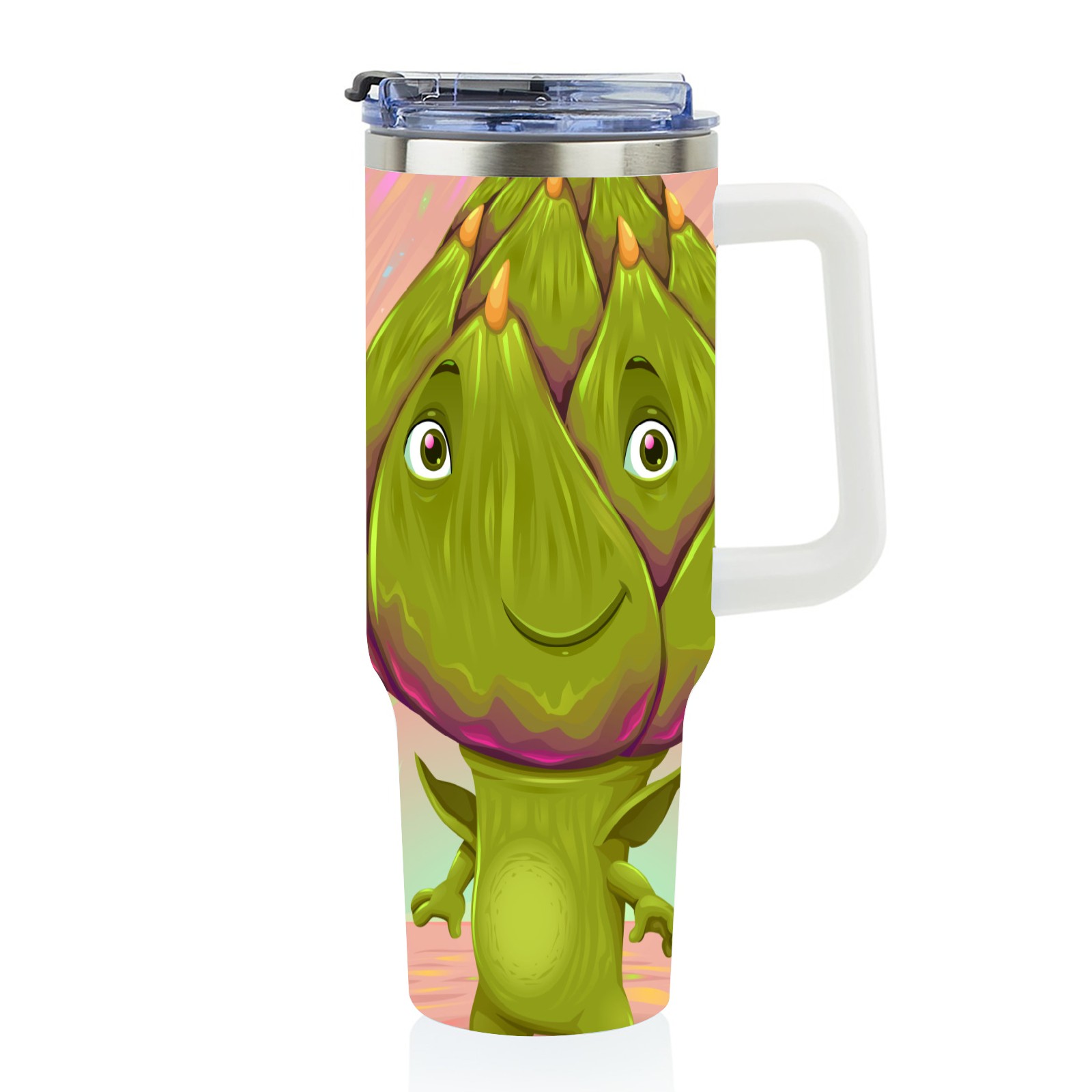 40oz Dragon Fruit Man thermos with lid and straw, leak-proof stainless steel, with handle, spill-proof bottle, convenient for travel(pink)