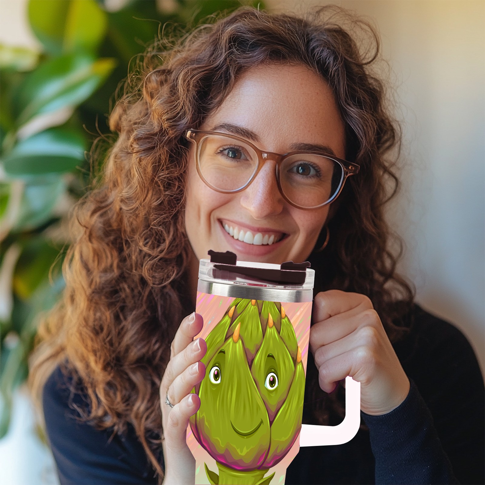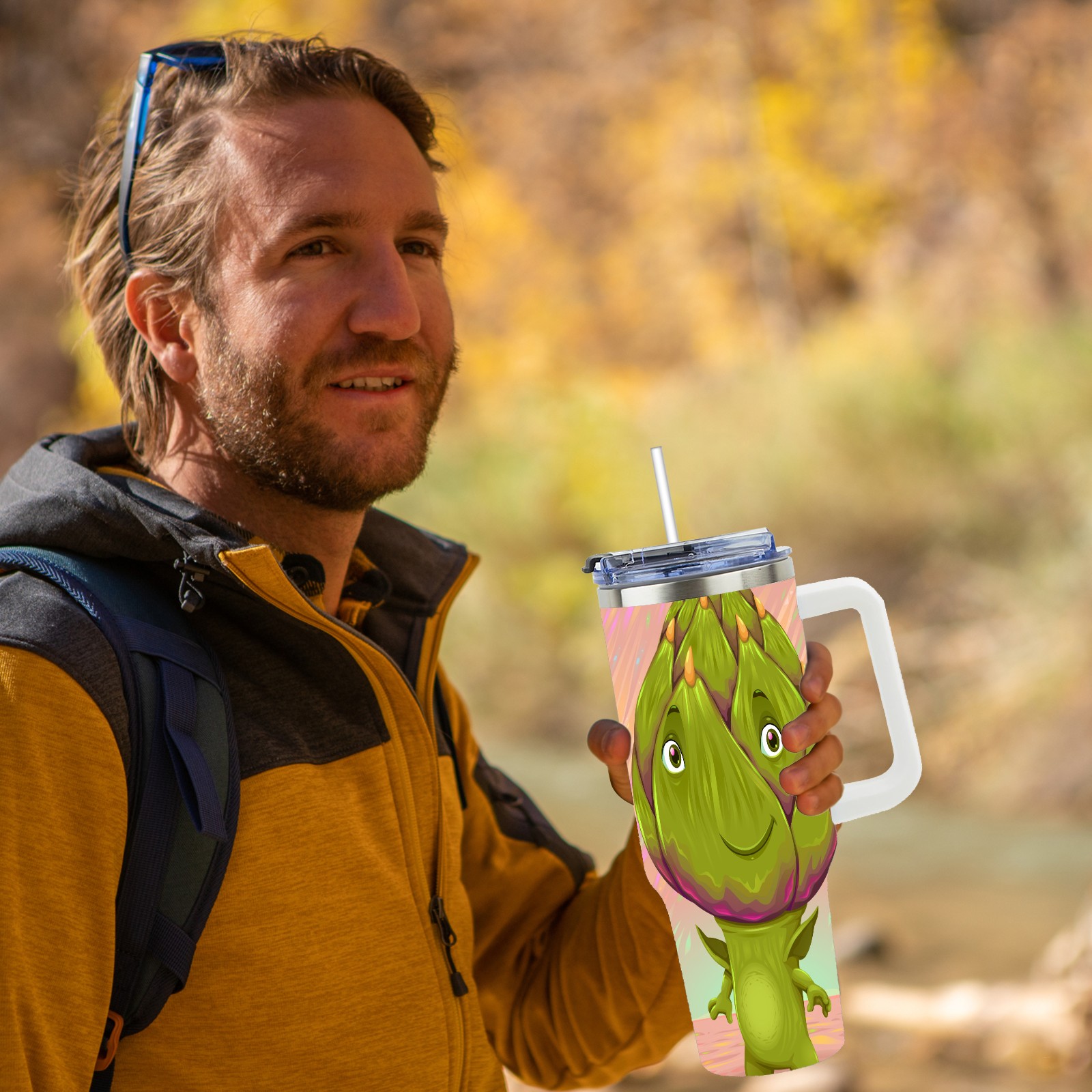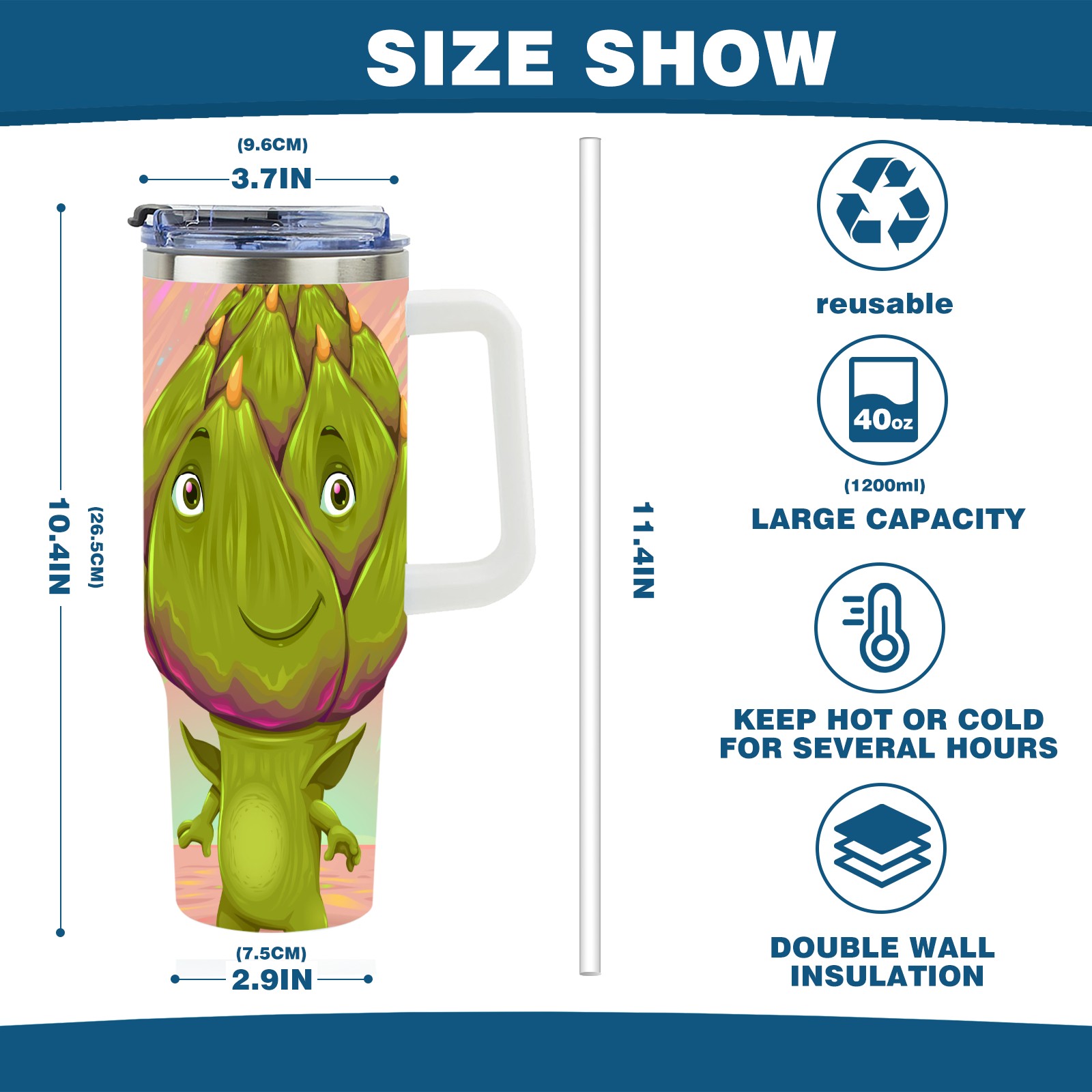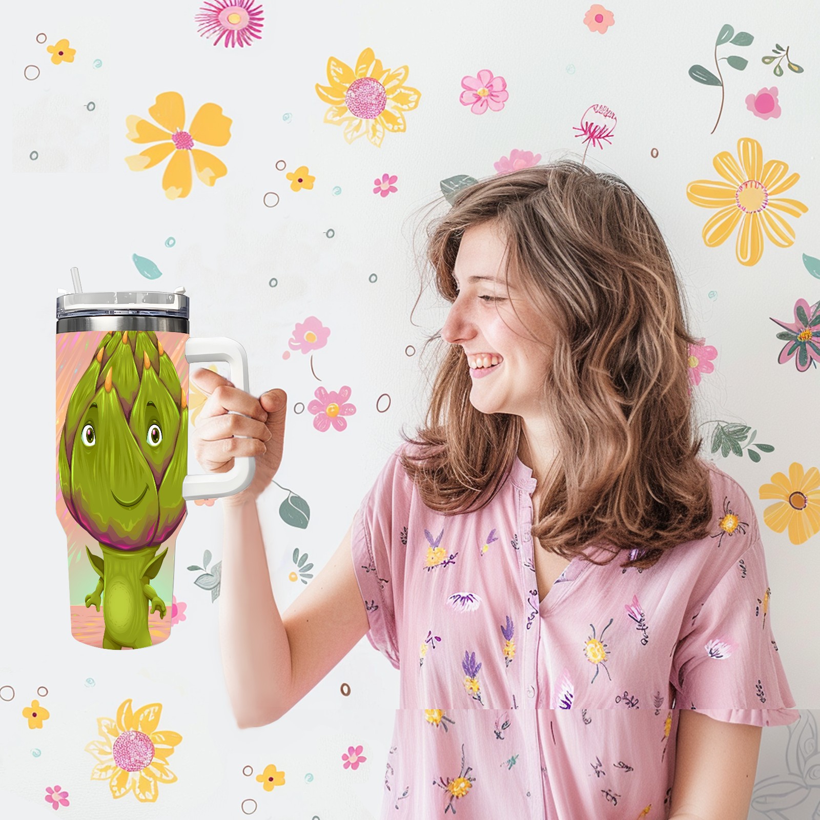 40oz Dragon Fruit Man thermos with lid and straw, leak-proof stainless steel, with handle, spill-proof bottle, convenient for travel(pink)