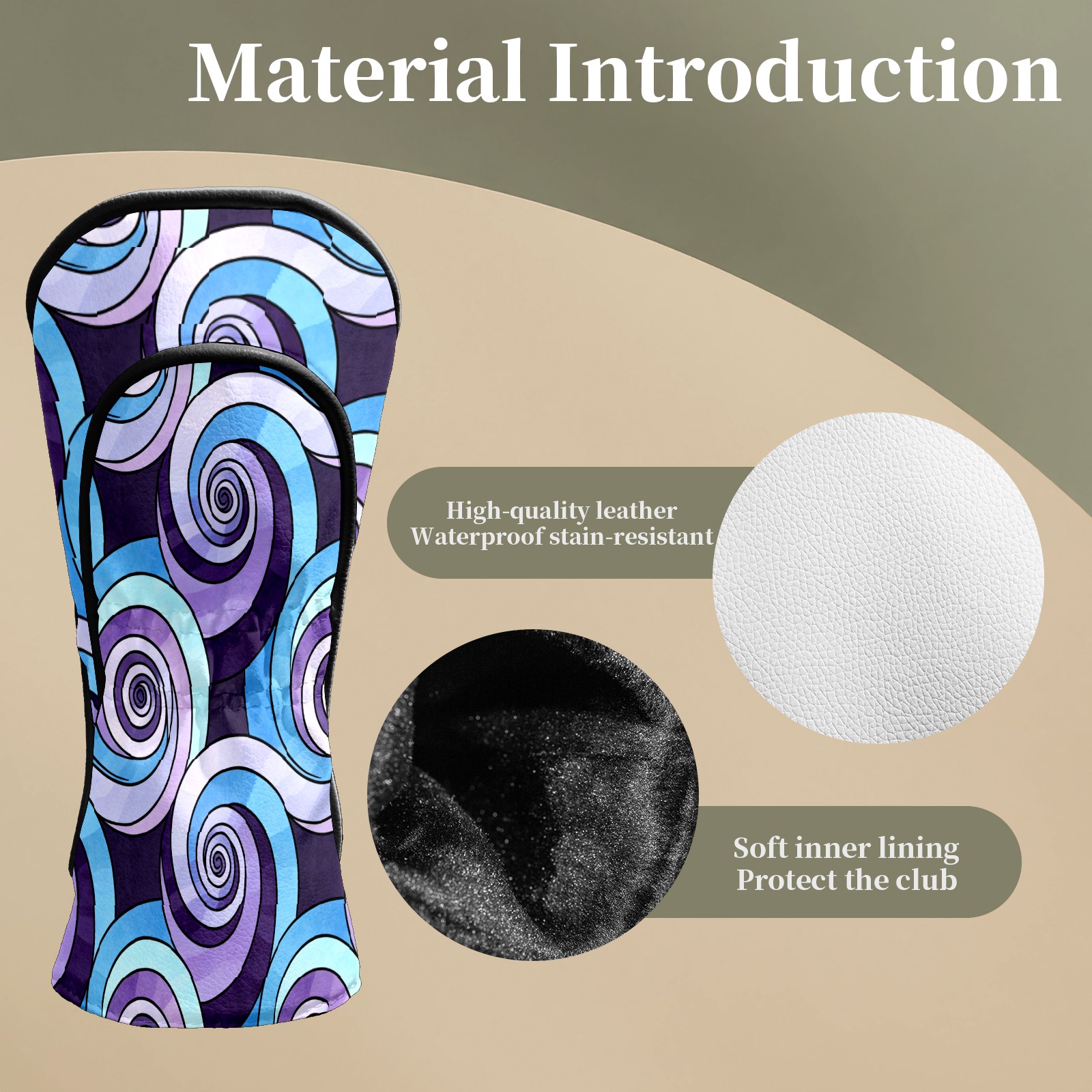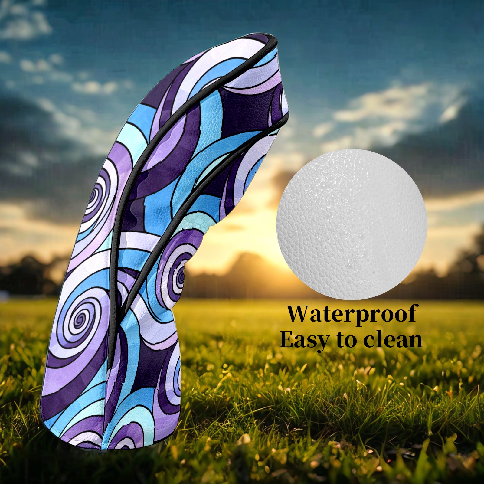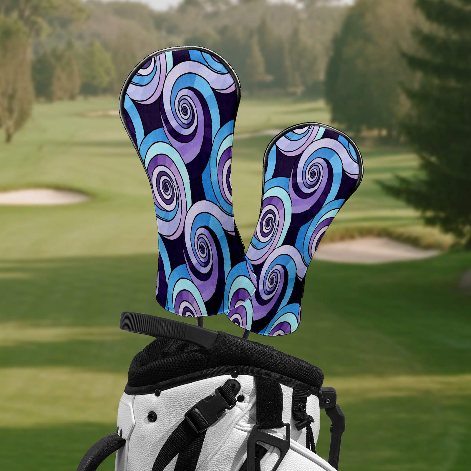 Counullo Golf Club Headcovers - Spirals Purple Premium PU Leather with Plush Lining for Driver & Fairway Woods, No-Slip Fit for All Clubs, Novelty Gift for Men & Women