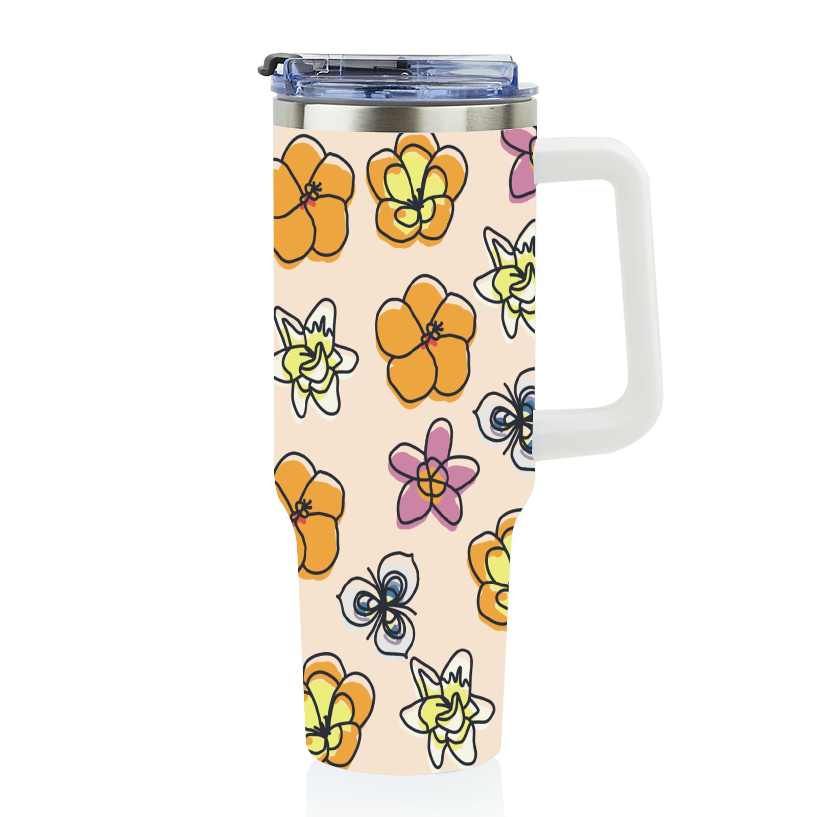 40oz Rhododendron thermos with lid and straw, leak-proof stainless steel, with handle, spill-proof bottle, convenient for travel(pink)