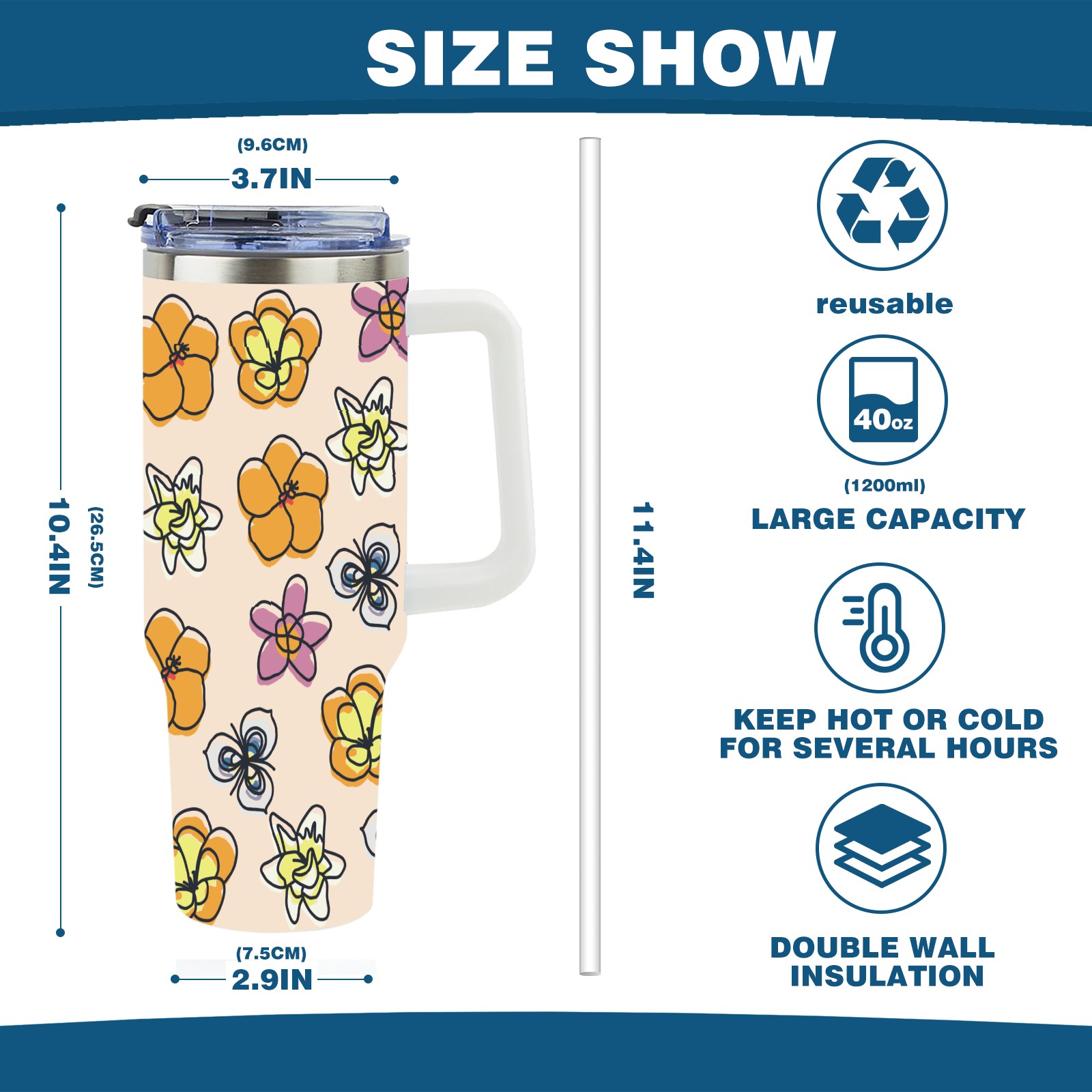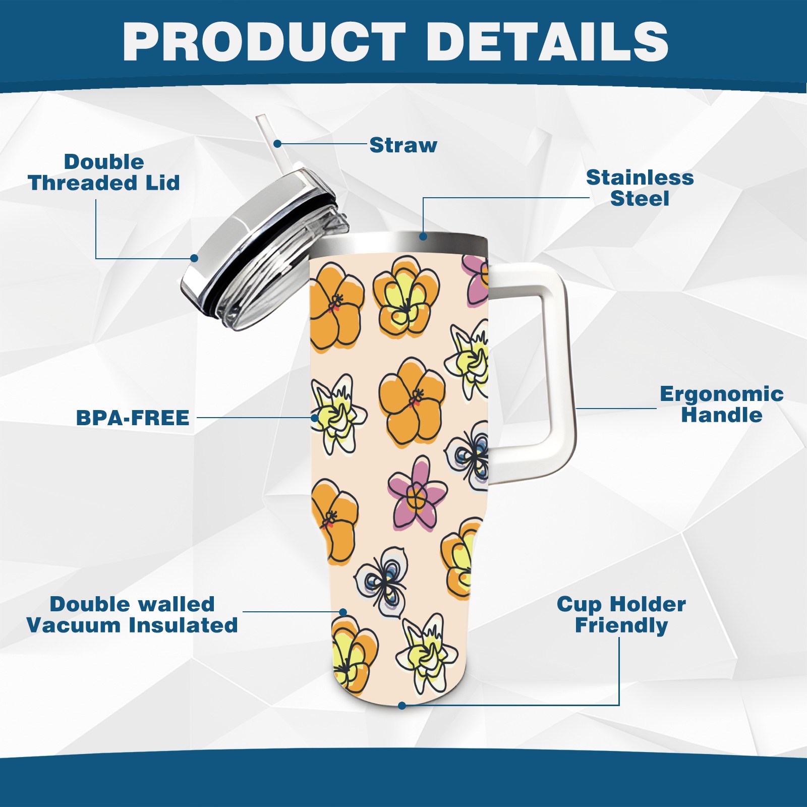 • <p>This multi-functional insulated water bottle features a simple and practical design, suitable for various daily scenarios. The ergonomic handle allows for easy one-handed drinking, and the detachable handle can be adjusted or removed as needed, making it convenient for commuting, exercising, or carrying to meetings. Made of high-quality stainless steel, it is BPA-free and features double-walled vacuum insulation technology that keeps drinks cold for 8 hours and hot for 6 hours, ensuring you can enjoy your beverage at the perfect temperature anytime, anywhere. The 40-ounce Christmas edition comes with a sliding lid, silicone straw, and a non-slip design. Accessories are dishwasher safe, and the narrow bottom and wide mouth design perfectly fits car cup holders. The exclusive flip-top straw lid is environmentally friendly and durable, with a one-touch leak-proof closure and two drinking modes: sip and gulp. A dust cover provides effective protection. This bottle is suitable for travel, office work, sports, camping, and other occasions, making it a thoughtful gift for friends and family.</p>