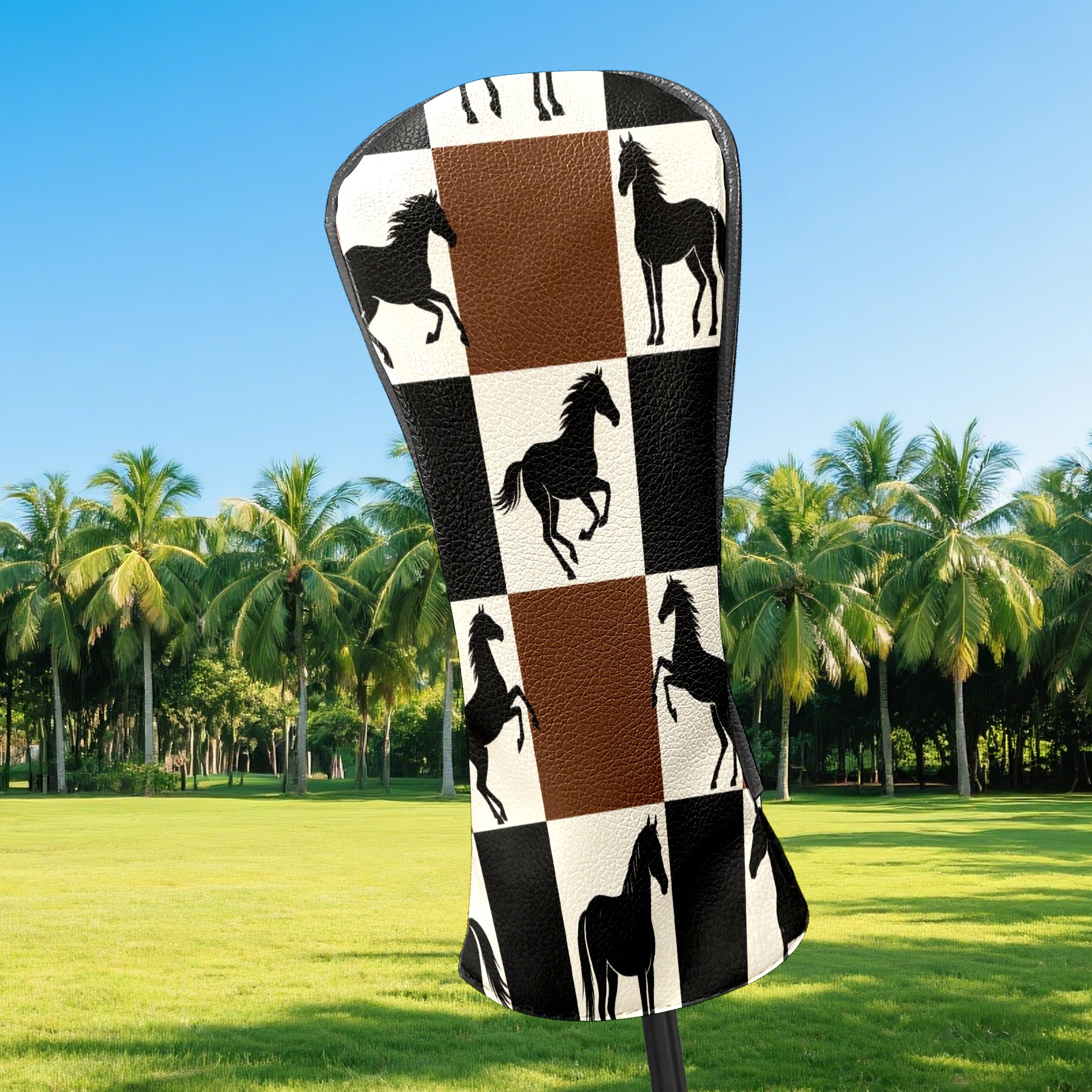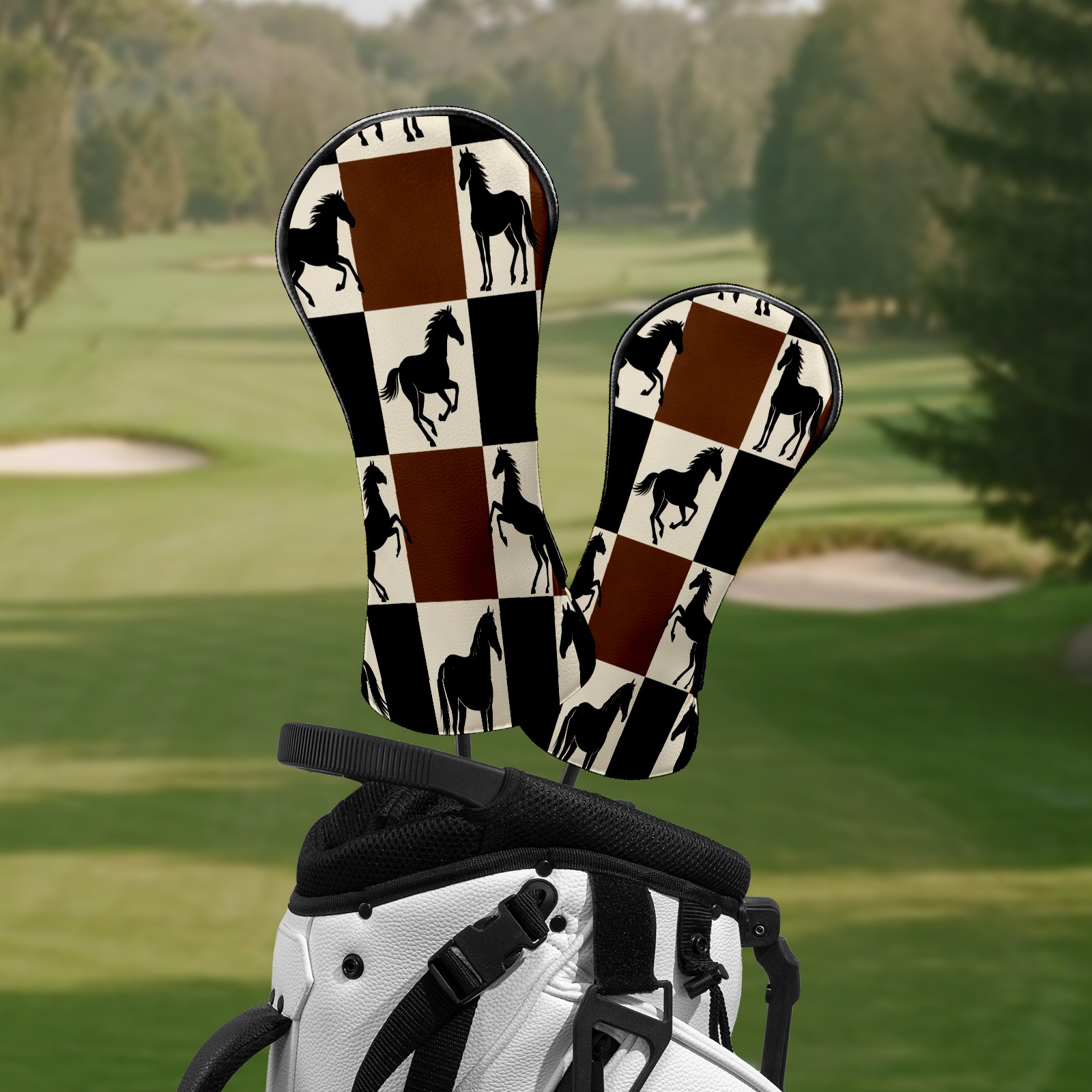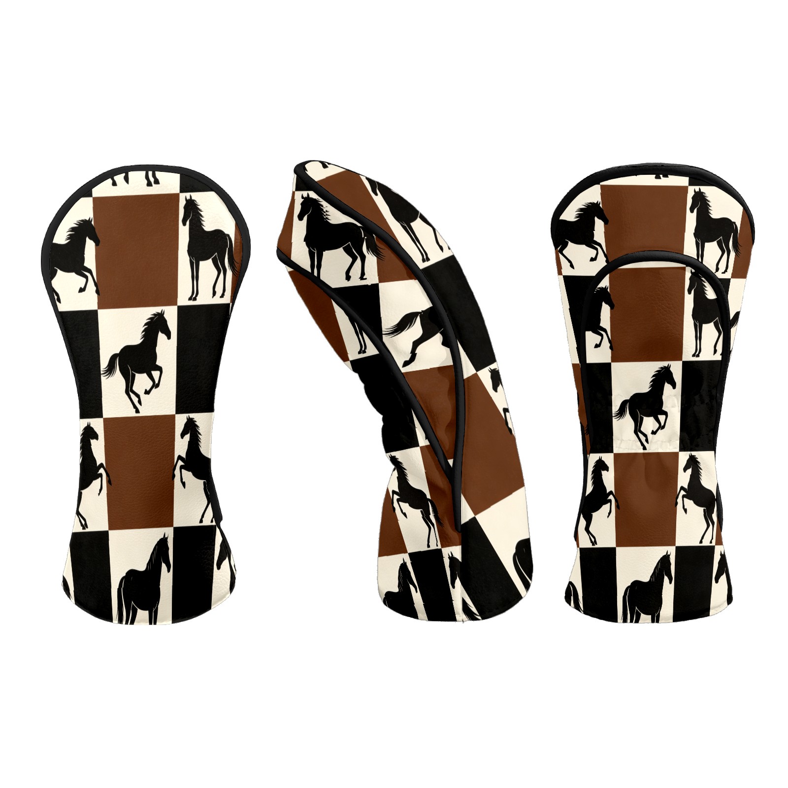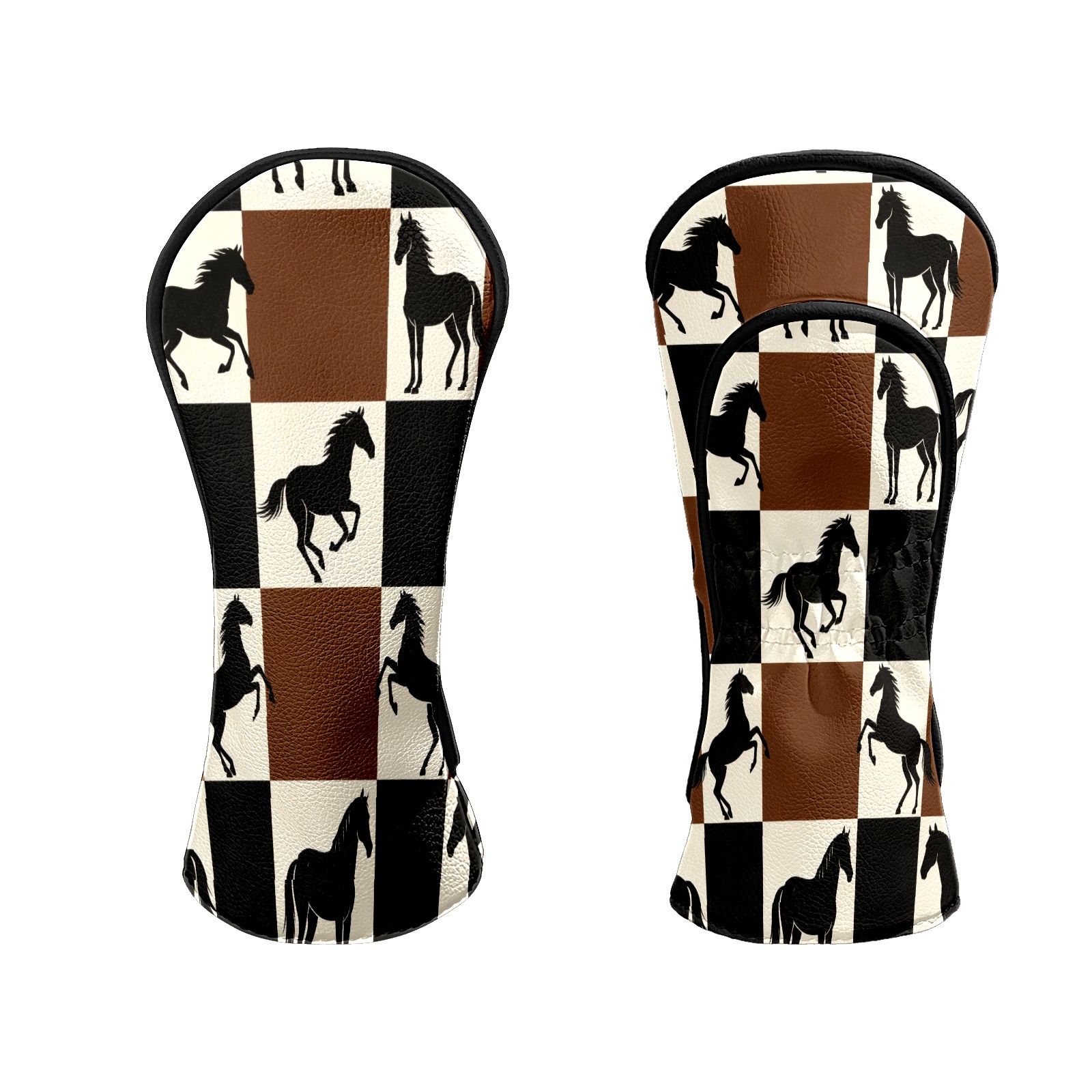 Counullo Golf Club Headcovers - Horses Brown-Check Premium PU Leather with Plush Lining for Driver & Fairway Woods, No-Slip Fit for All Clubs, Novelty Gift for Men & Women