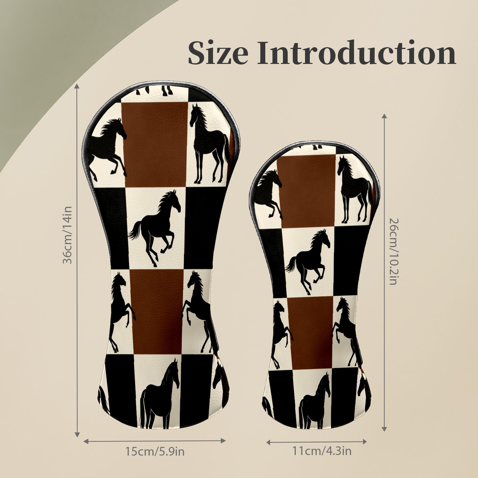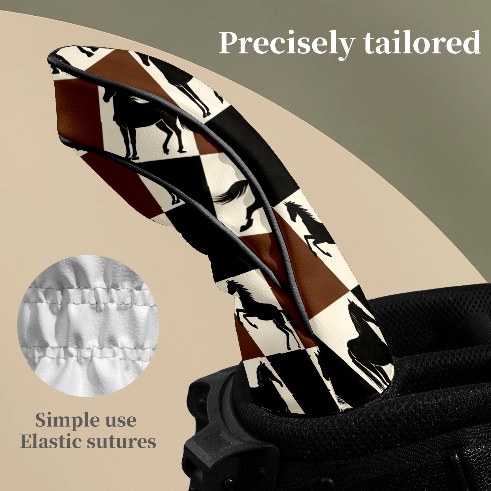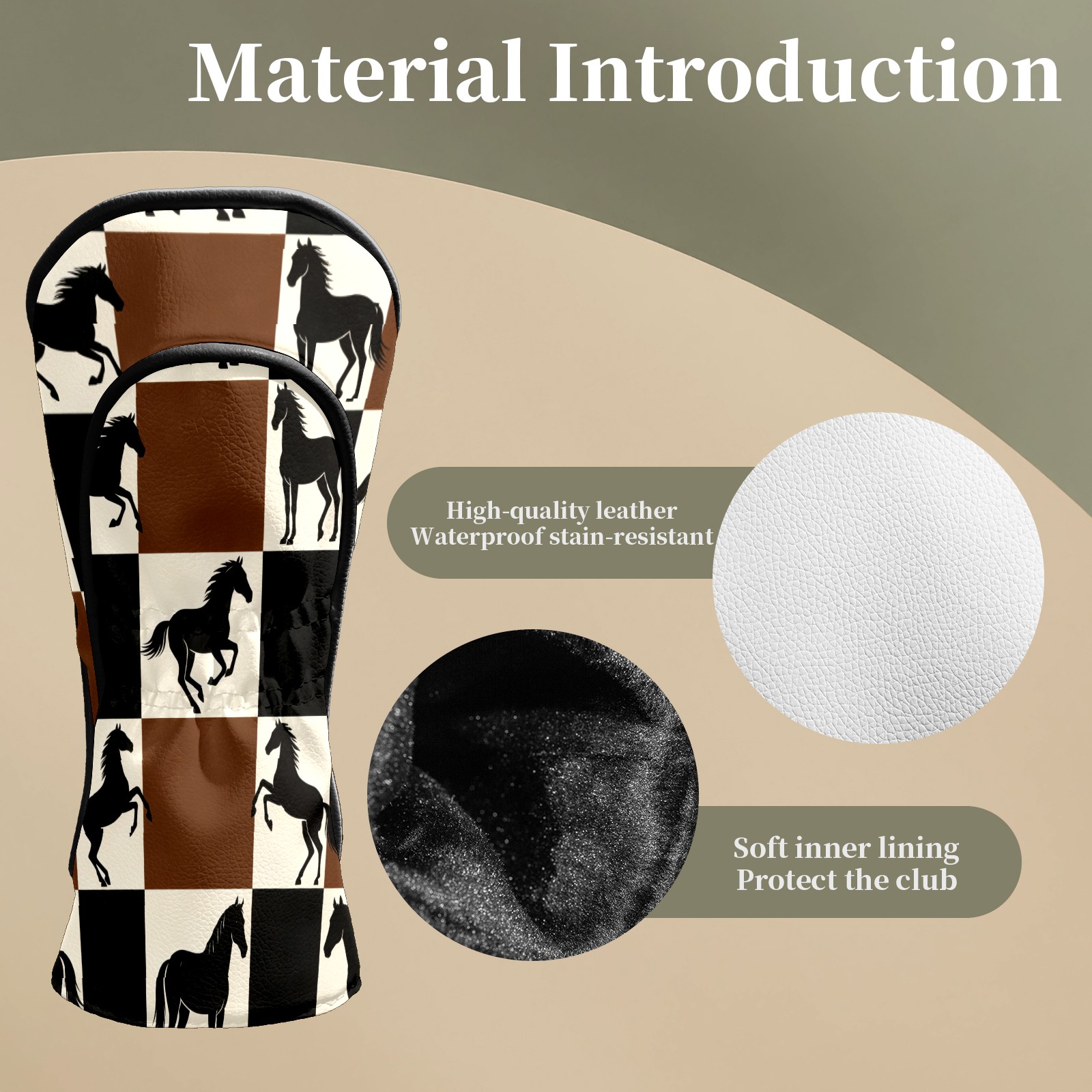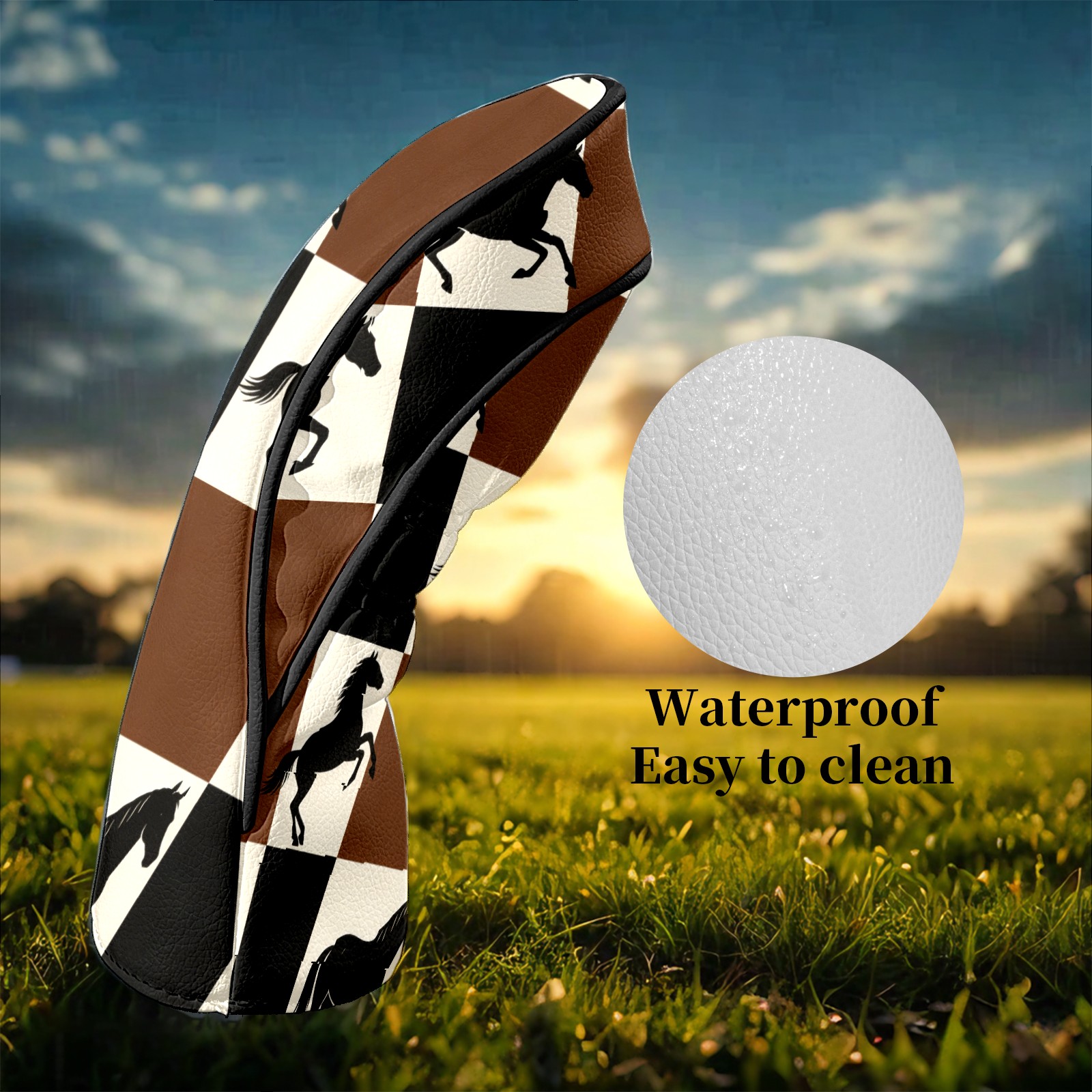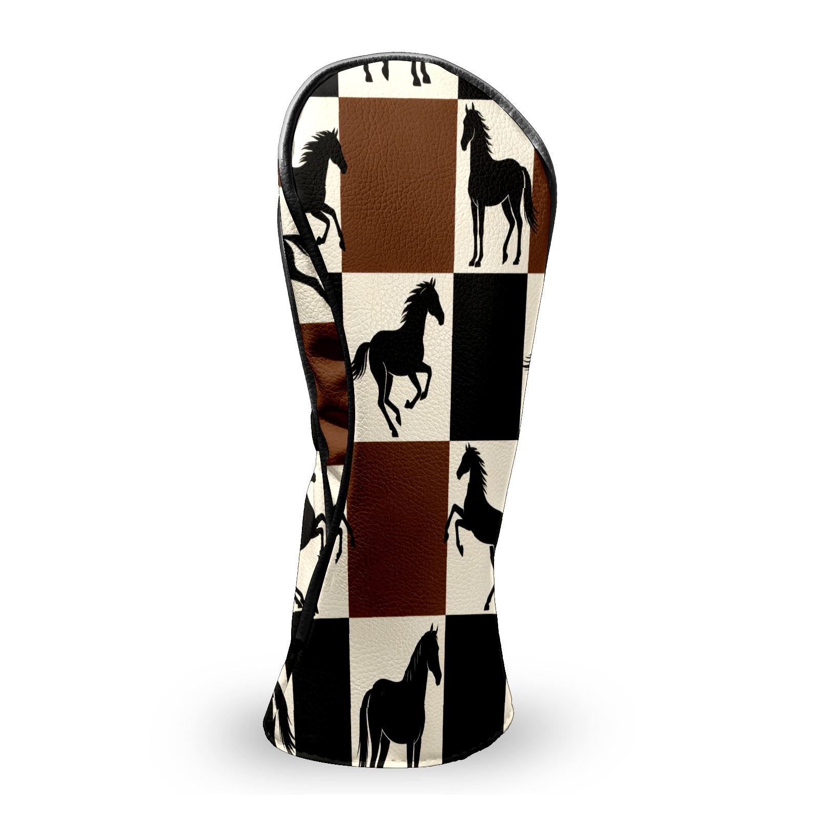 Counullo Golf Club Headcovers - Horses Brown-Check Premium PU Leather with Plush Lining for Driver & Fairway Woods, No-Slip Fit for All Clubs, Novelty Gift for Men & Women