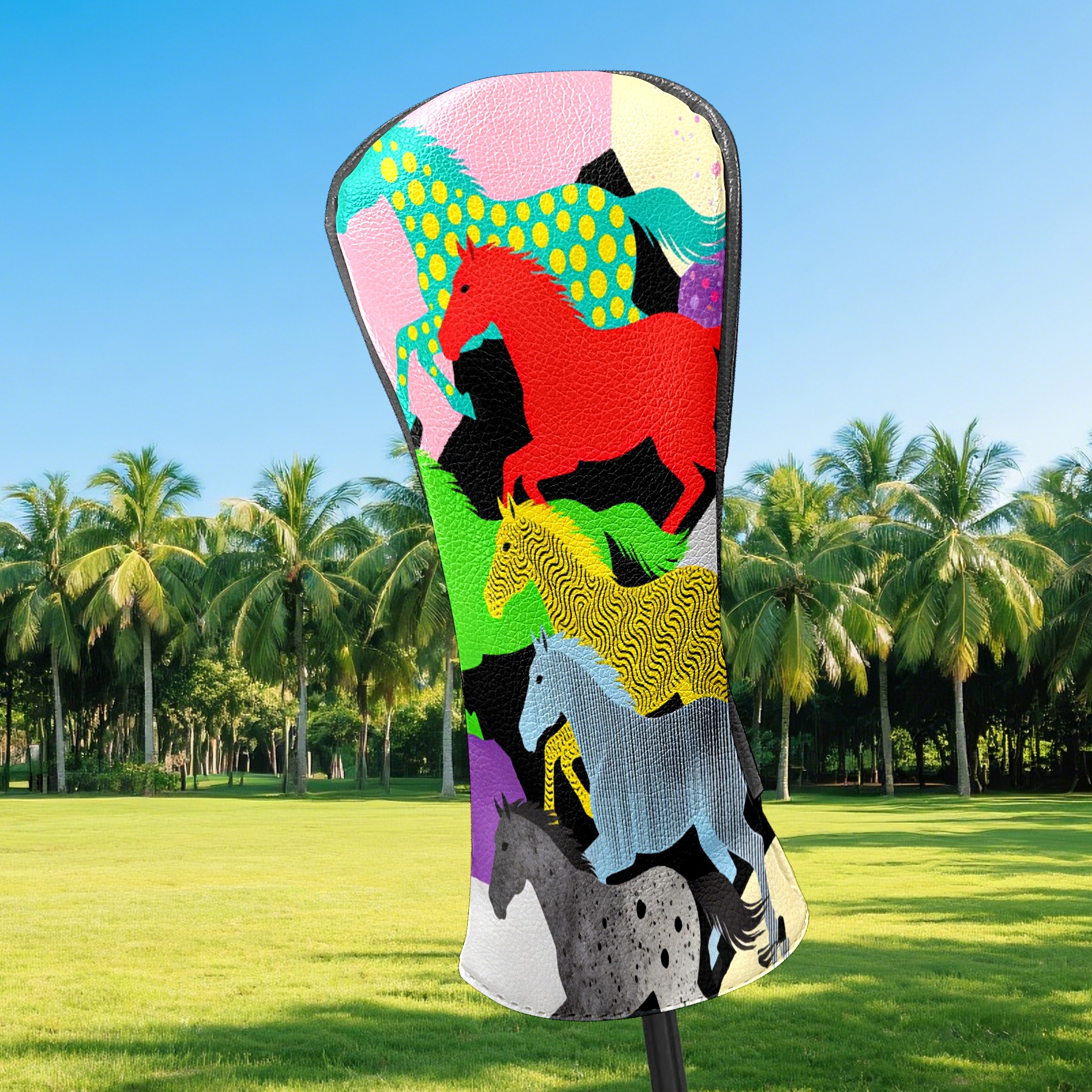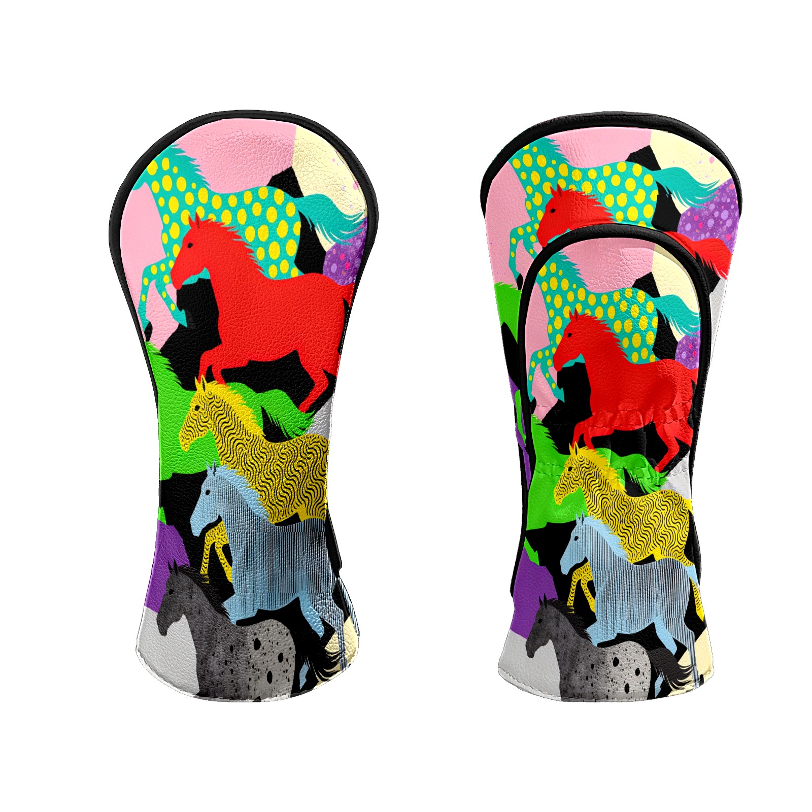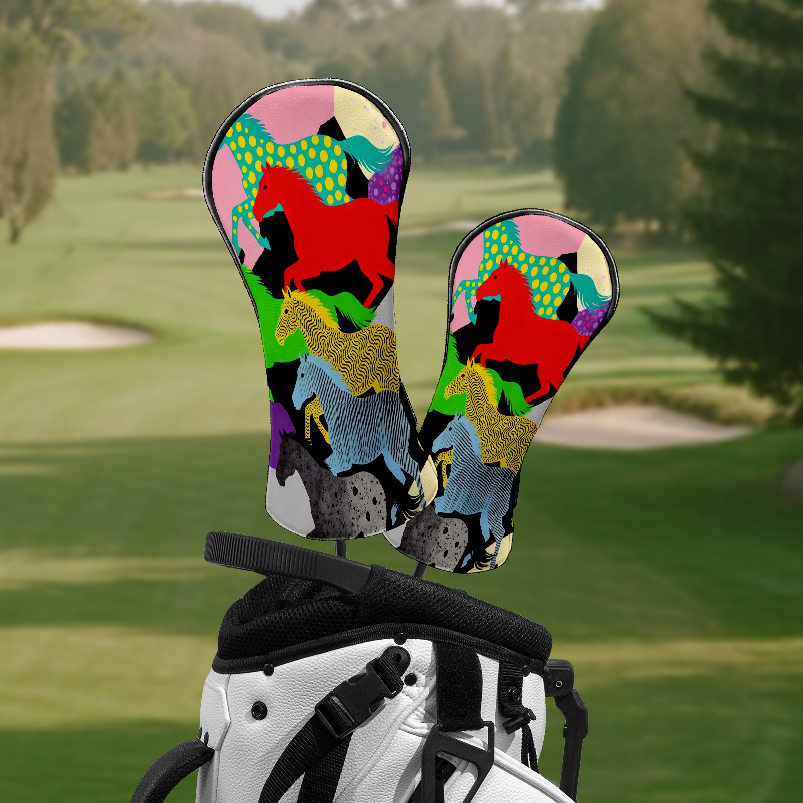 Counullo Golf Club Headcovers - Dreamy Horses Multi Premium PU Leather with Plush Lining for Driver & Fairway Woods, No-Slip Fit for All Clubs, Novelty Gift for Men & Women