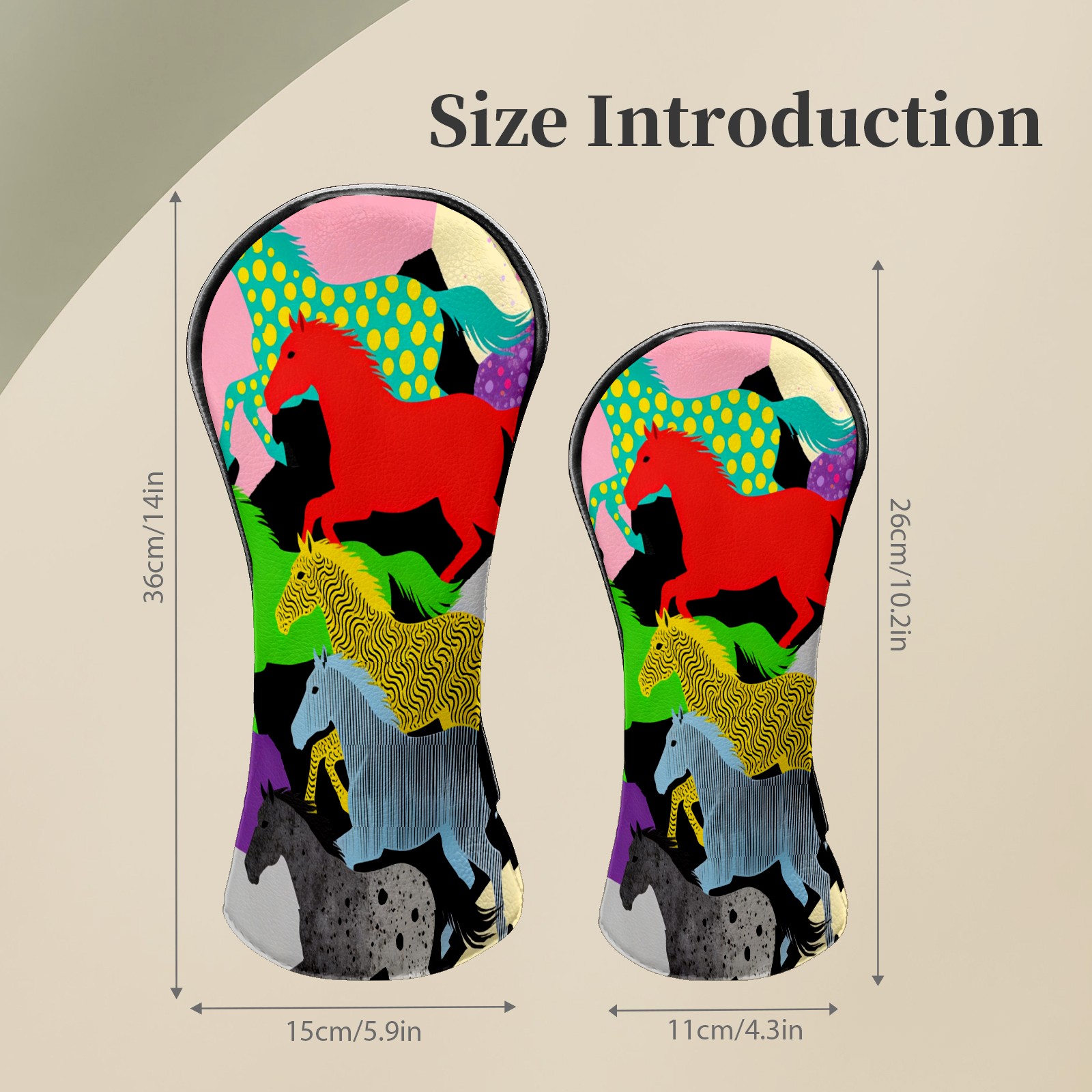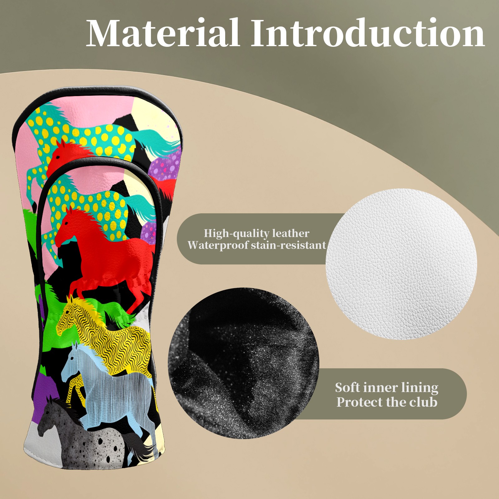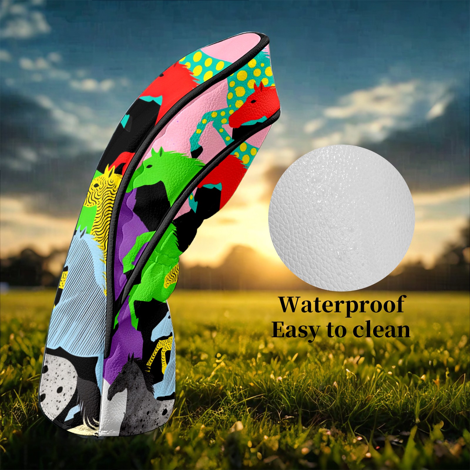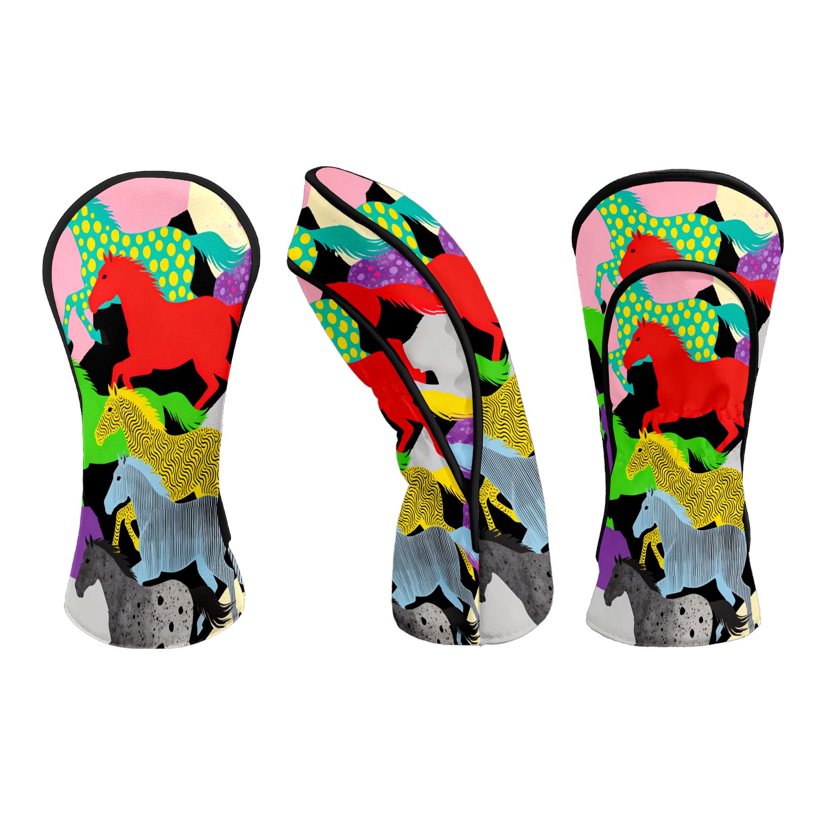 Counullo Golf Club Headcovers - Dreamy Horses Multi Premium PU Leather with Plush Lining for Driver & Fairway Woods, No-Slip Fit for All Clubs, Novelty Gift for Men & Women