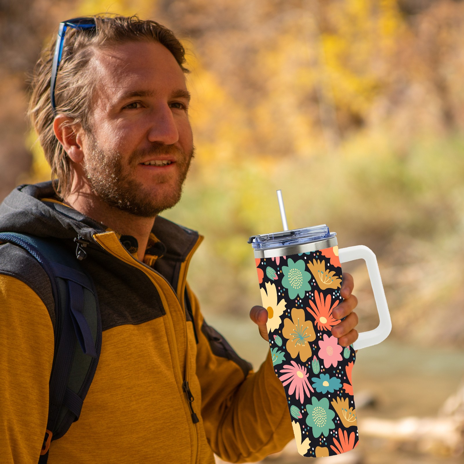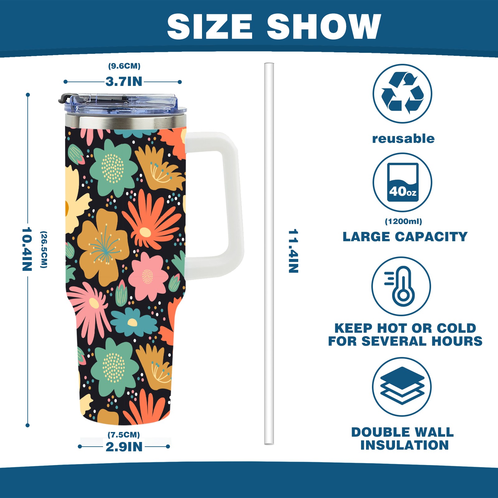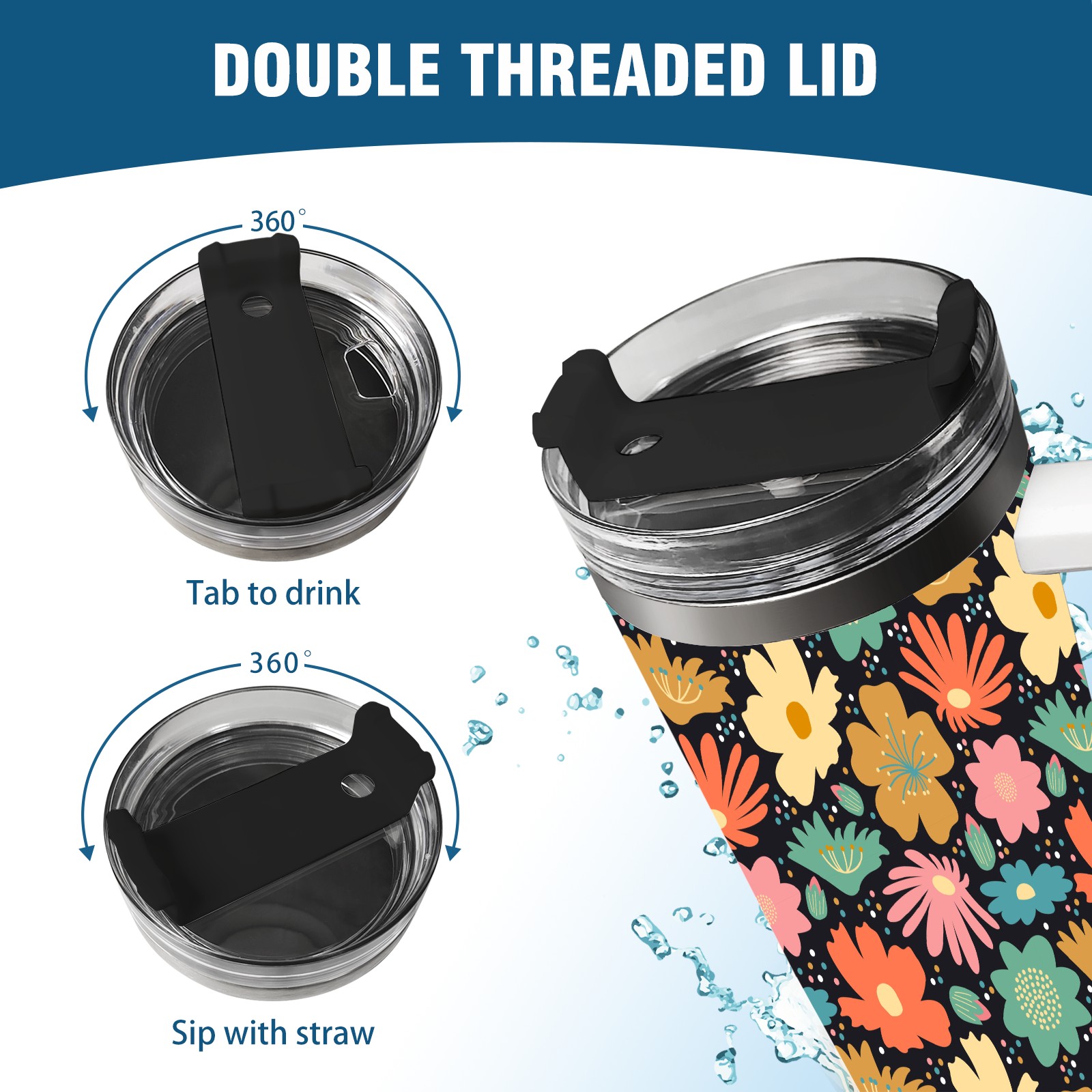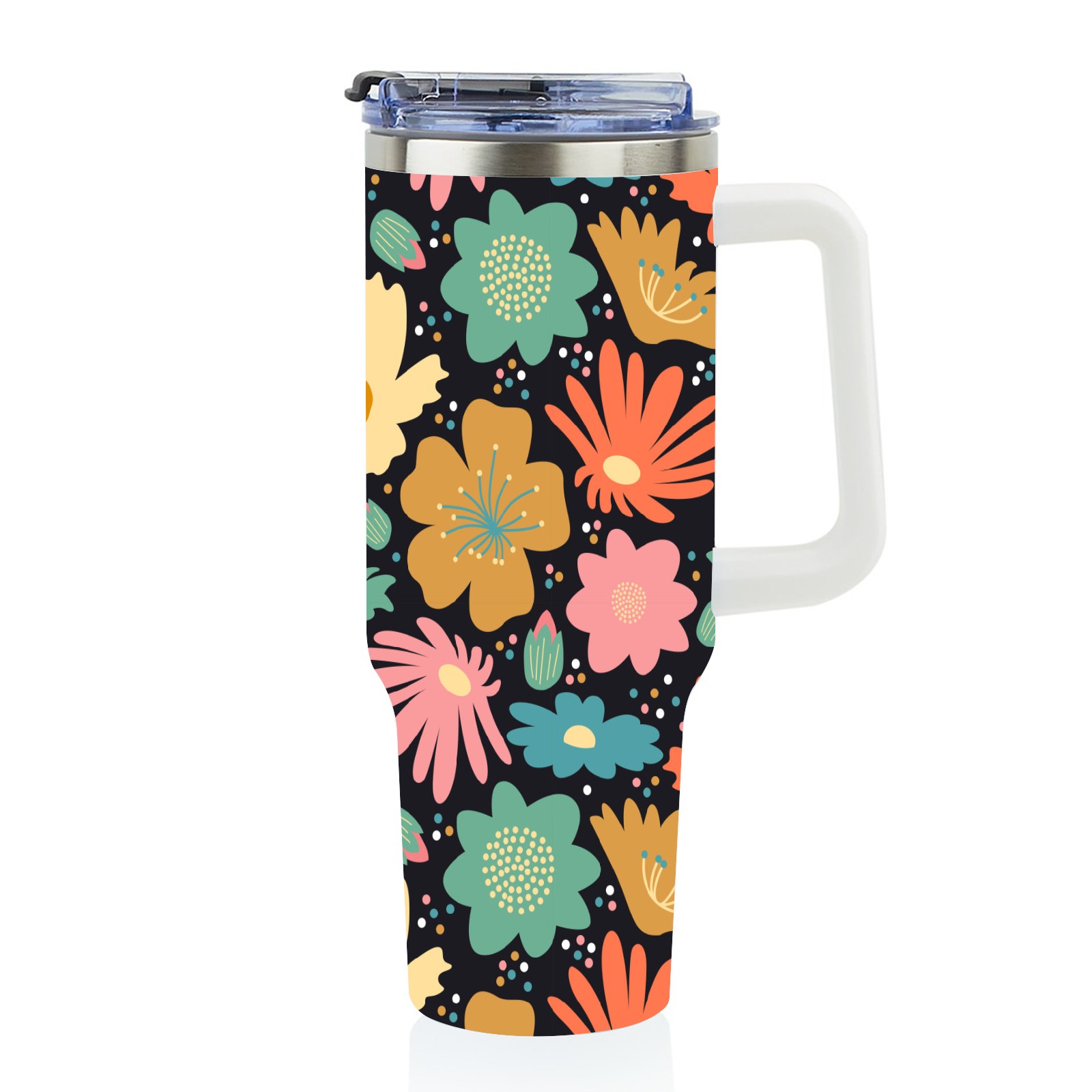 40oz Flower Blossom thermos with lid and straw, leak-proof stainless steel, with handle, spill-proof bottle, convenient for travel(pink)