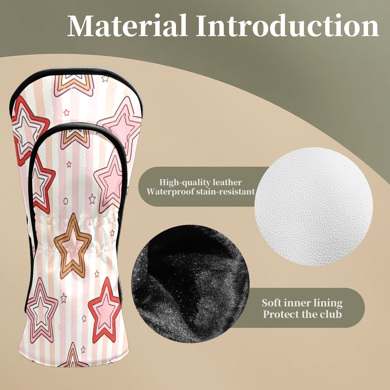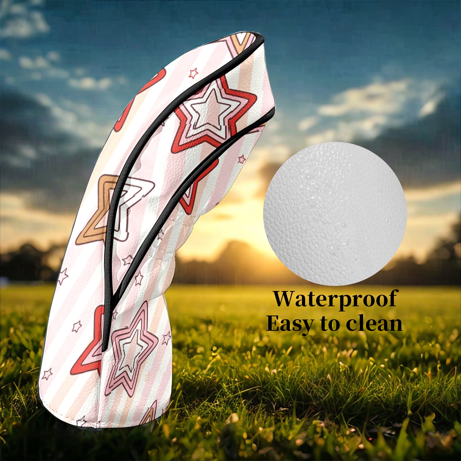 Counullo Golf Club Headcovers - Romantic Stars Pink Premium PU Leather with Plush Lining for Driver & Fairway Woods, No-Slip Fit for All Clubs, Novelty Gift for Men & Women