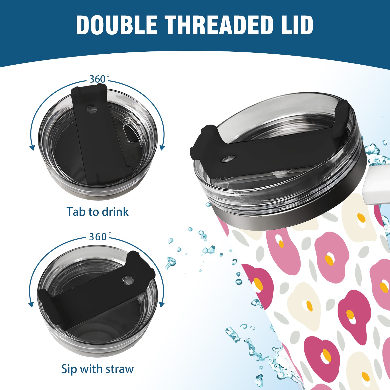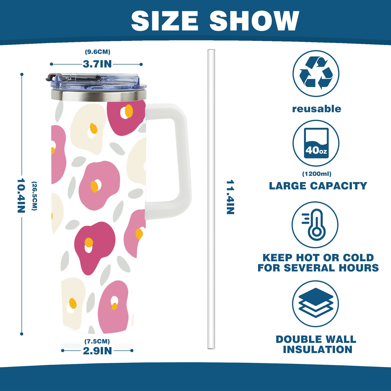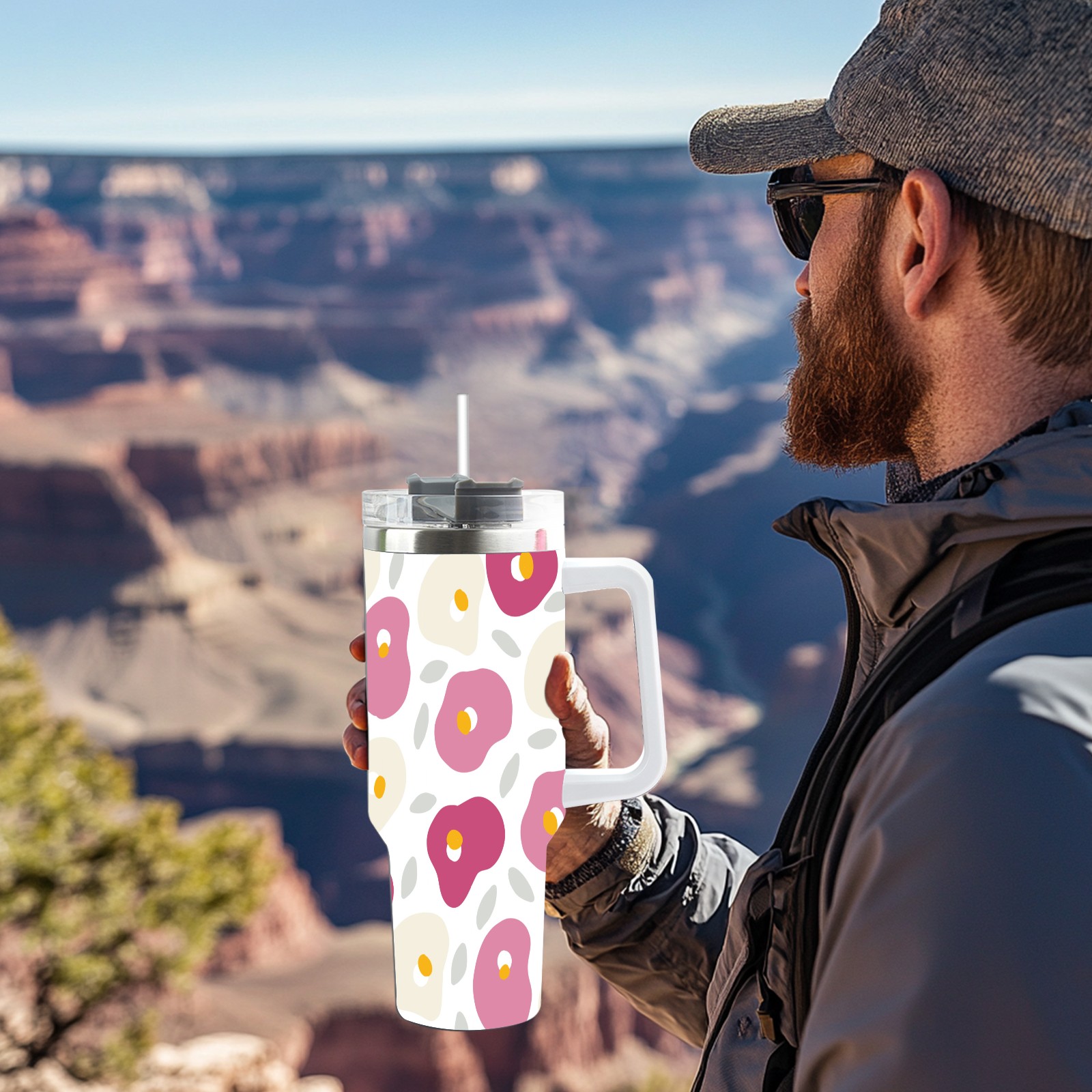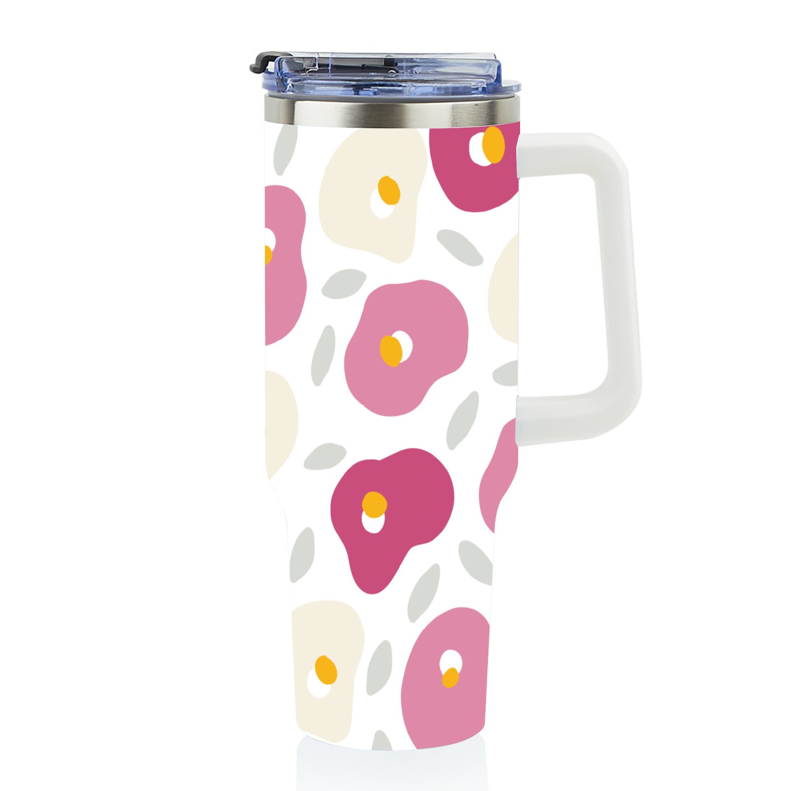 40oz Camellia thermos with lid and straw, leak-proof stainless steel, with handle, spill-proof bottle, convenient for travel(pink)