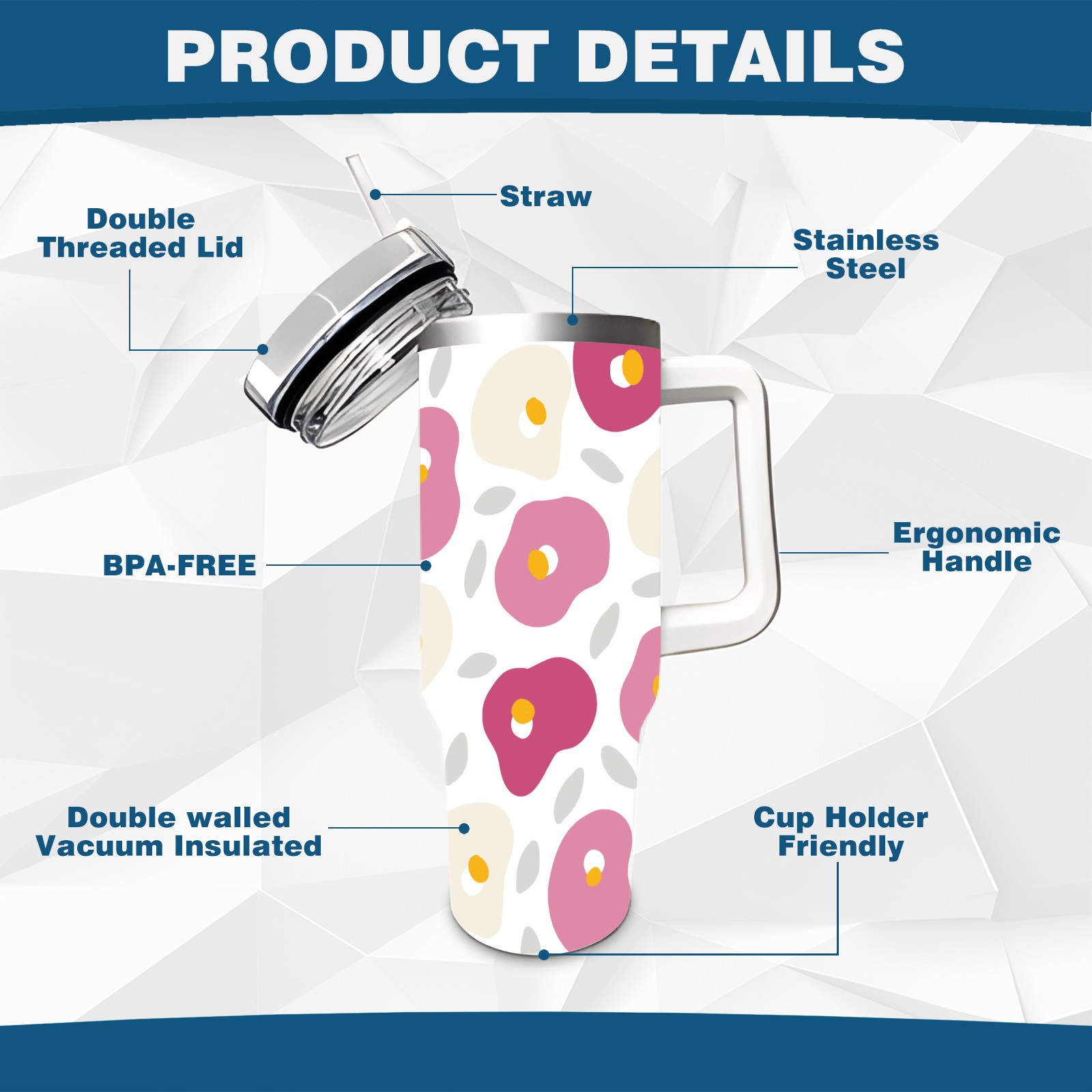 • <p>This multi-functional insulated water bottle features a simple and practical design, suitable for various daily scenarios. The ergonomic handle allows for easy one-handed drinking, and the detachable handle can be adjusted or removed as needed, making it convenient for commuting, exercising, or carrying to meetings. Made of high-quality stainless steel, it is BPA-free and features double-walled vacuum insulation technology that keeps drinks cold for 8 hours and hot for 6 hours, ensuring you can enjoy your beverage at the perfect temperature anytime, anywhere. The 40-ounce Christmas edition comes with a sliding lid, silicone straw, and a non-slip design. Accessories are dishwasher safe, and the narrow bottom and wide mouth design perfectly fits car cup holders. The exclusive flip-top straw lid is environmentally friendly and durable, with a one-touch leak-proof closure and two drinking modes: sip and gulp. A dust cover provides effective protection. This bottle is suitable for travel, office work, sports, camping, and other occasions, making it a thoughtful gift for friends and family.</p>