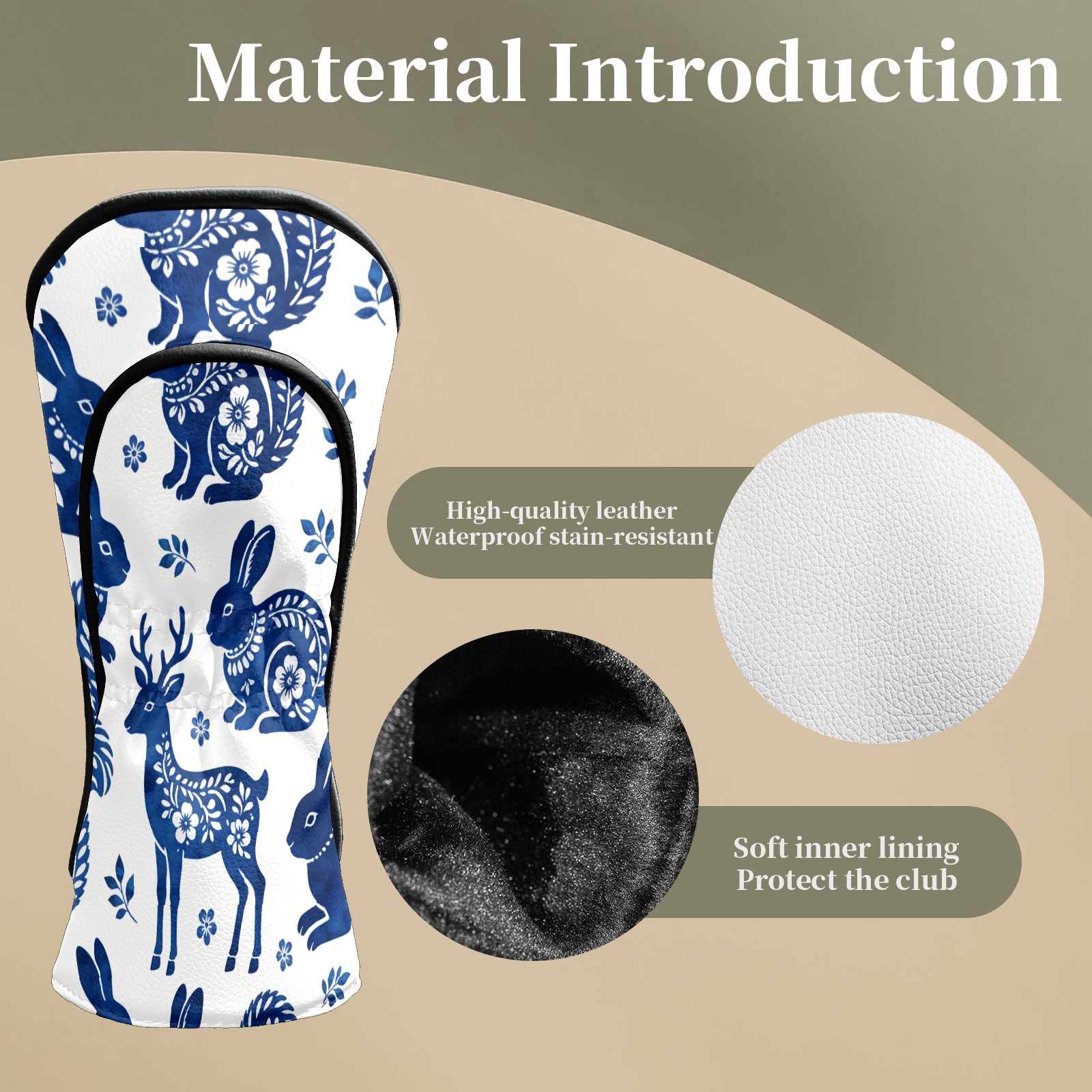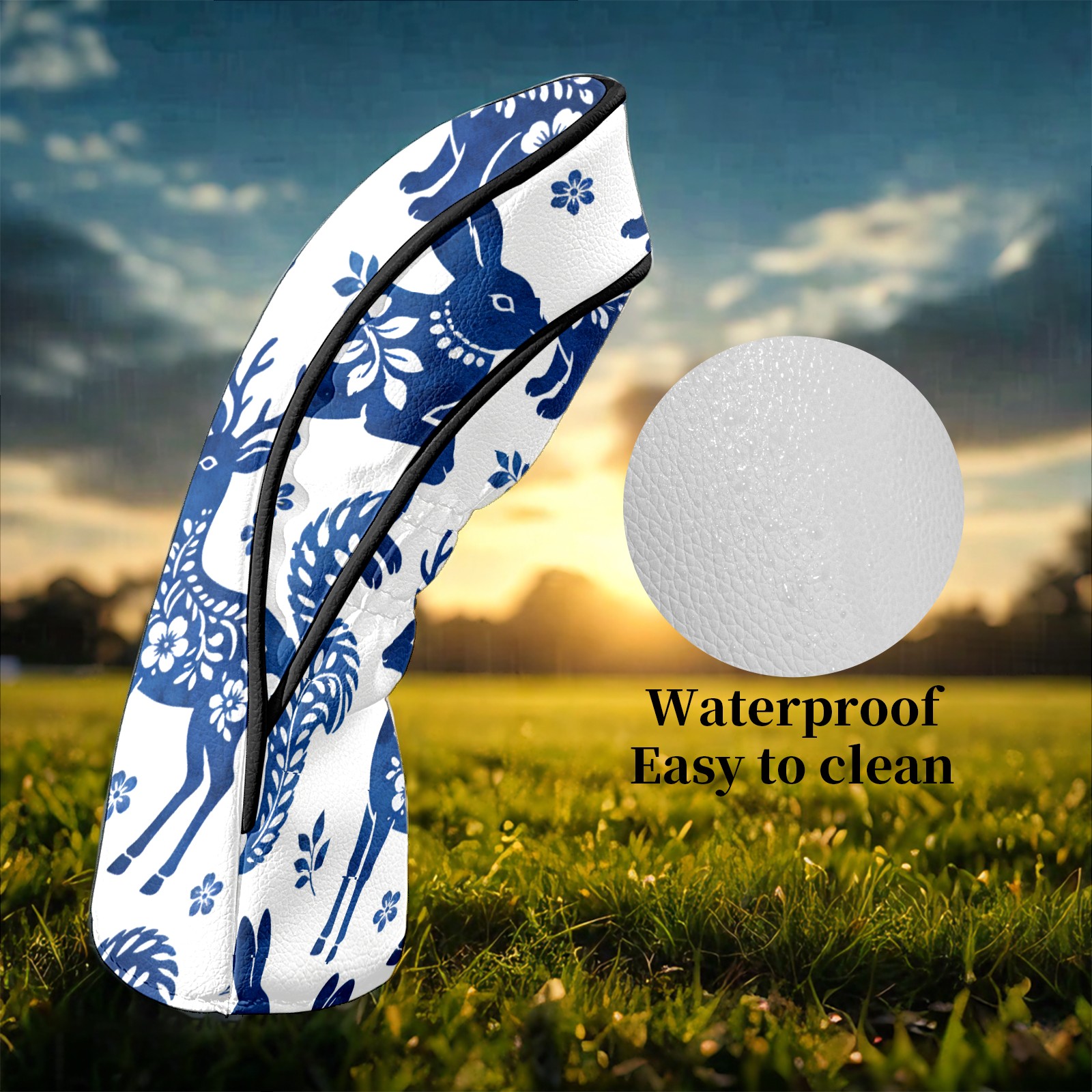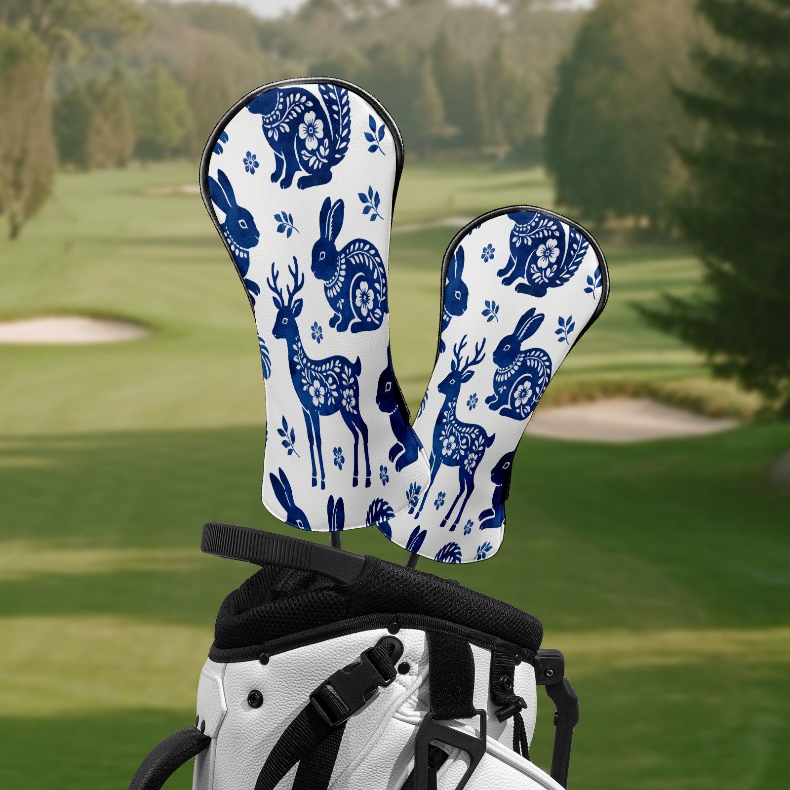 Counullo Golf Club Headcovers - Elegant Deer Blue Premium PU Leather with Plush Lining for Driver & Fairway Woods, No-Slip Fit for All Clubs, Novelty Gift for Men & Women