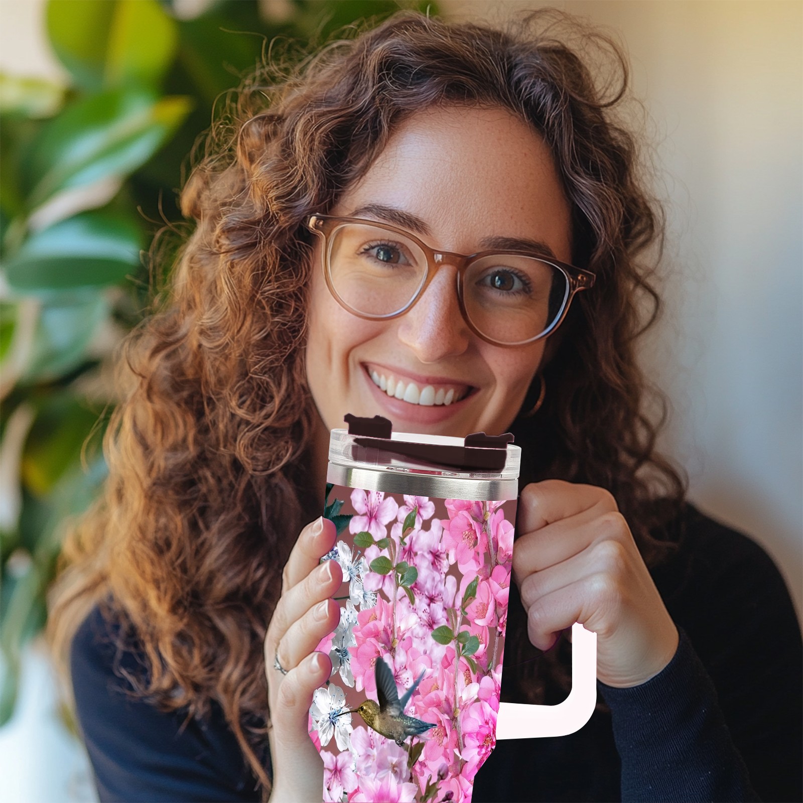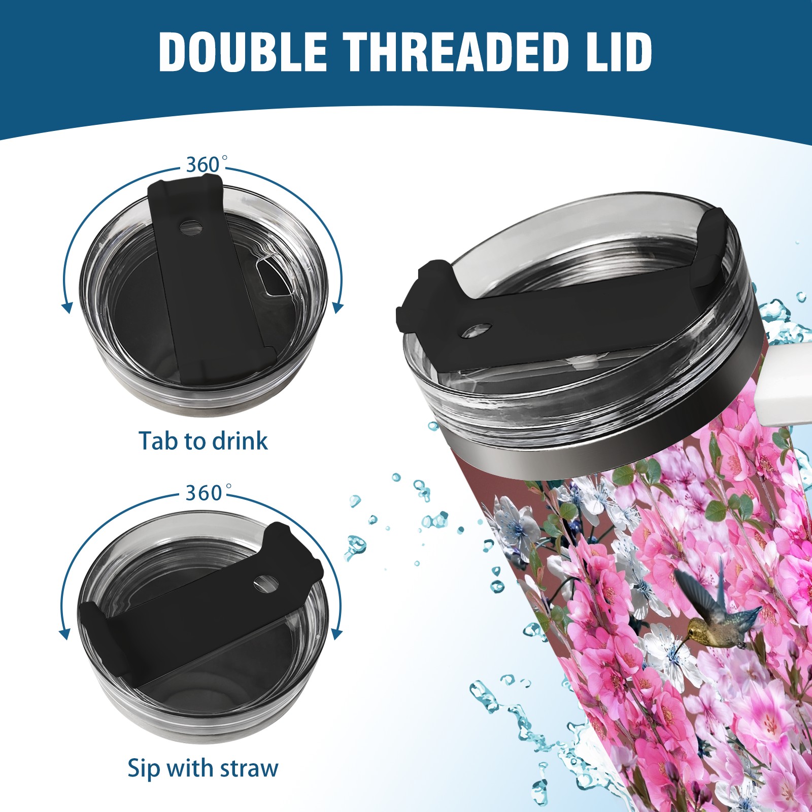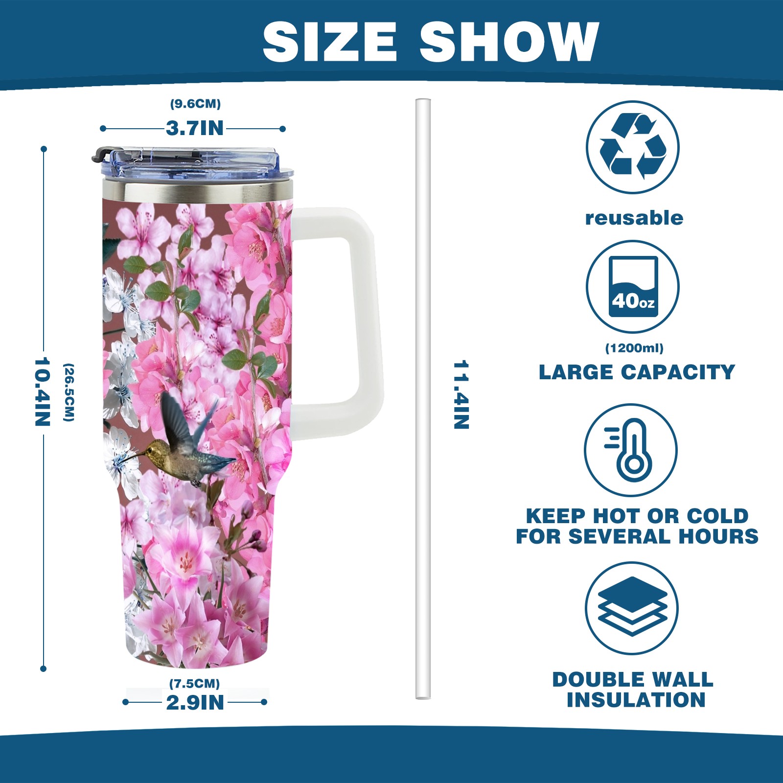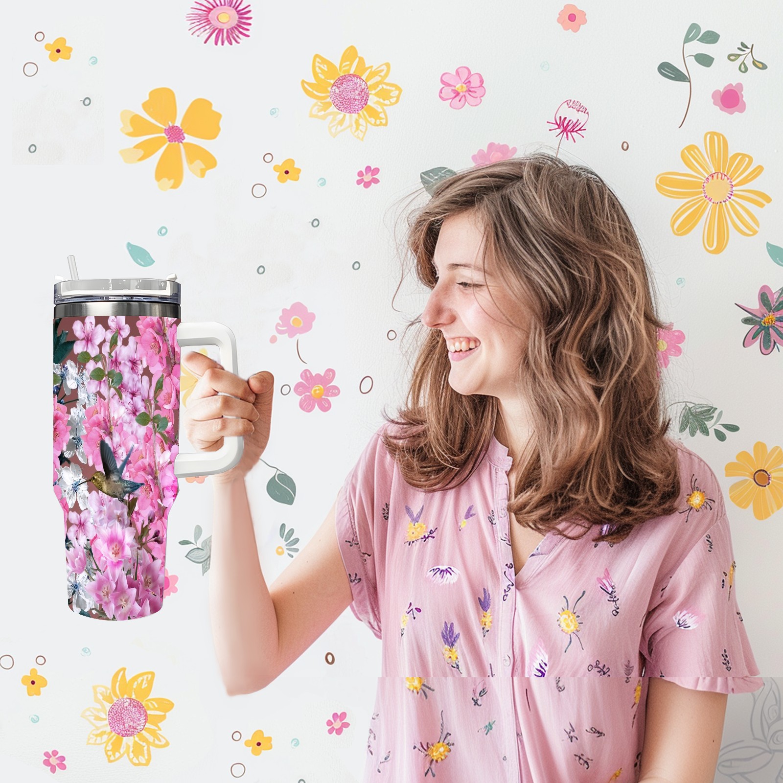 40oz Pink Flowers thermos with lid and straw, leak-proof stainless steel, with handle, spill-proof bottle, convenient for travel(pink)