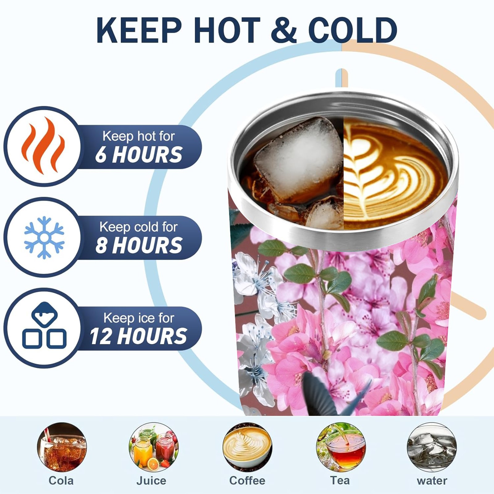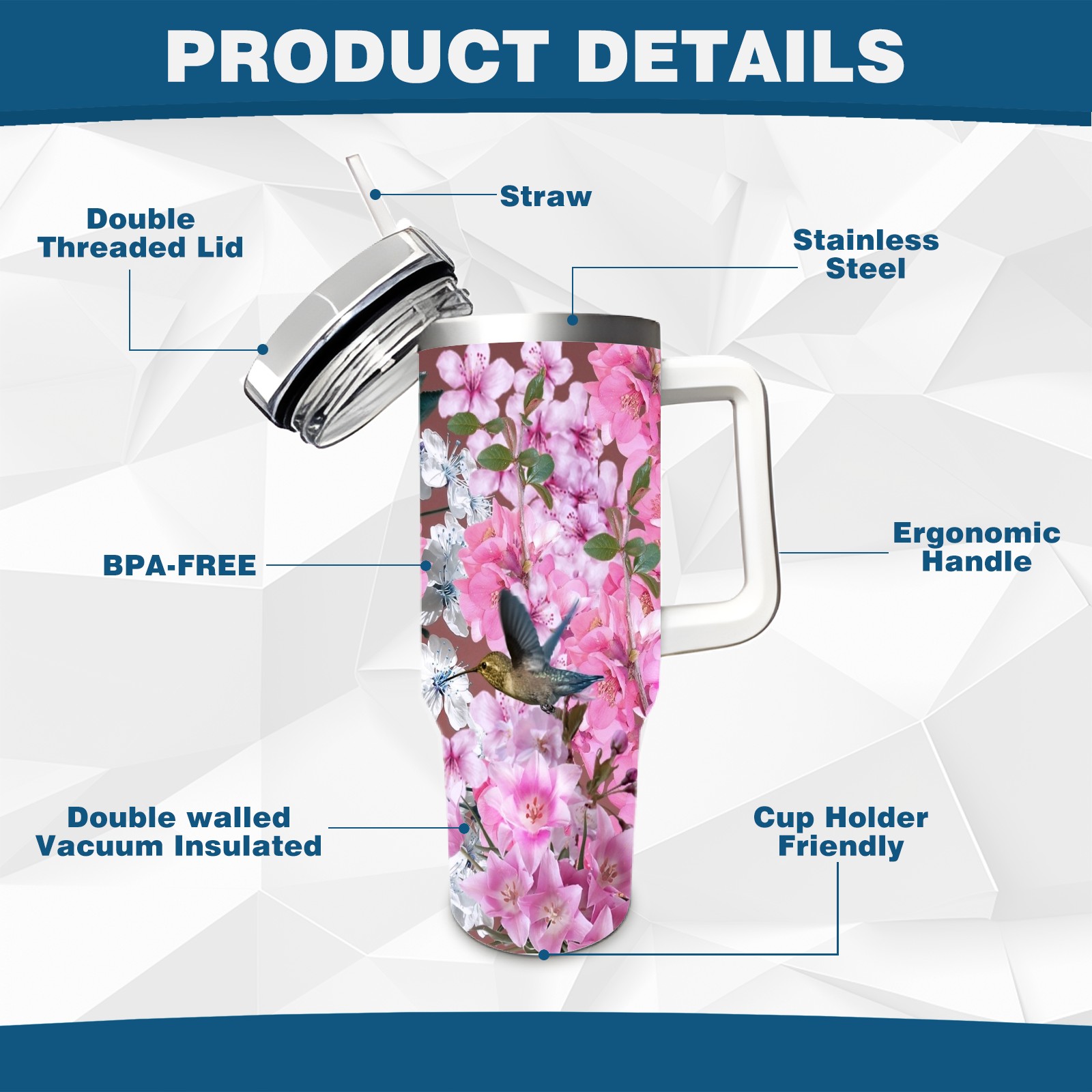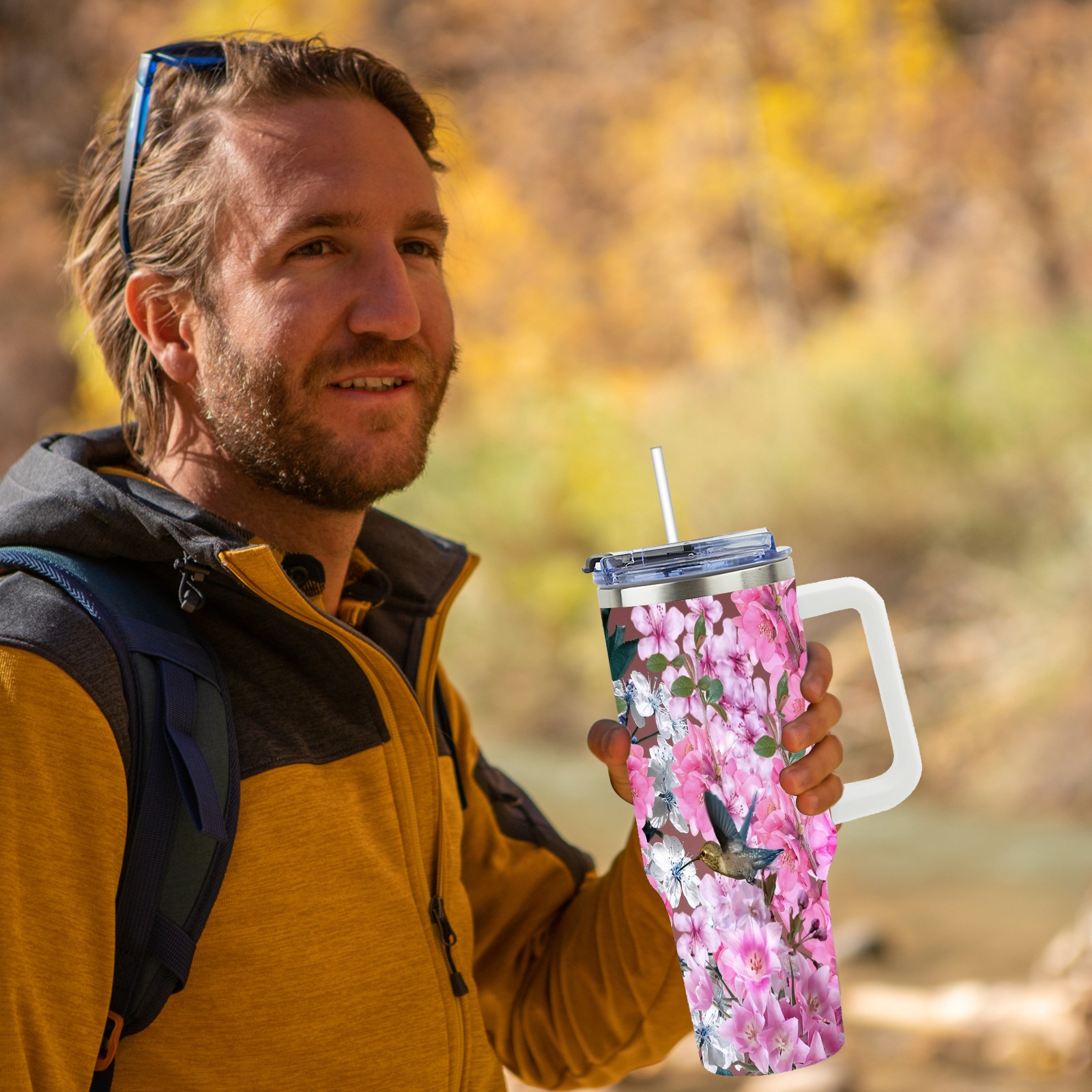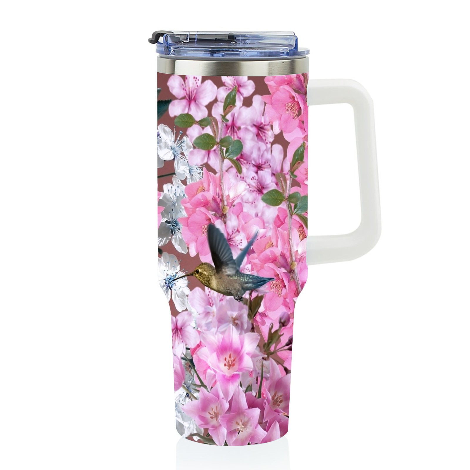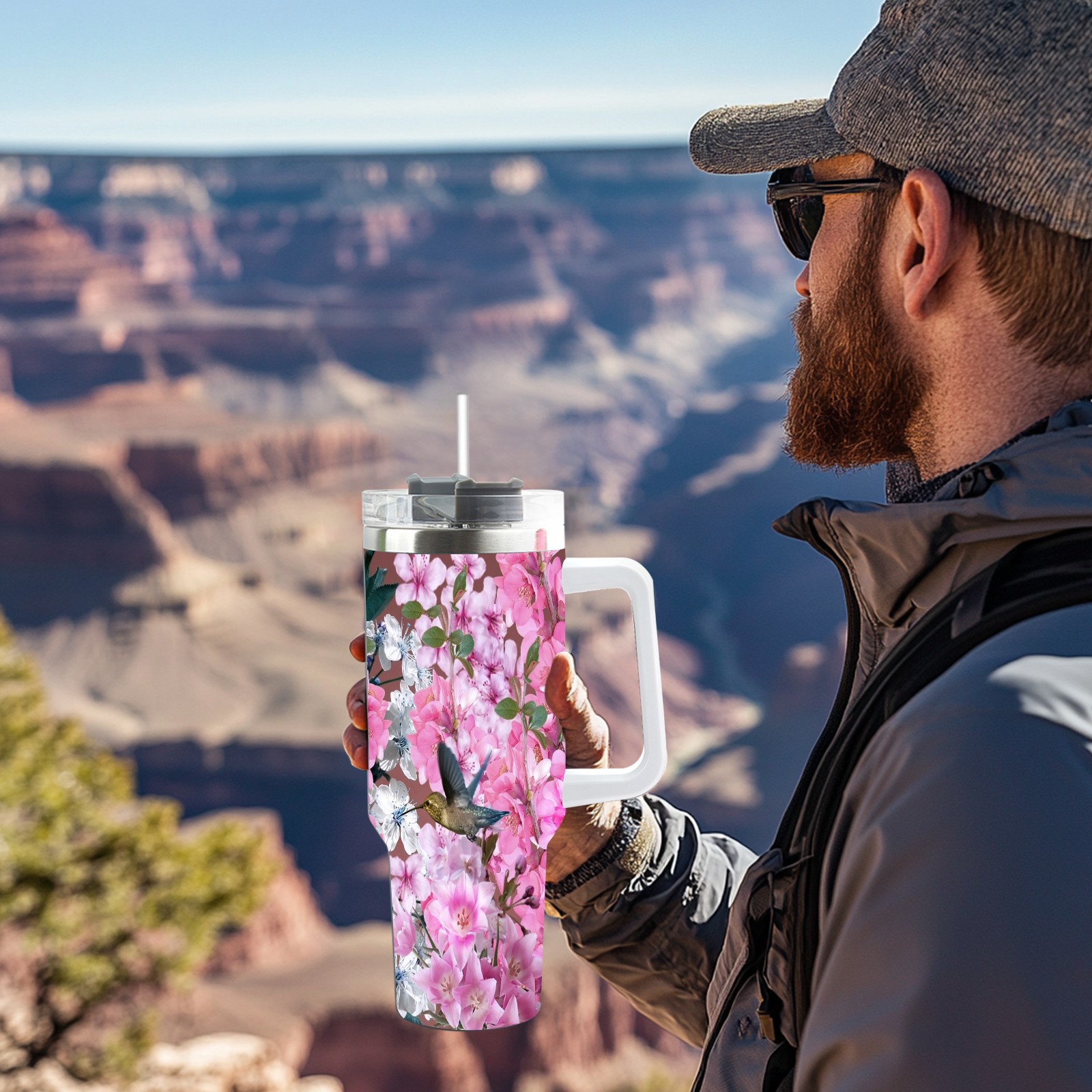 40oz Pink Flowers thermos with lid and straw, leak-proof stainless steel, with handle, spill-proof bottle, convenient for travel(pink)