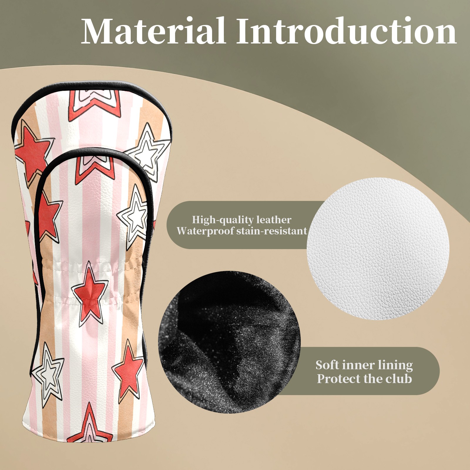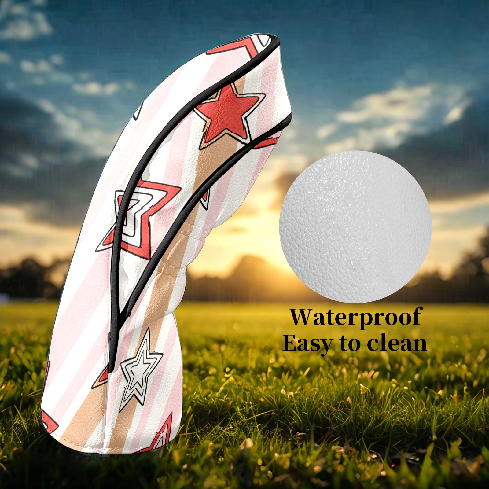 Counullo Golf Club Headcovers - Fresh Stars Pink Premium PU Leather with Plush Lining for Driver & Fairway Woods, No-Slip Fit for All Clubs, Novelty Gift for Men & Women