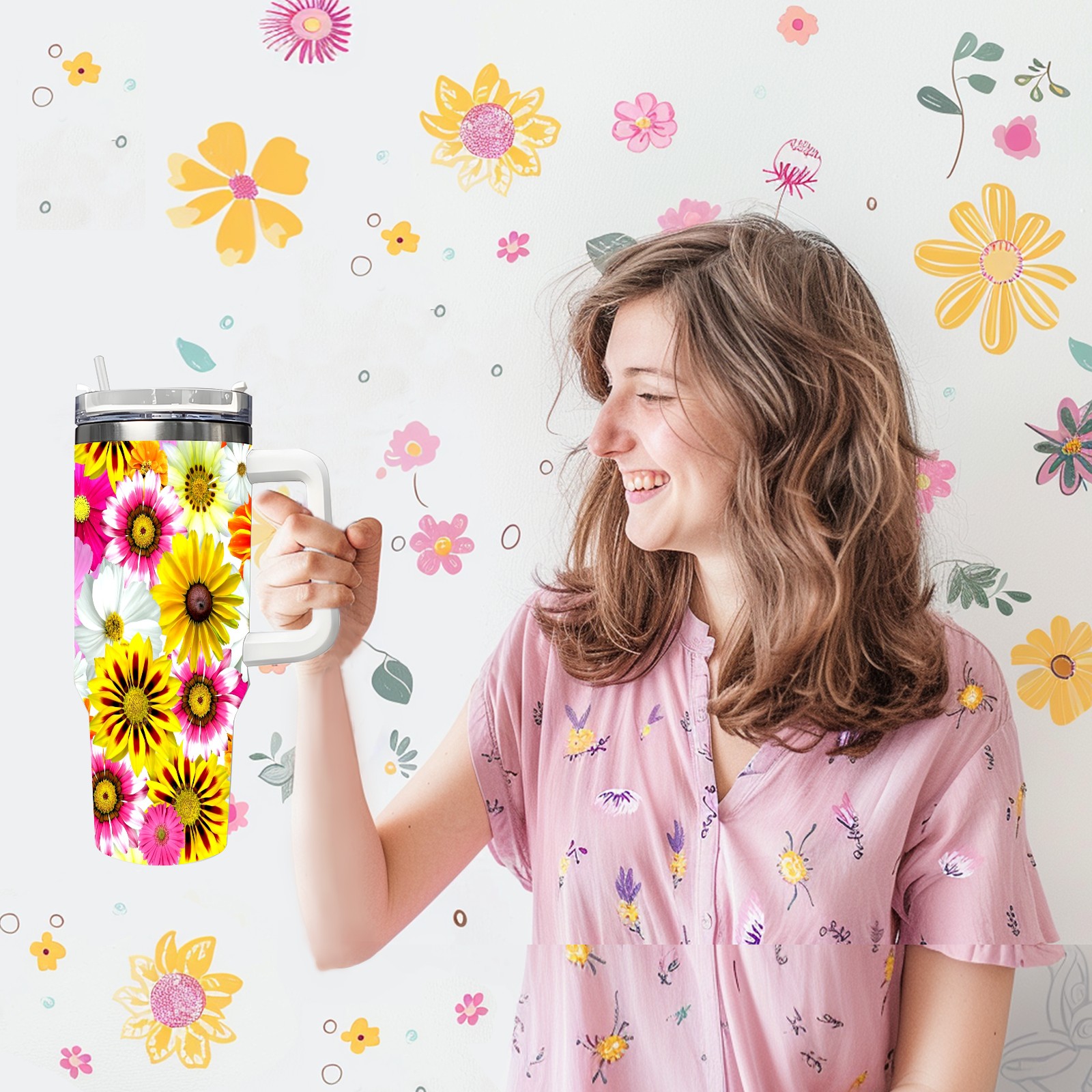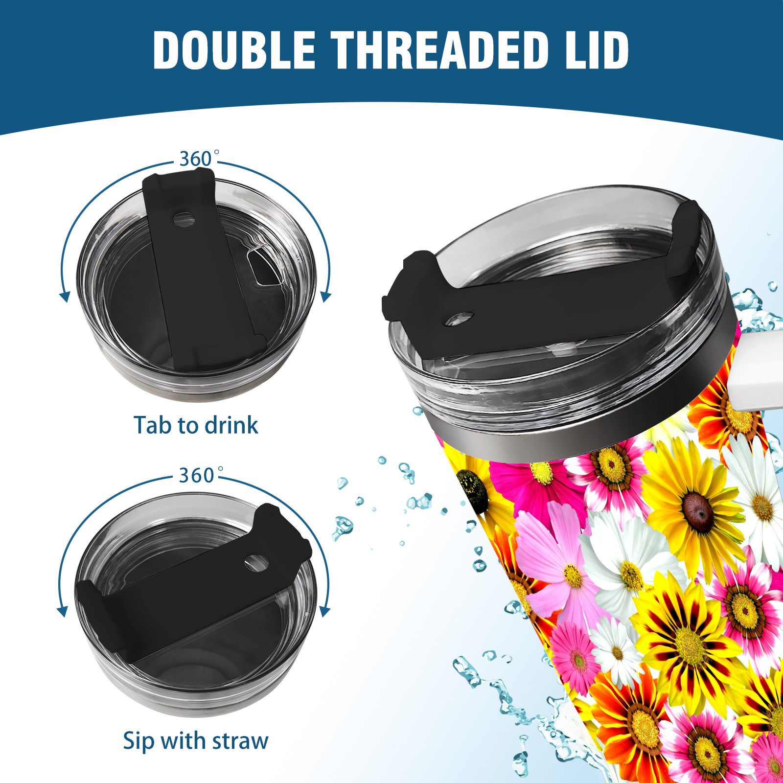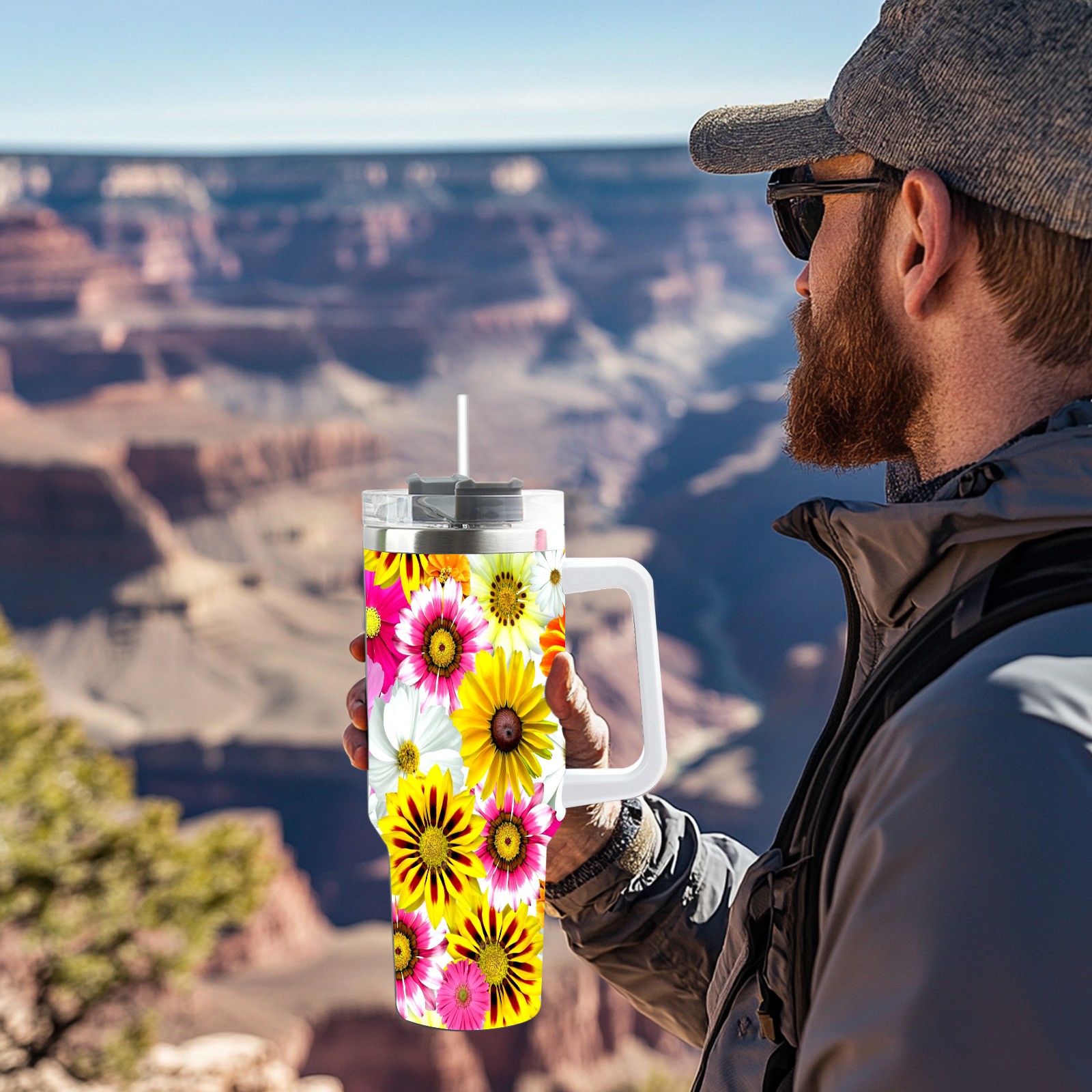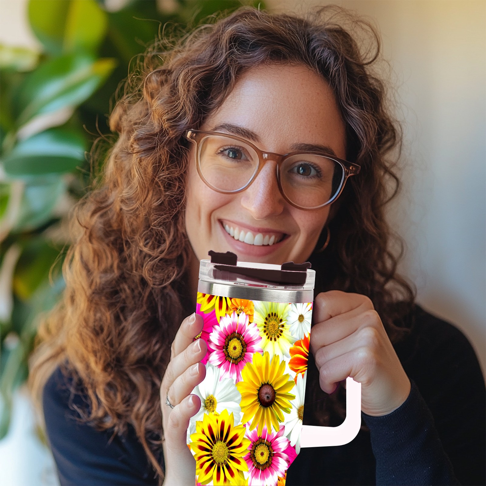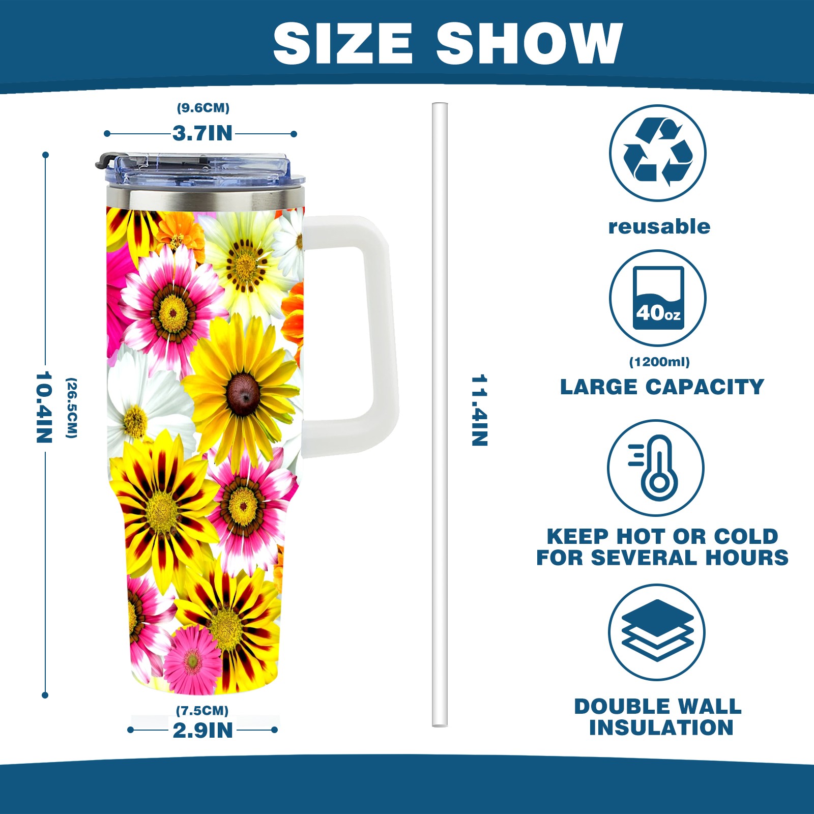 40oz Daisy Flowers thermos with lid and straw, leak-proof stainless steel, with handle, spill-proof bottle, convenient for travel(pink)