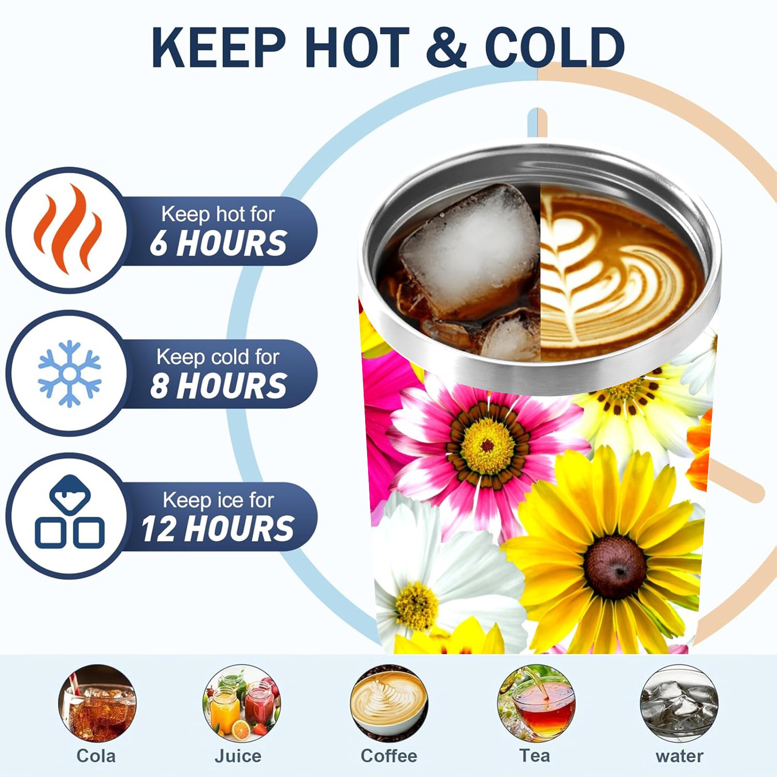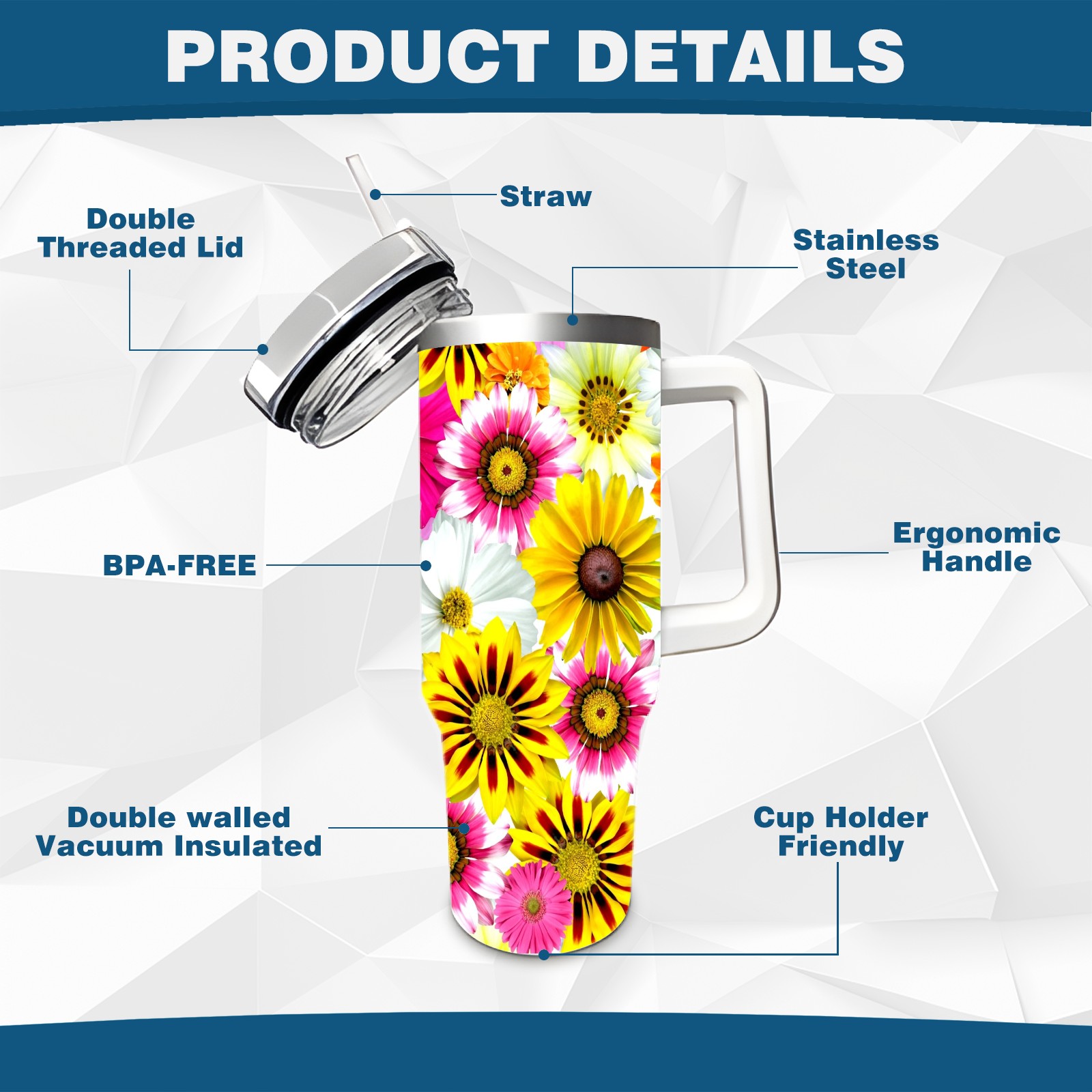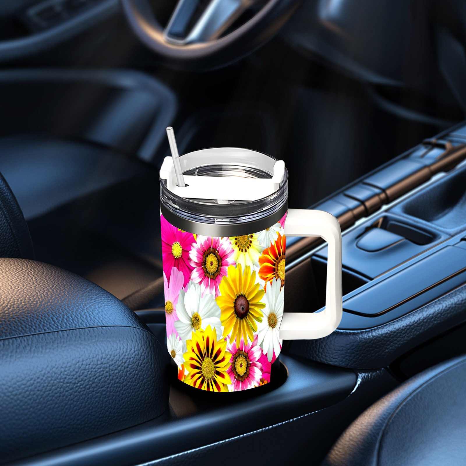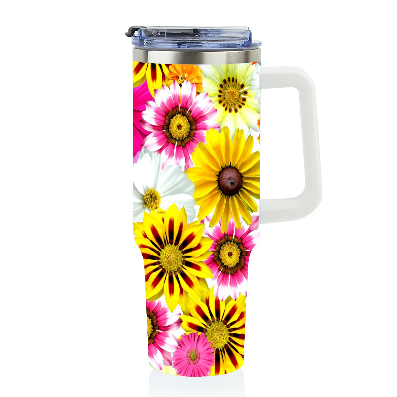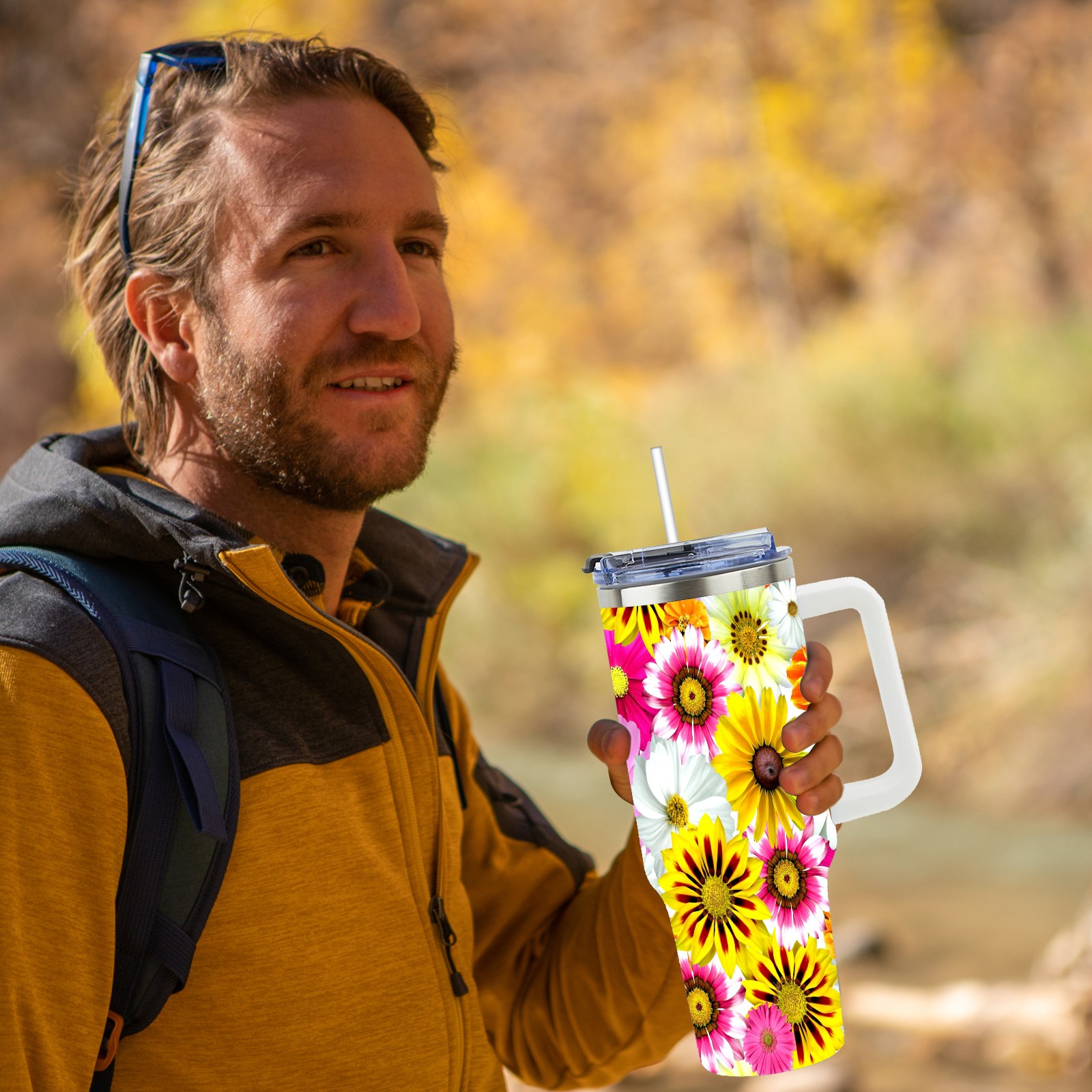 40oz Daisy Flowers thermos with lid and straw, leak-proof stainless steel, with handle, spill-proof bottle, convenient for travel(pink)