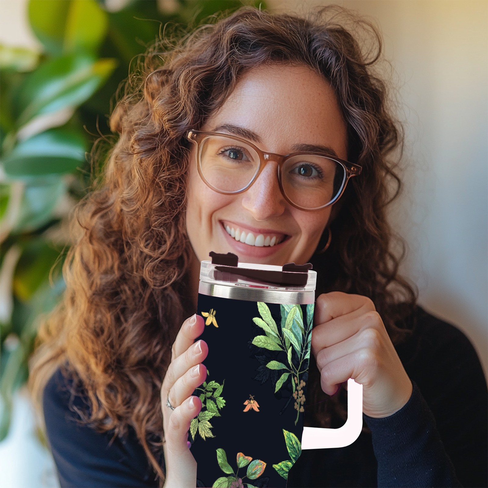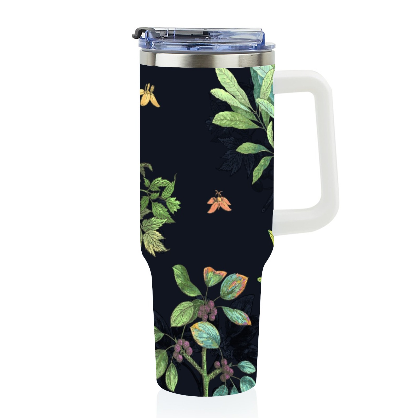 40oz Green Flower thermos with lid and straw, leak-proof stainless steel, with handle, spill-proof bottle, convenient for travel(pink)