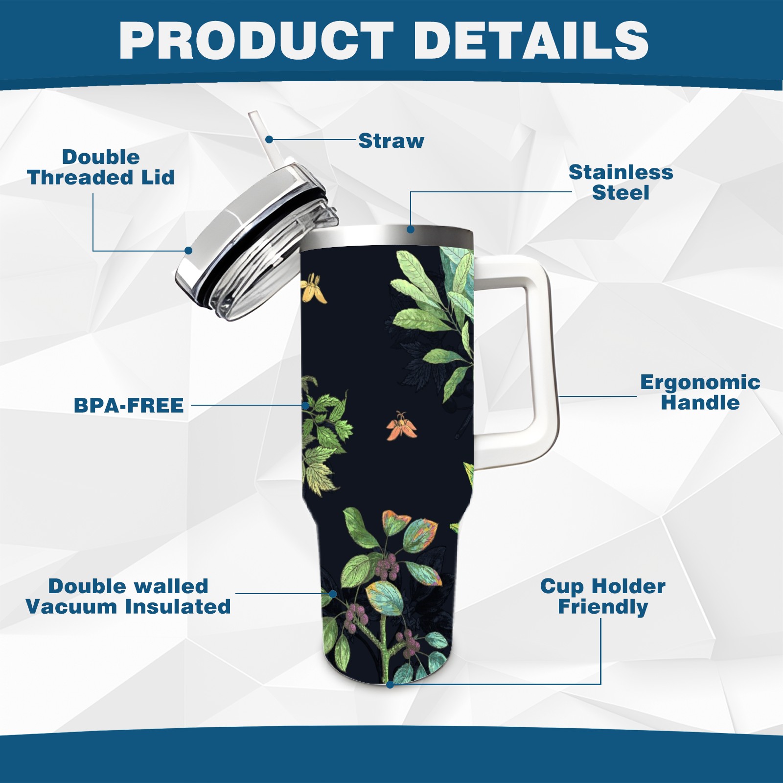 <p>This multi-functional insulated water bottle features a simple and practical design, suitable for various daily scenarios. The ergonomic handle allows for easy one-handed drinking, and the detachable handle can be adjusted or removed as needed, making it convenient for commuting, exercising, or carrying to meetings. Made of high-quality stainless steel, it is BPA-free and features double-walled vacuum insulation technology that keeps drinks cold for 8 hours and hot for 6 hours, ensuring you can enjoy your beverage at the perfect temperature anytime, anywhere. The 40-ounce Christmas edition comes with a sliding lid, silicone straw, and a non-slip design. Accessories are dishwasher safe, and the narrow bottom and wide mouth design perfectly fits car cup holders. The exclusive flip-top straw lid is environmentally friendly and durable, with a one-touch leak-proof closure and two drinking modes: sip and gulp. A dust cover provides effective protection. This bottle is suitable for travel, office work, sports, camping, and other occasions, making it a thoughtful gift for friends and family.</p>