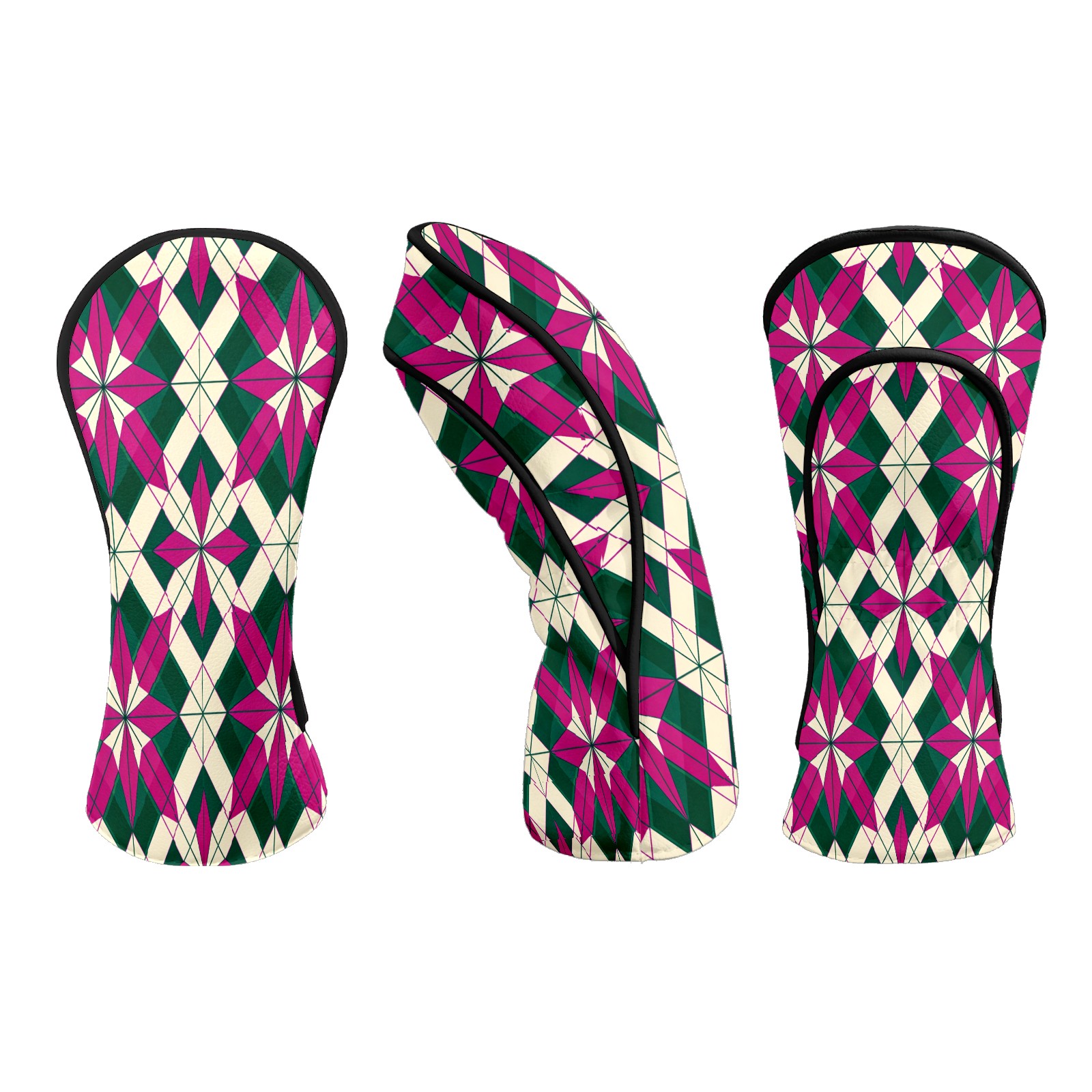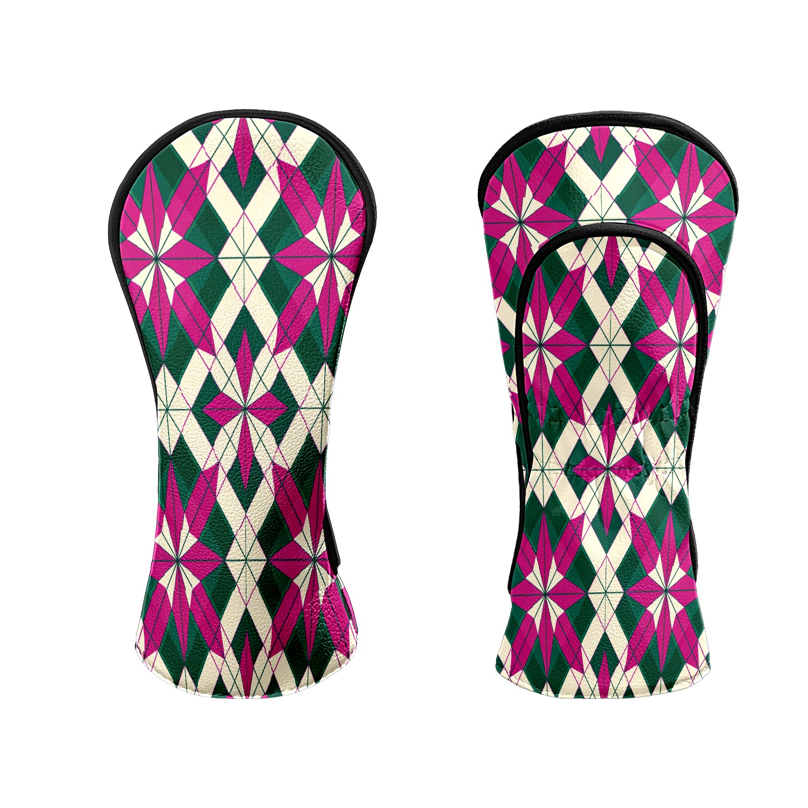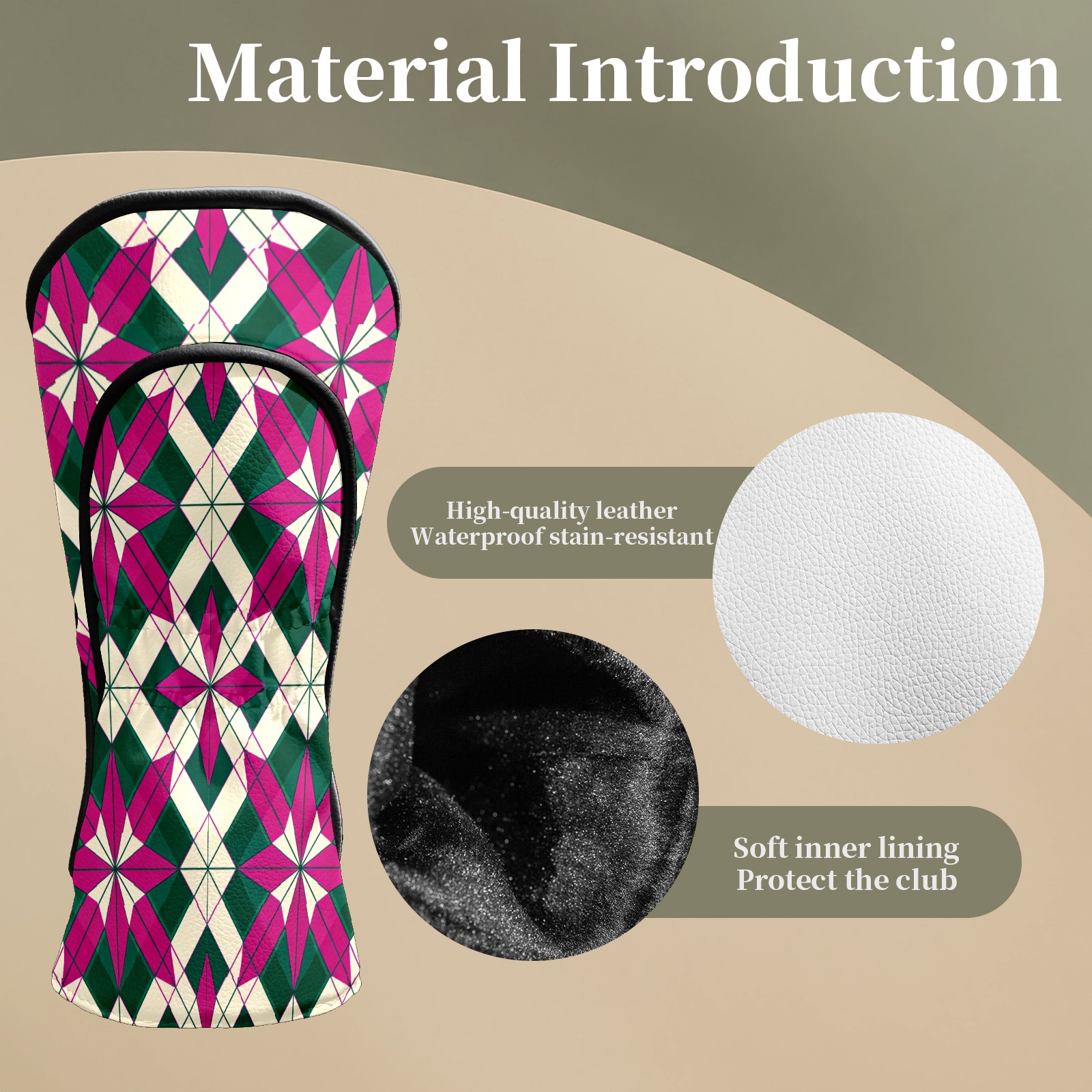 Counullo Golf Club Headcovers - Colorful Geometry Multi Premium PU Leather with Plush Lining for Driver & Fairway Woods, No-Slip Fit for All Clubs, Novelty Gift for Men & Women