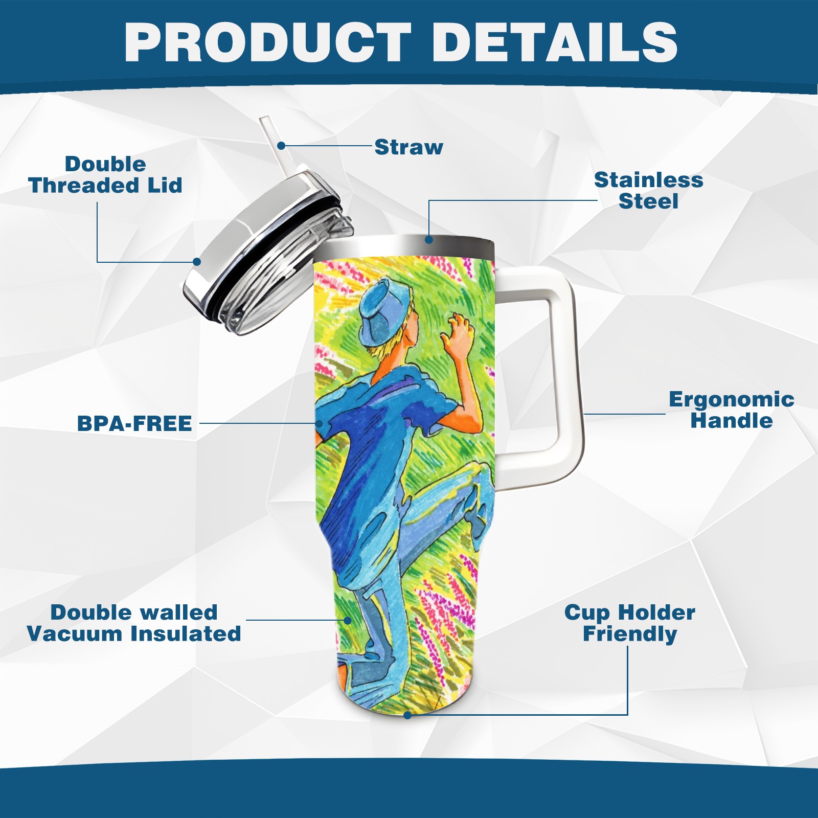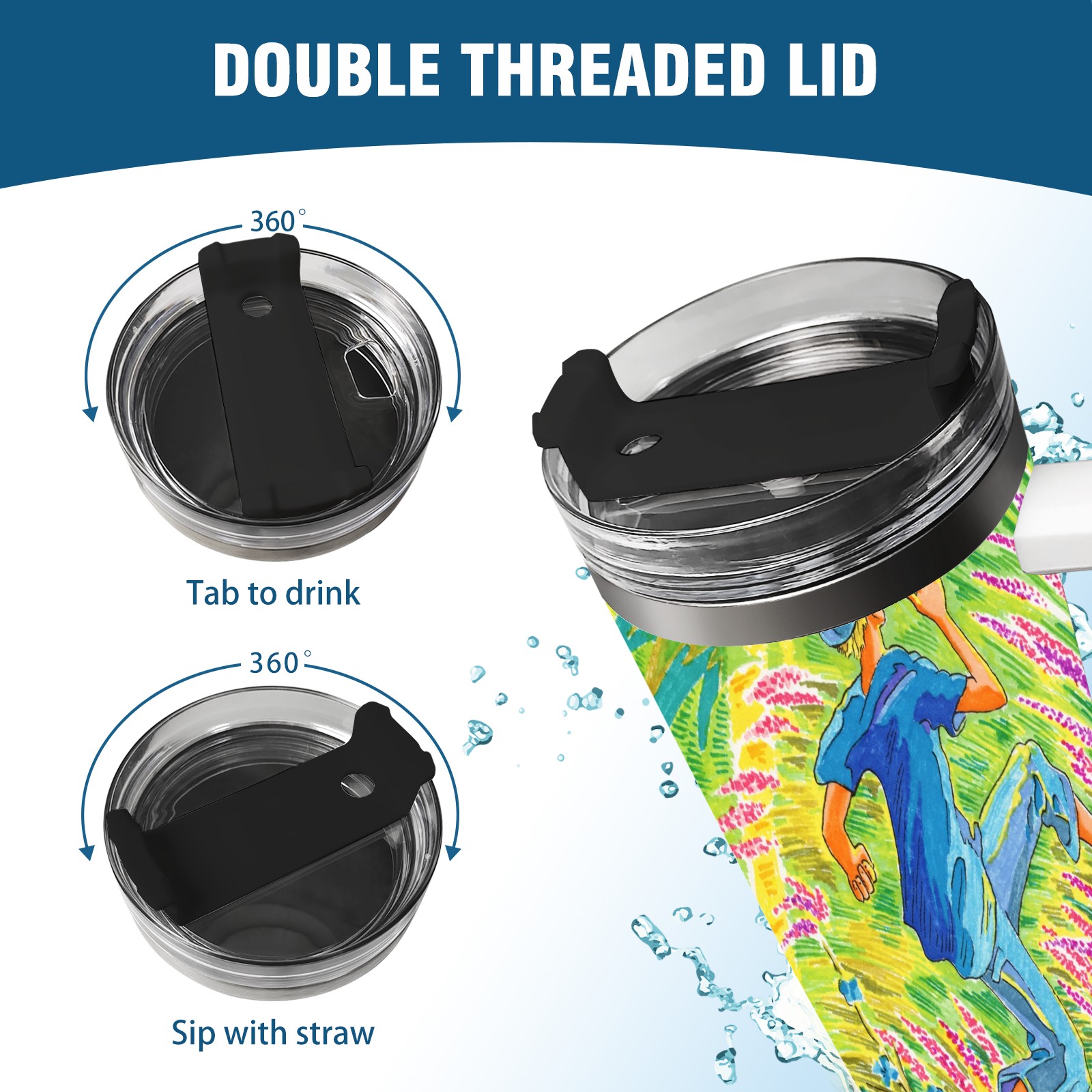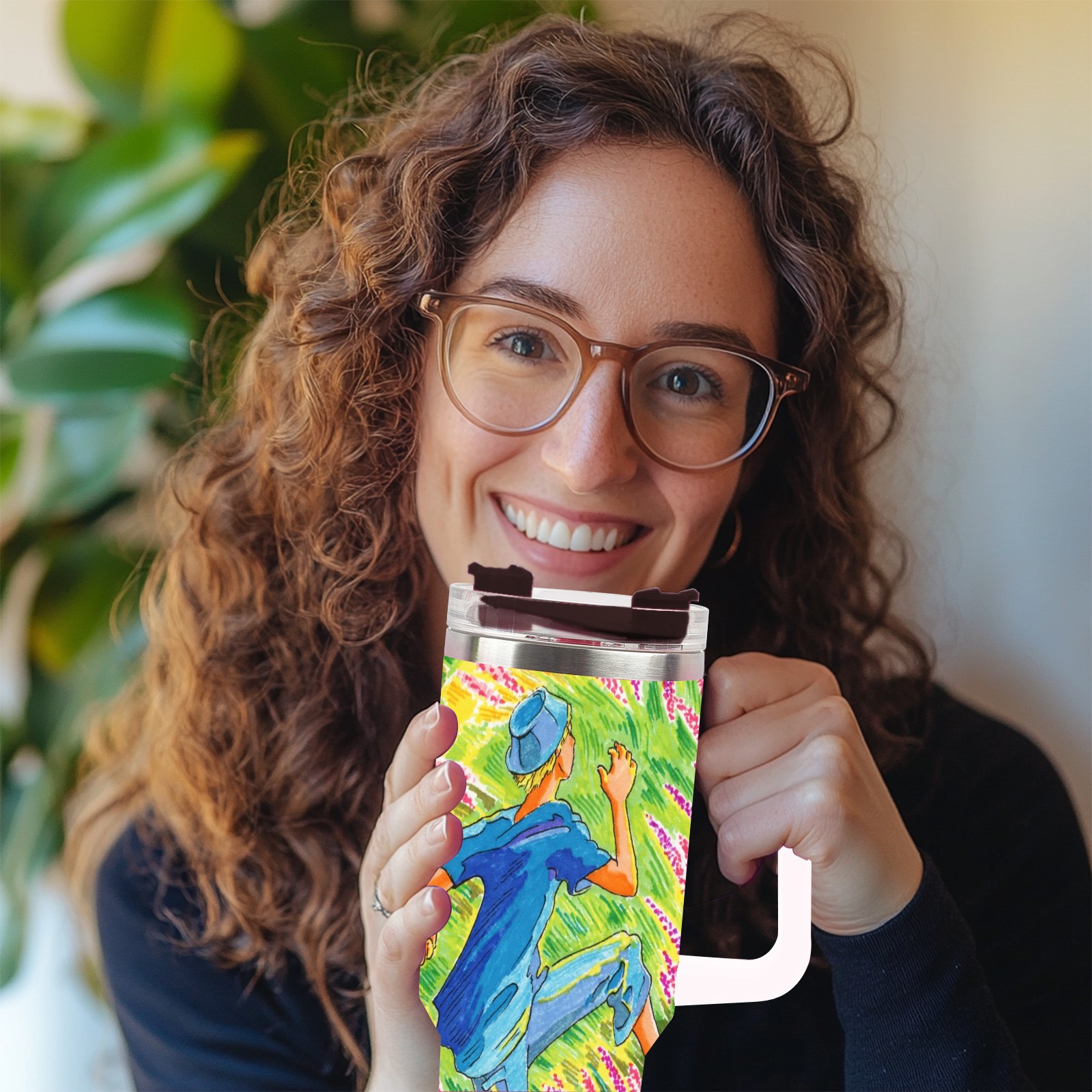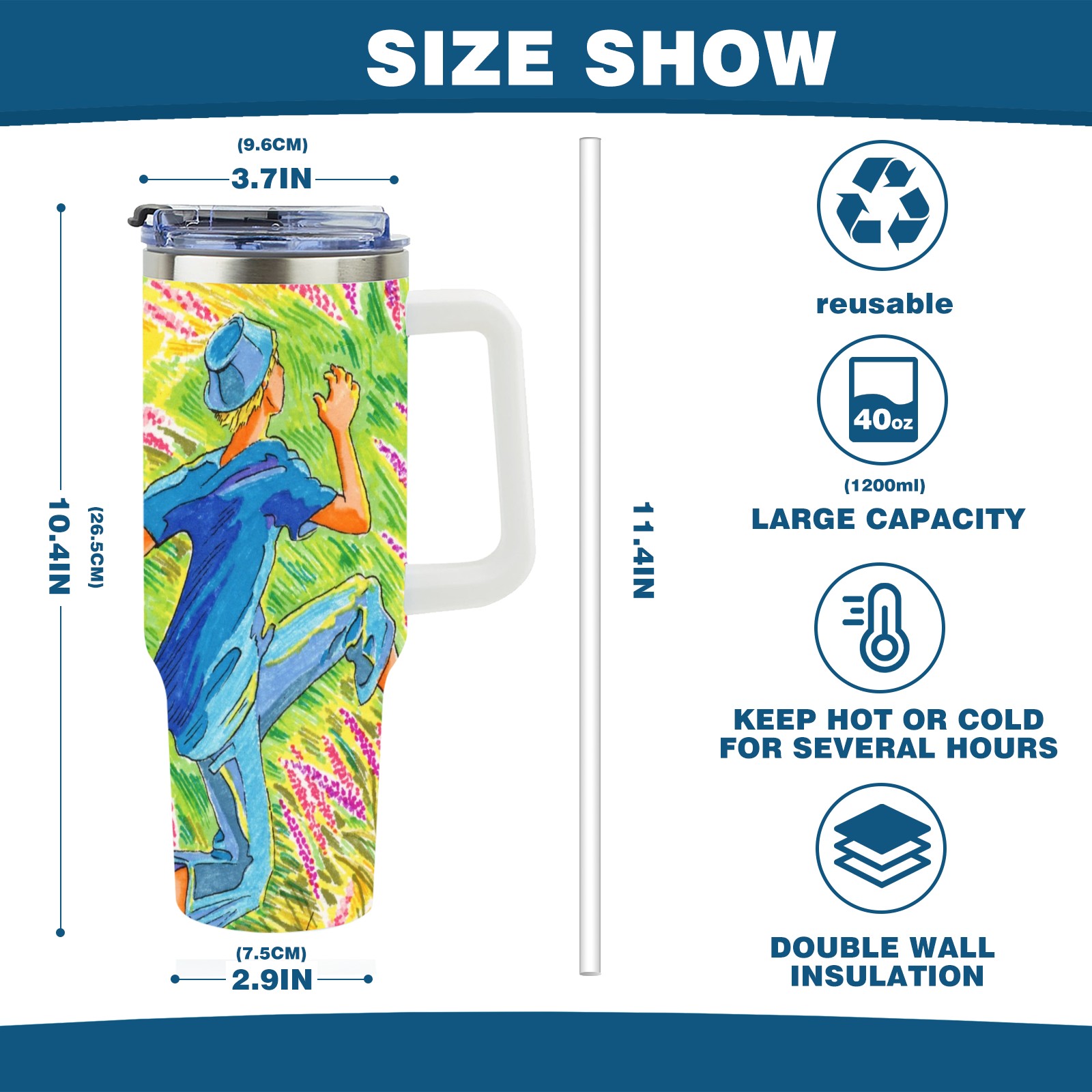 40oz Felt Tip Pen Drawing thermos with lid and straw, leak-proof stainless steel, with handle, spill-proof bottle, convenient for travel(pink)