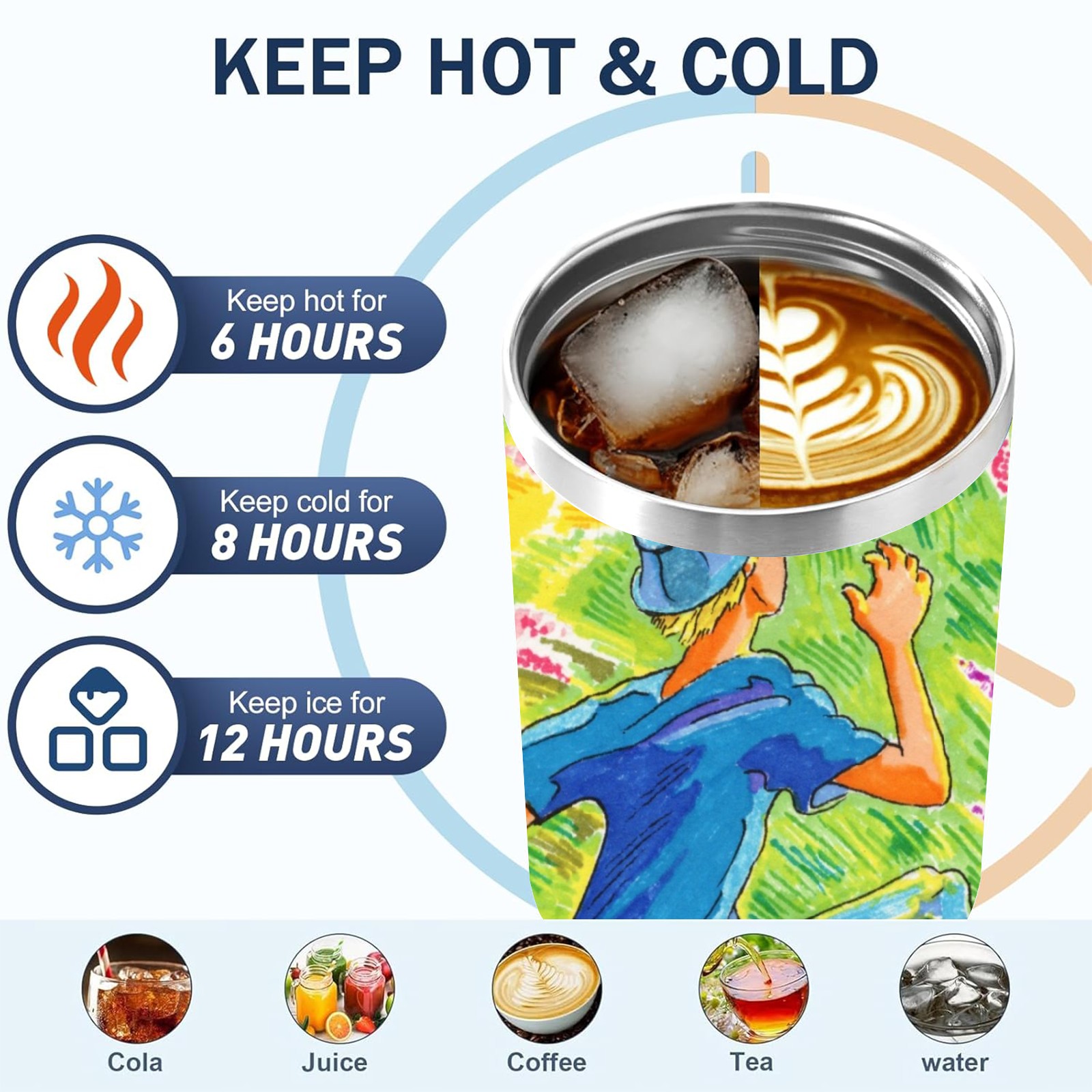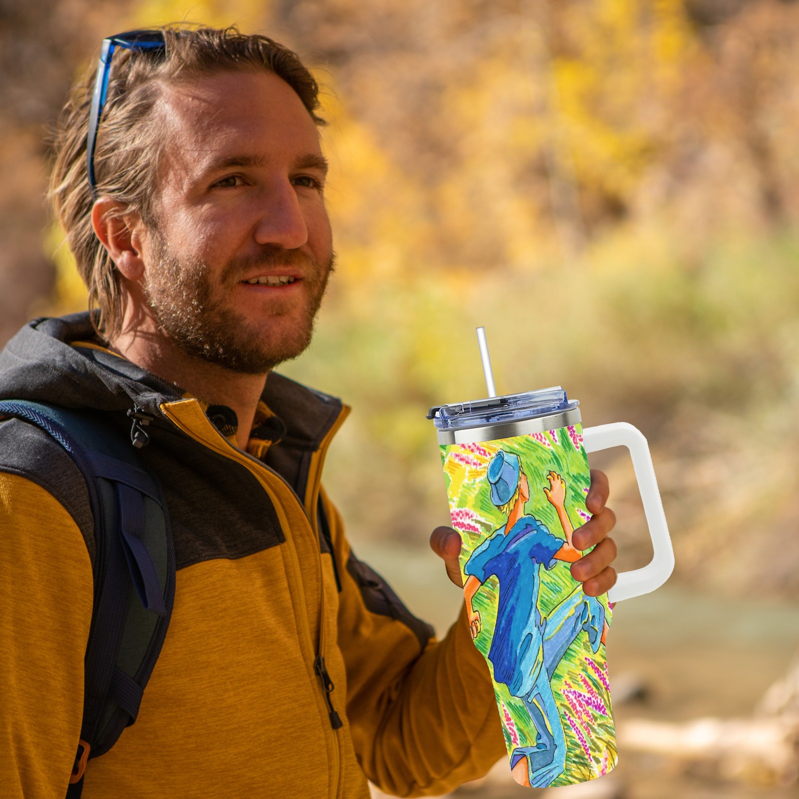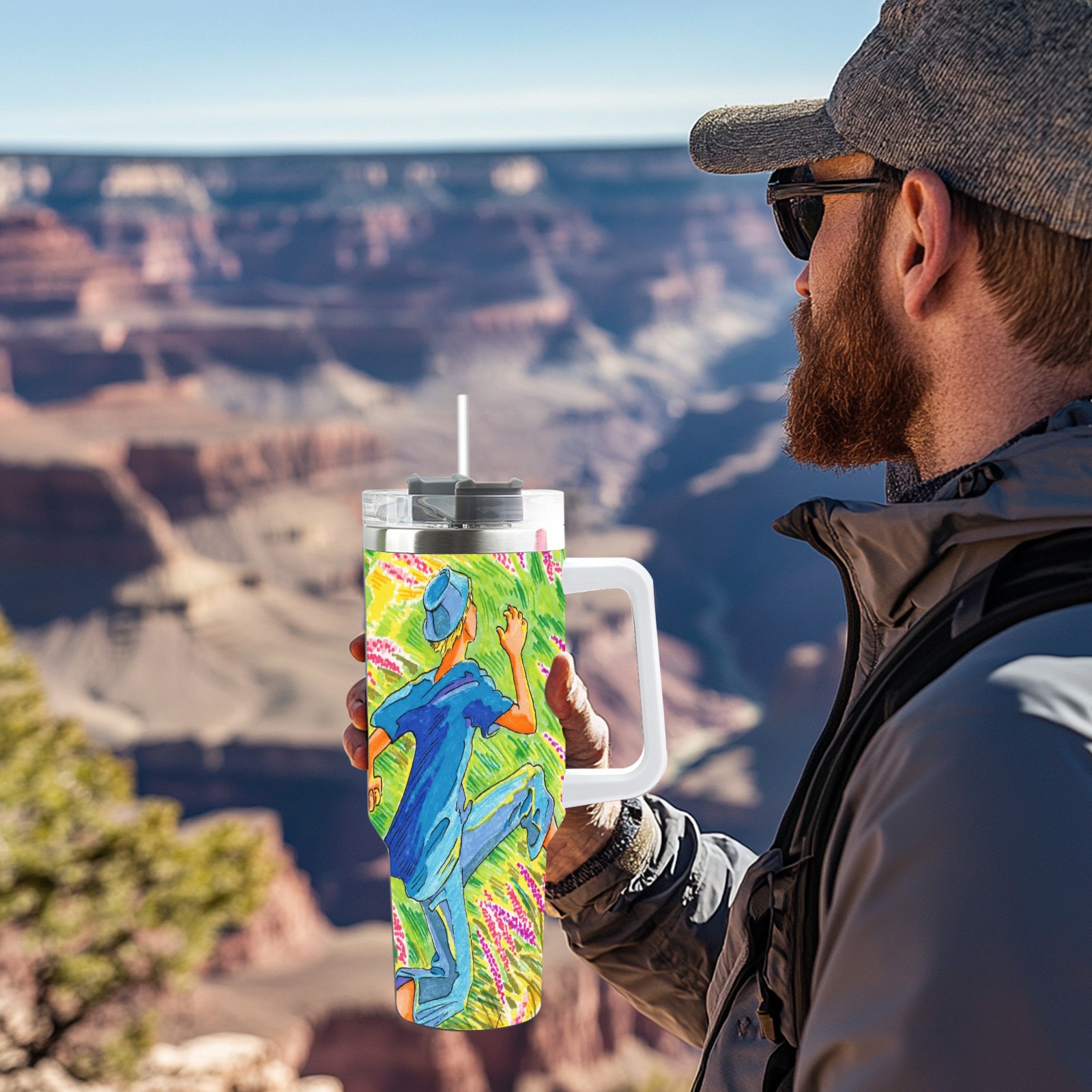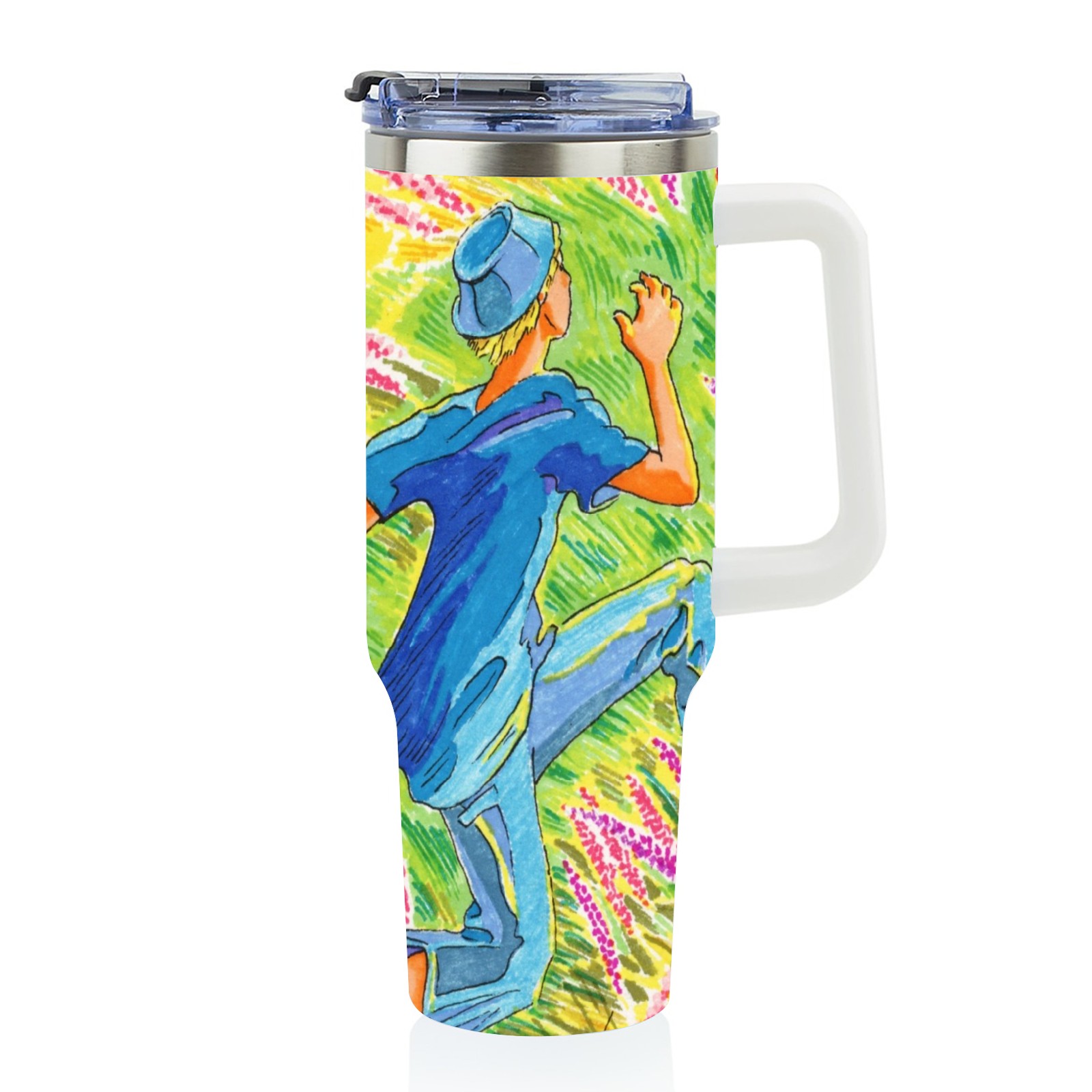 40oz Felt Tip Pen Drawing thermos with lid and straw, leak-proof stainless steel, with handle, spill-proof bottle, convenient for travel(pink)