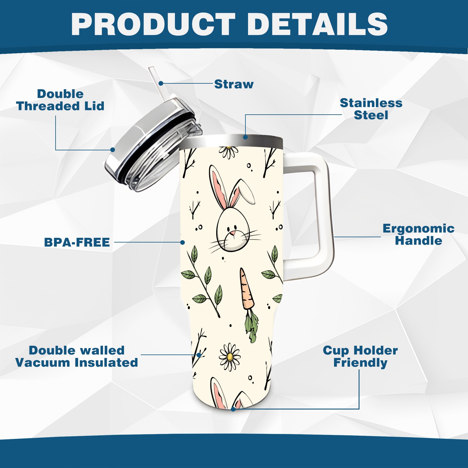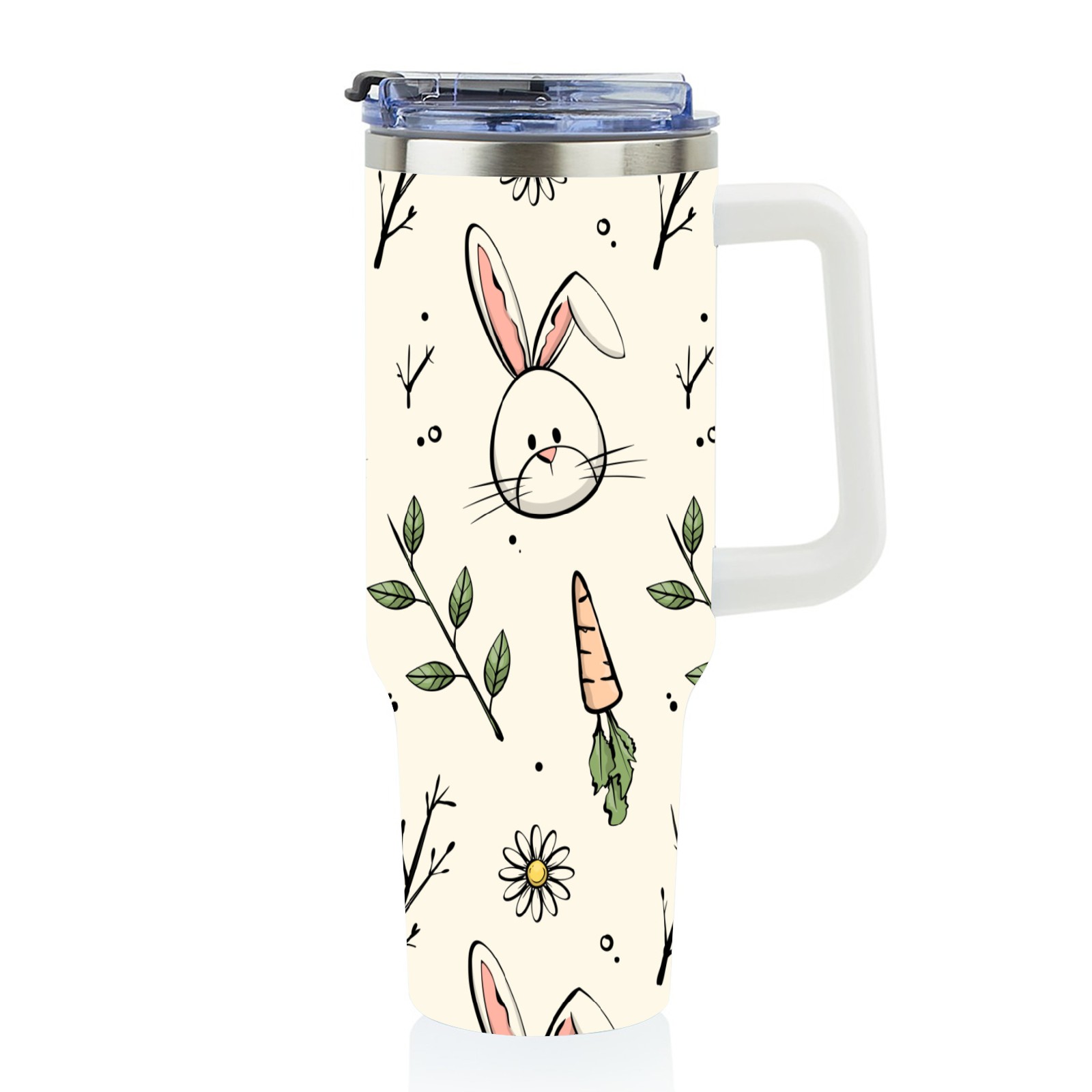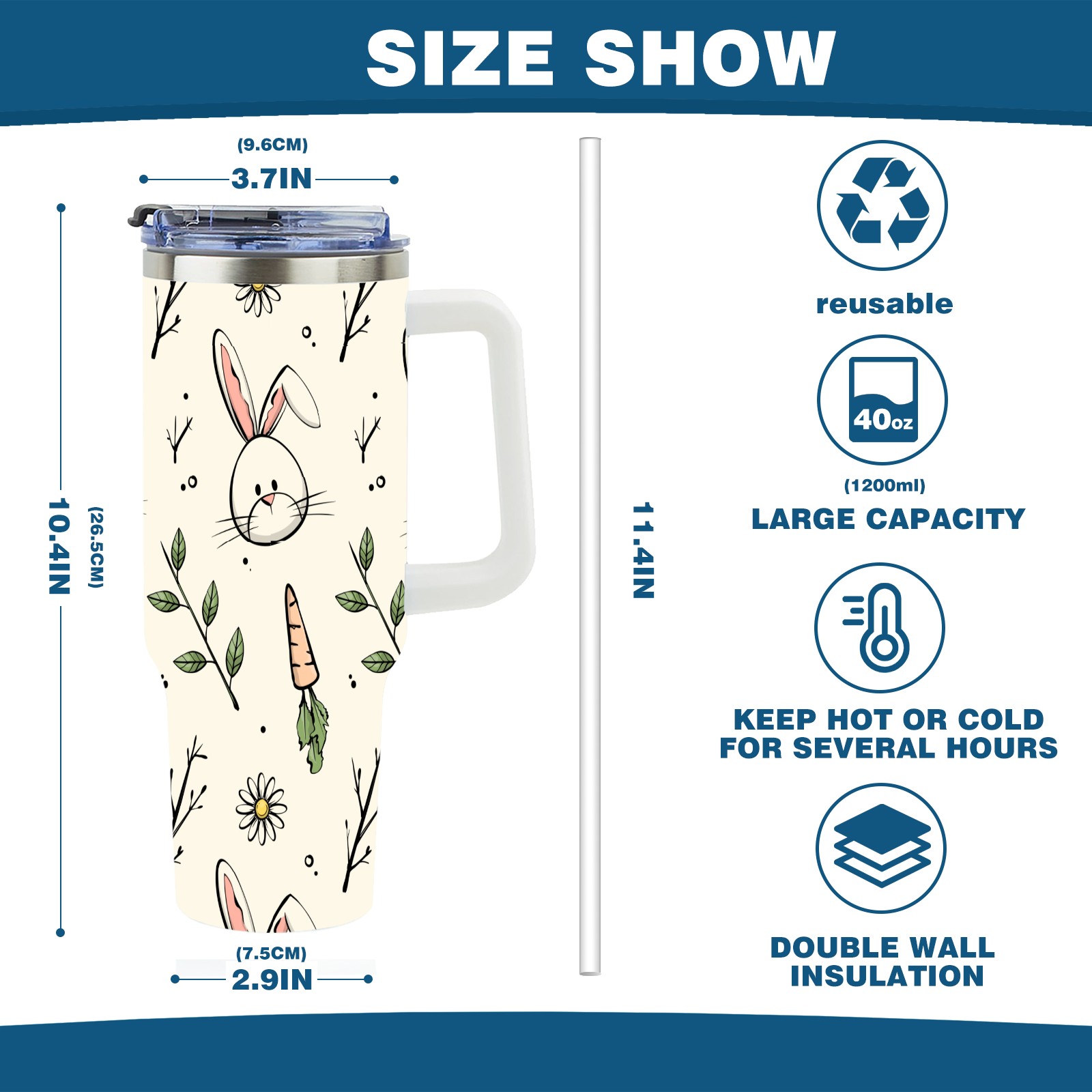 40oz Rabbit Carrot thermos with lid and straw, leak-proof stainless steel, with handle, spill-proof bottle, convenient for travel(pink)