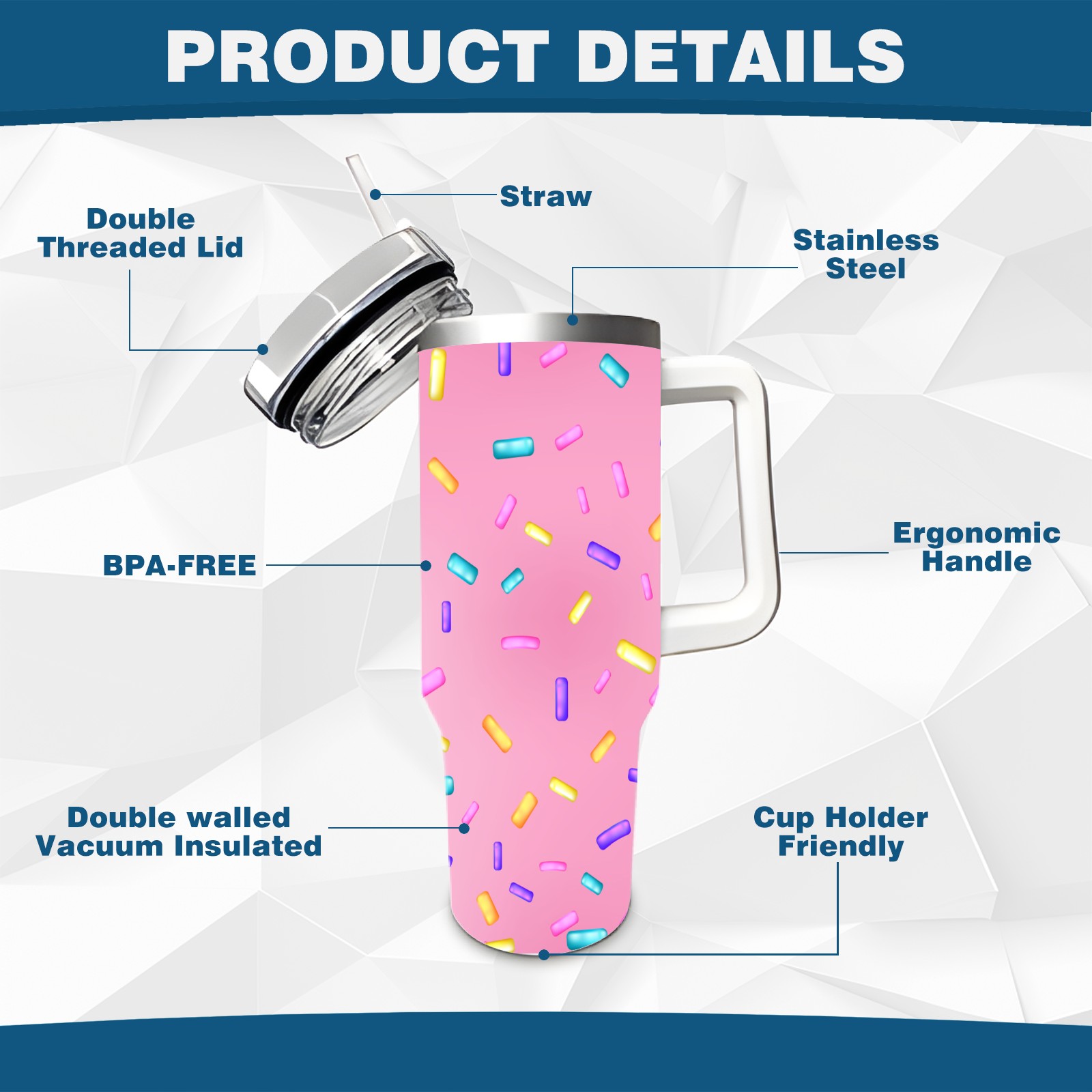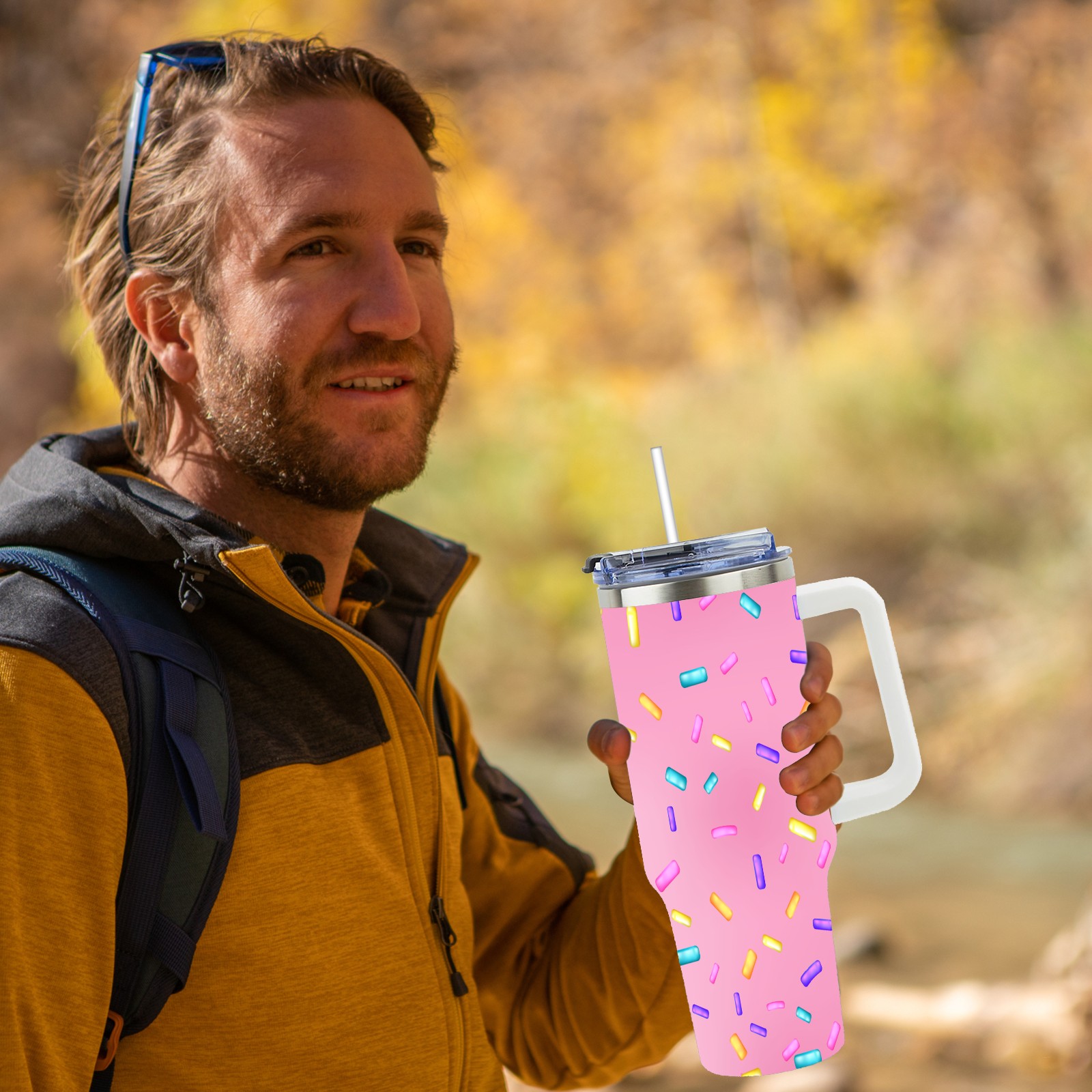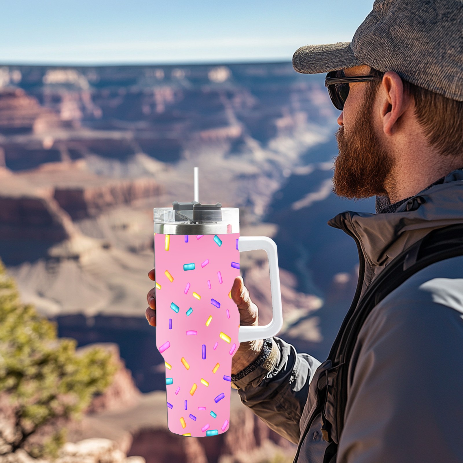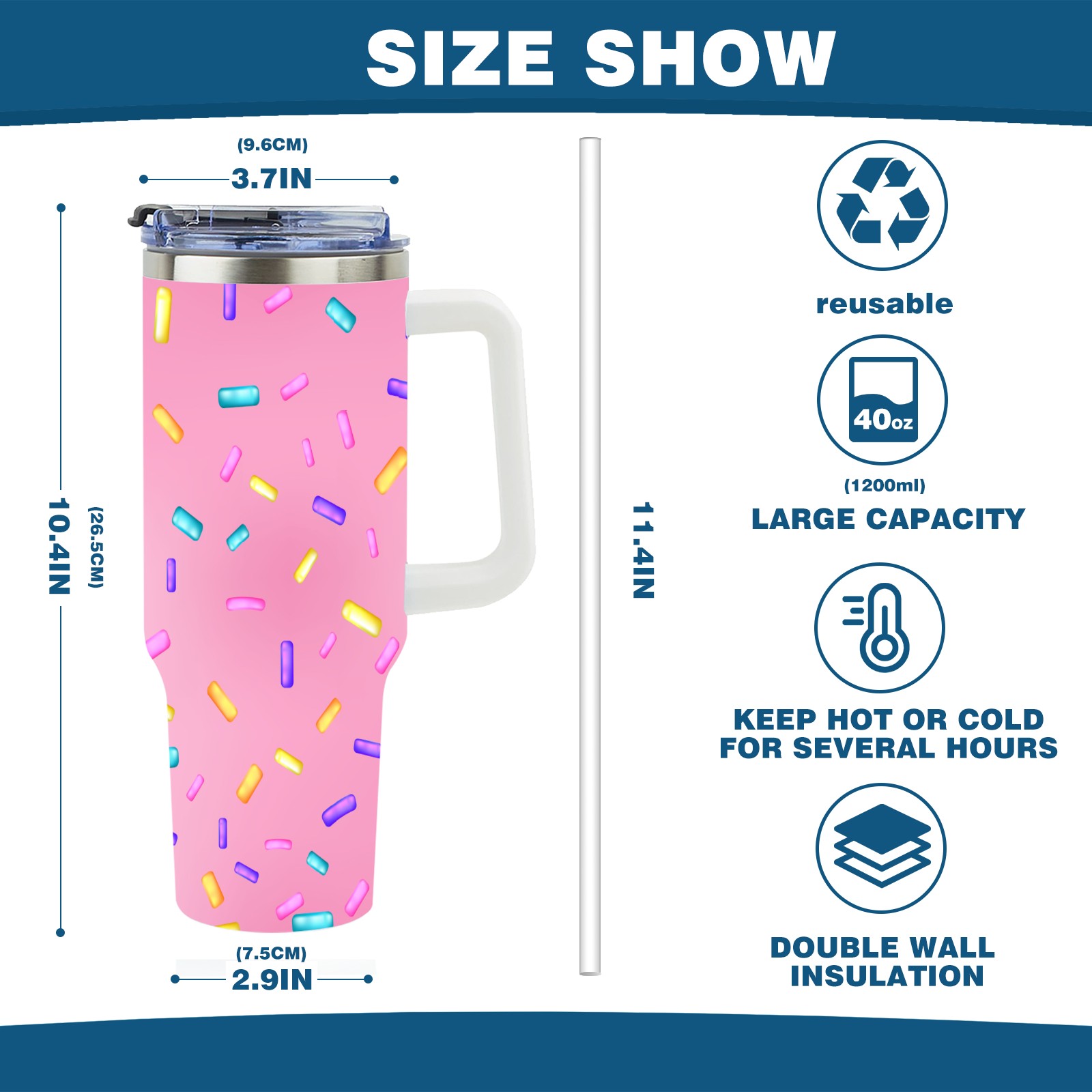 40oz Color Grain thermos with lid and straw, leak-proof stainless steel, with handle, spill-proof bottle, convenient for travel(pink)