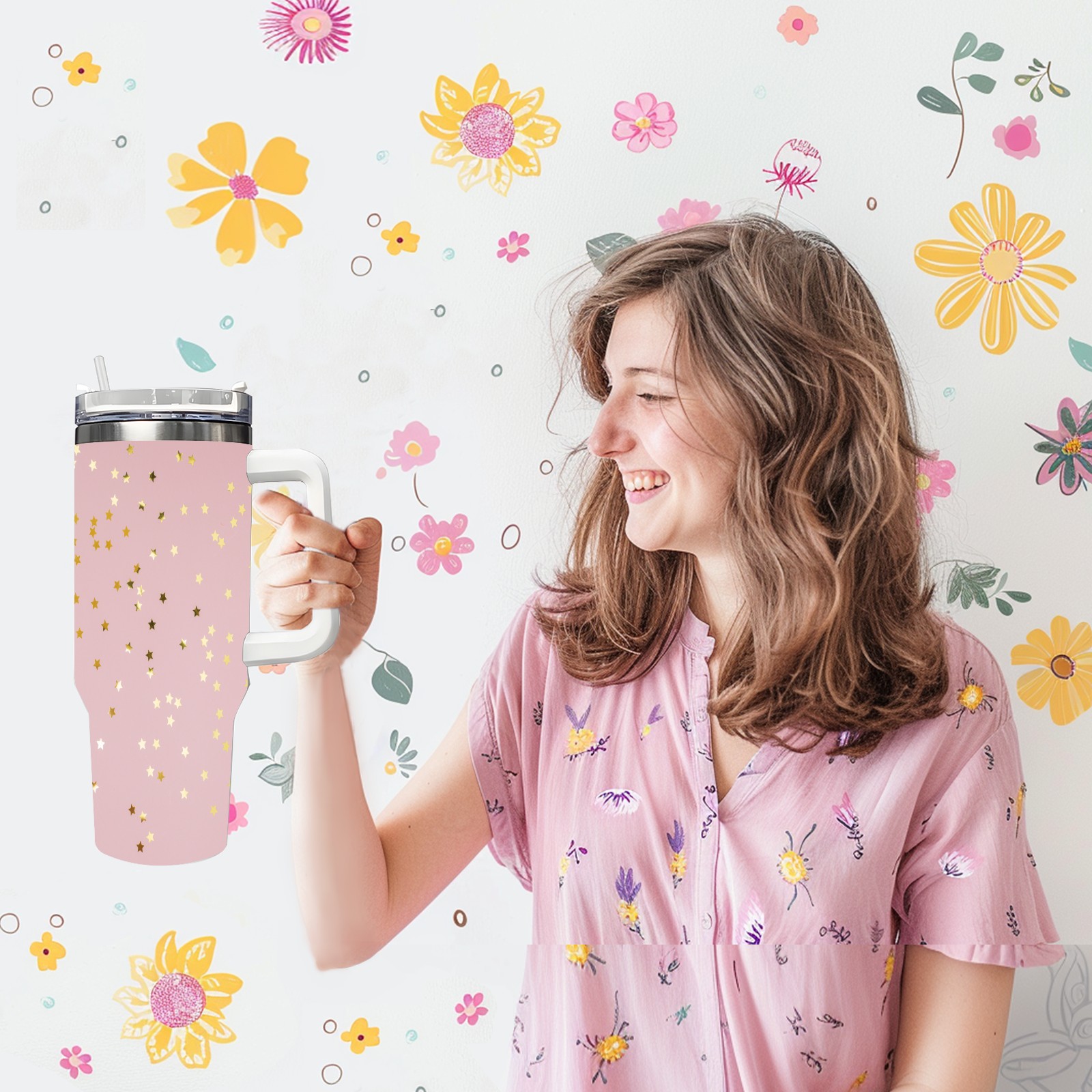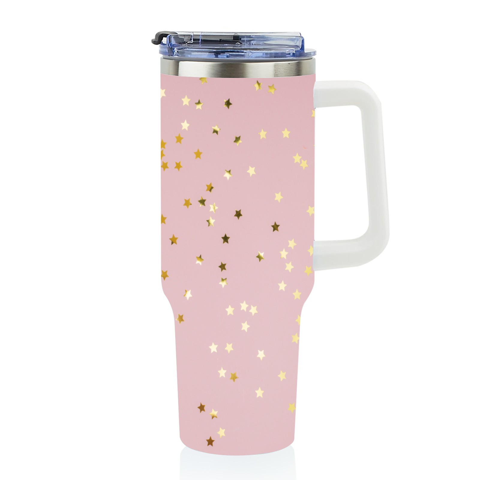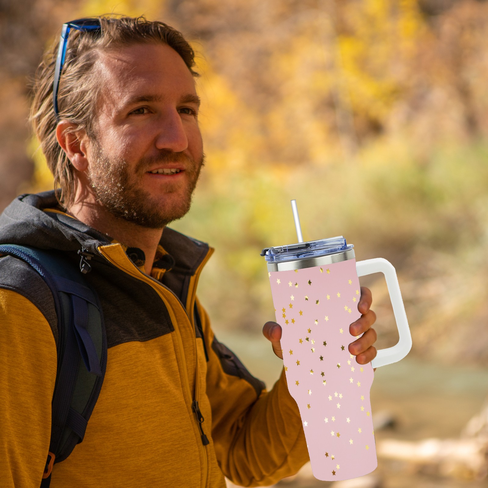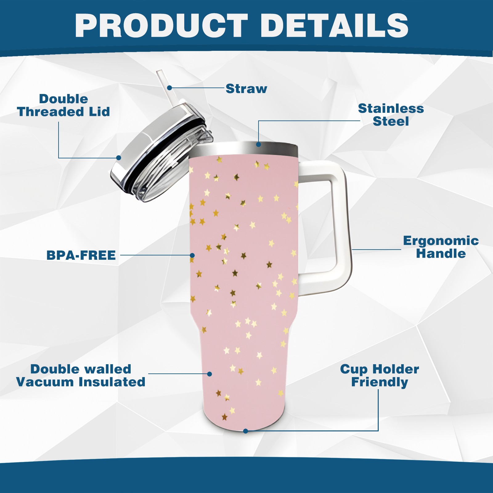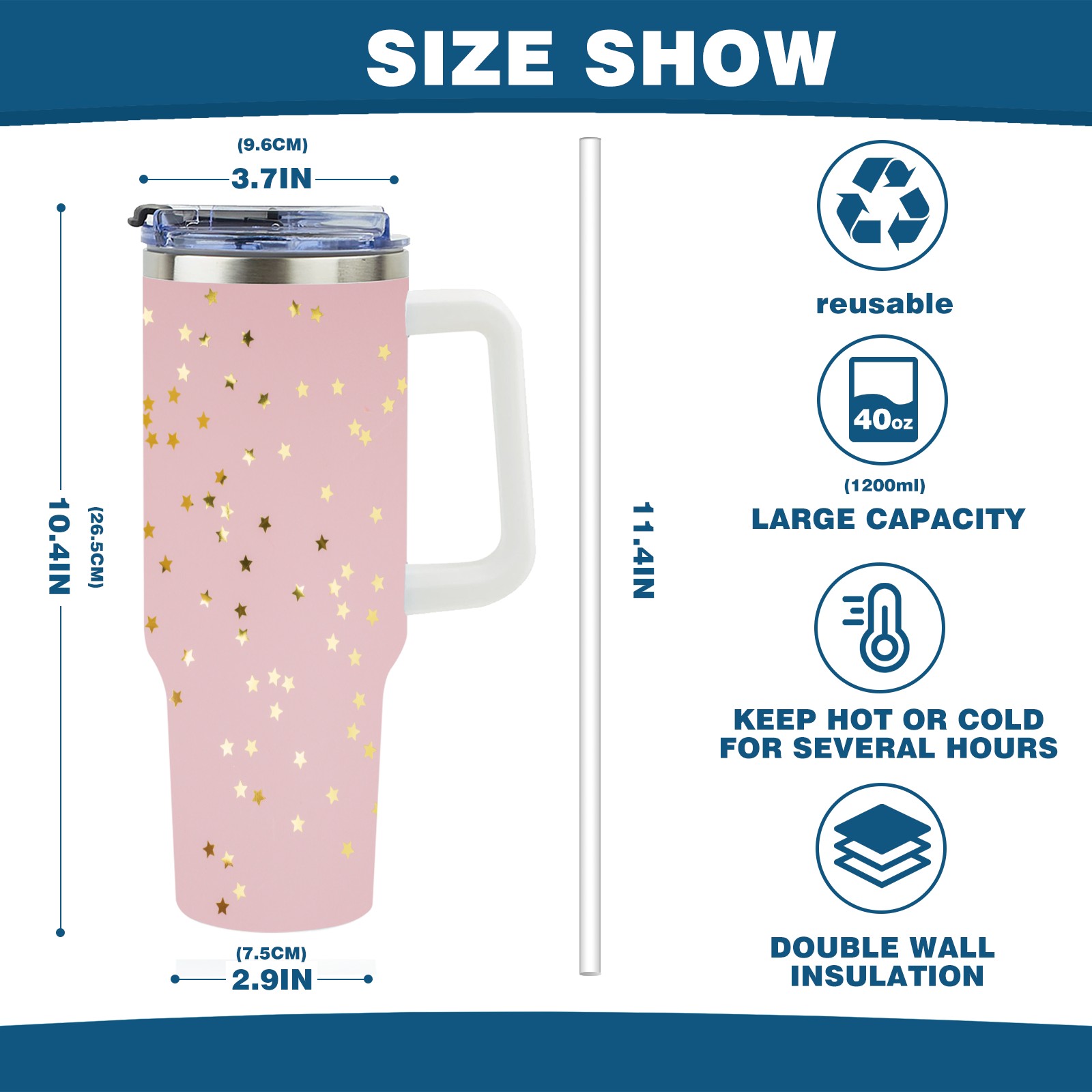 40oz Pink Gold thermos with lid and straw, leak-proof stainless steel, with handle, spill-proof bottle, convenient for travel(pink)