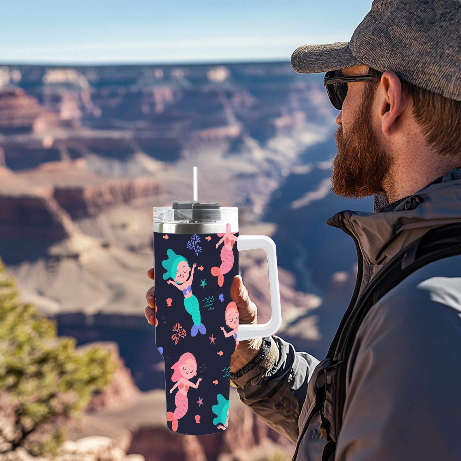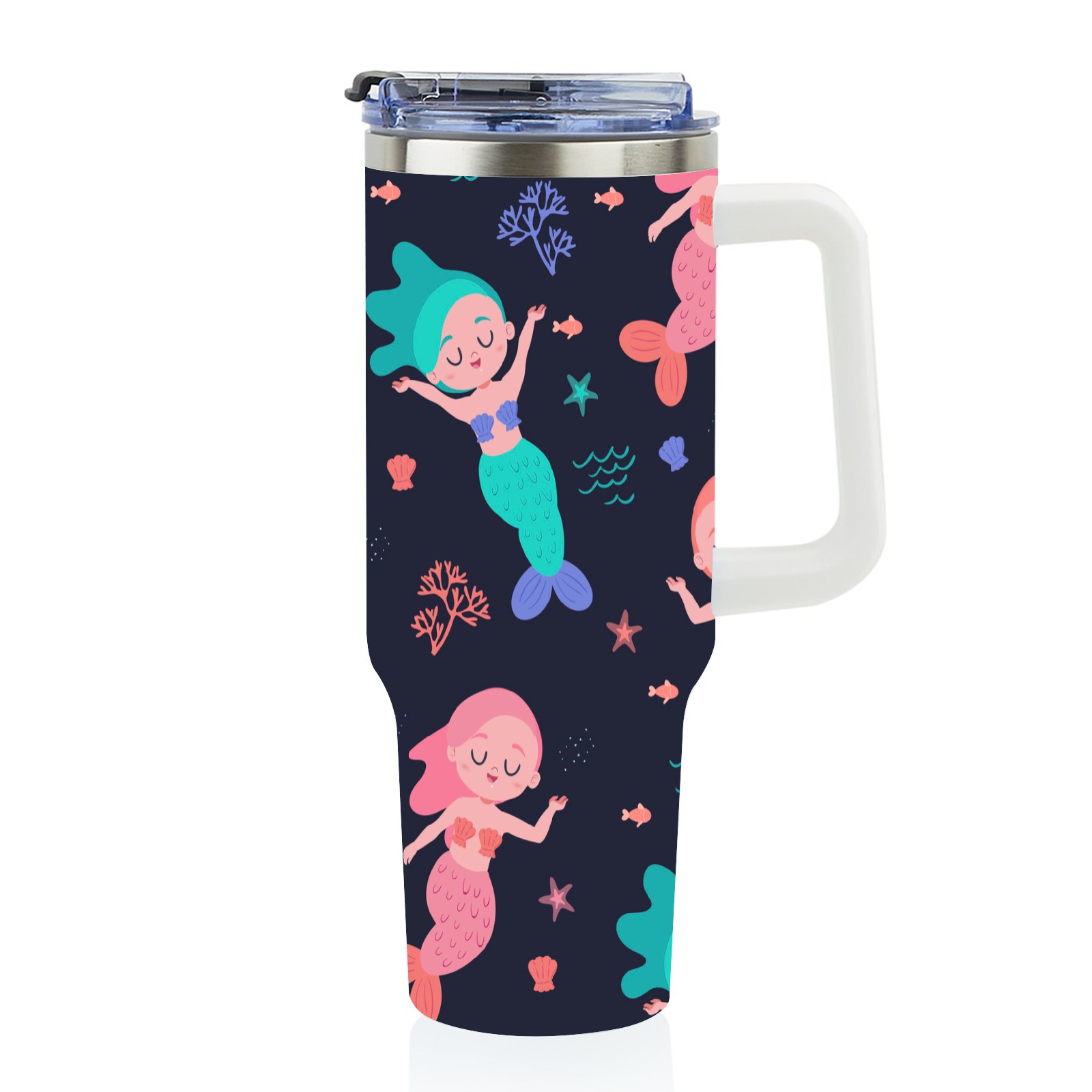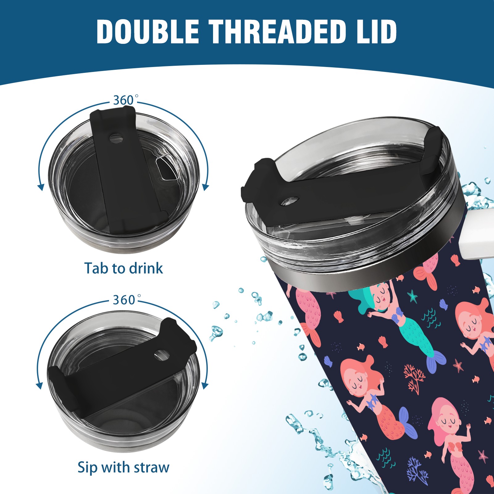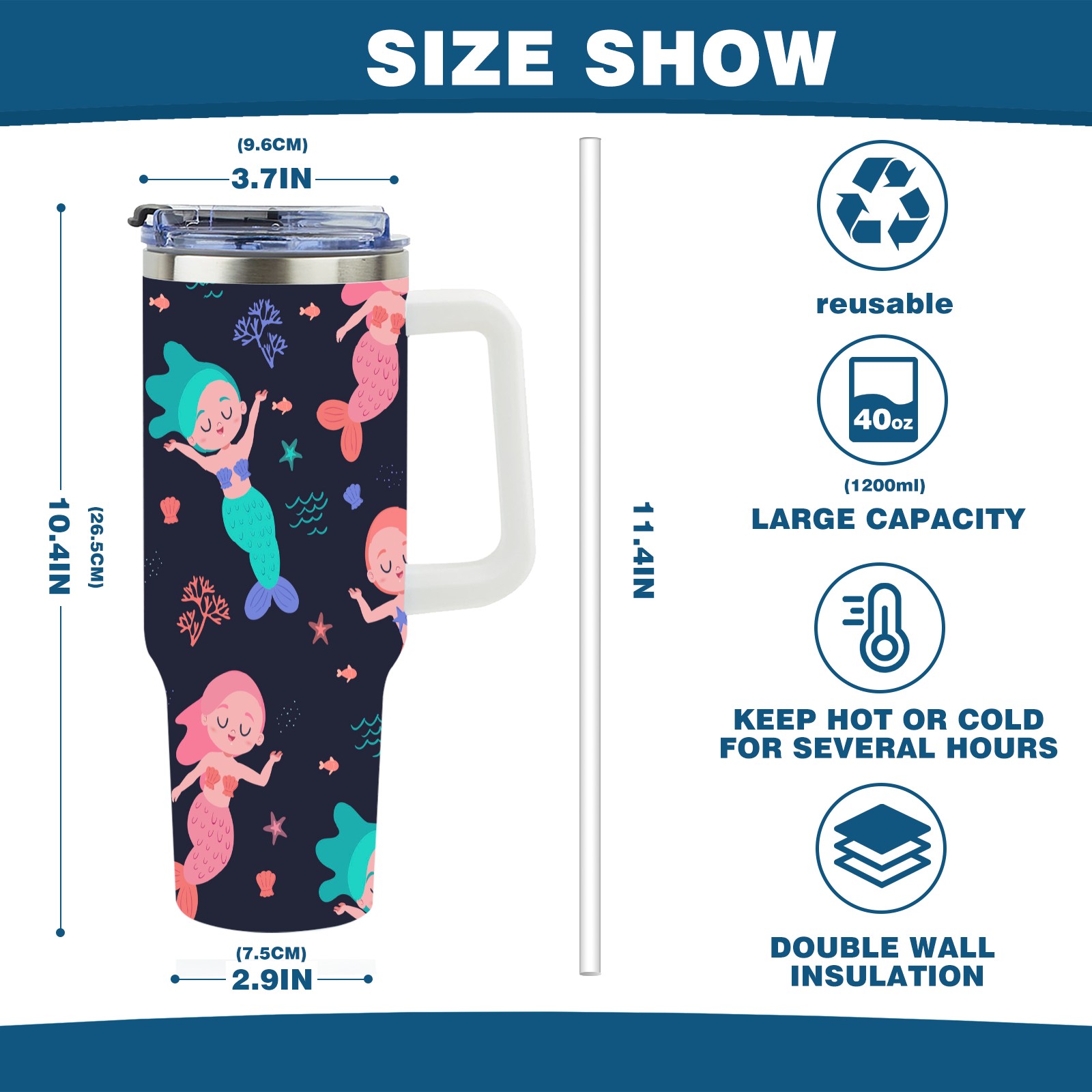 40oz Mermaid Girls thermos with lid and straw, leak-proof stainless steel, with handle, spill-proof bottle, convenient for travel(pink)