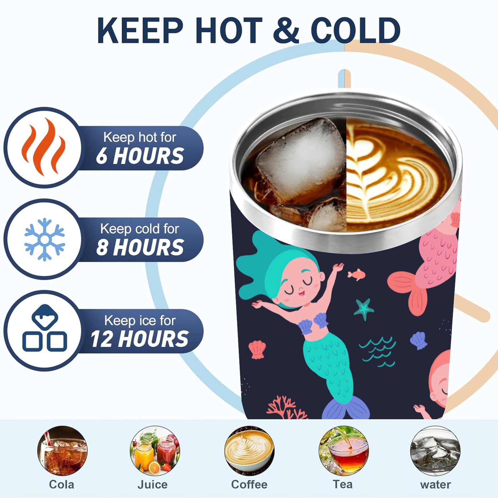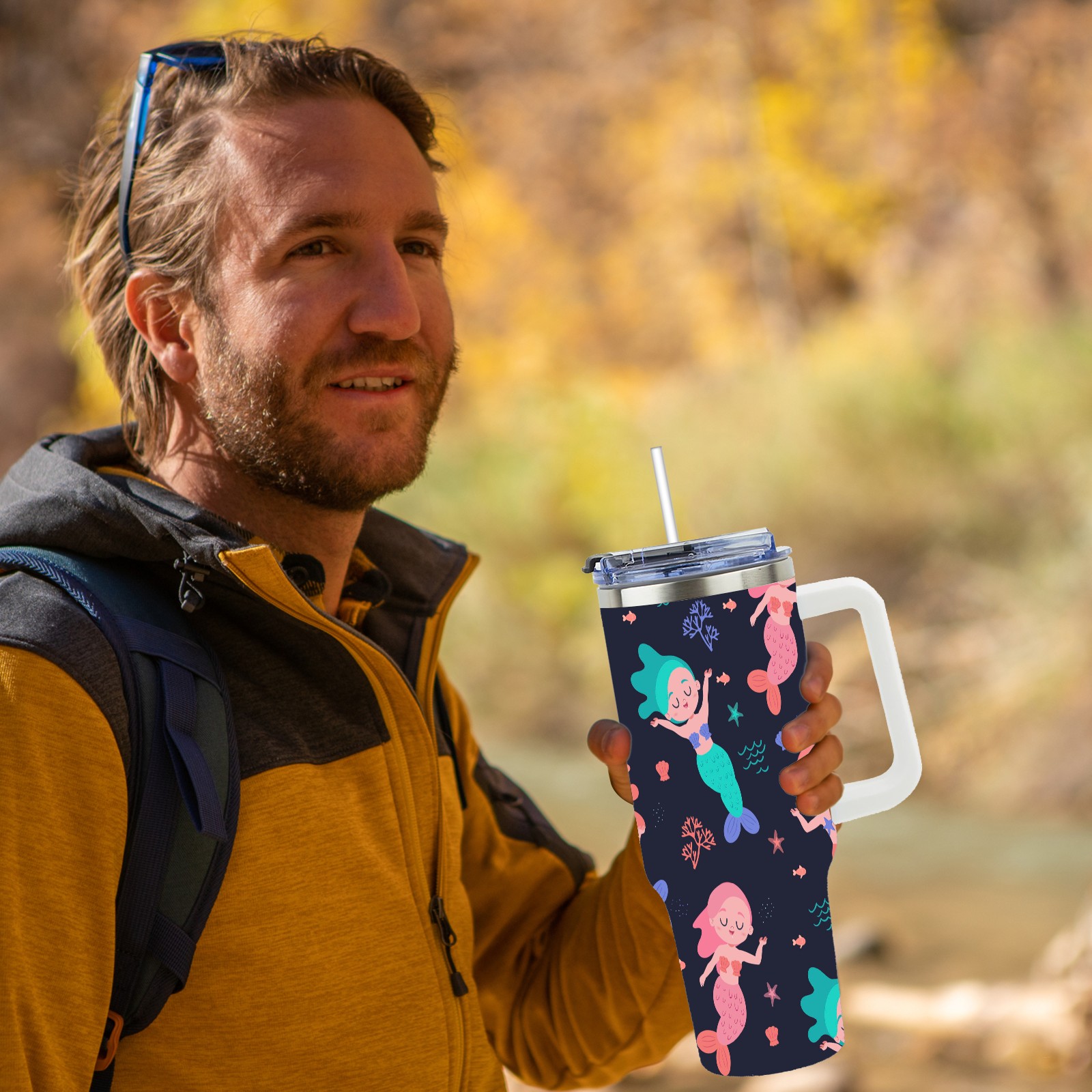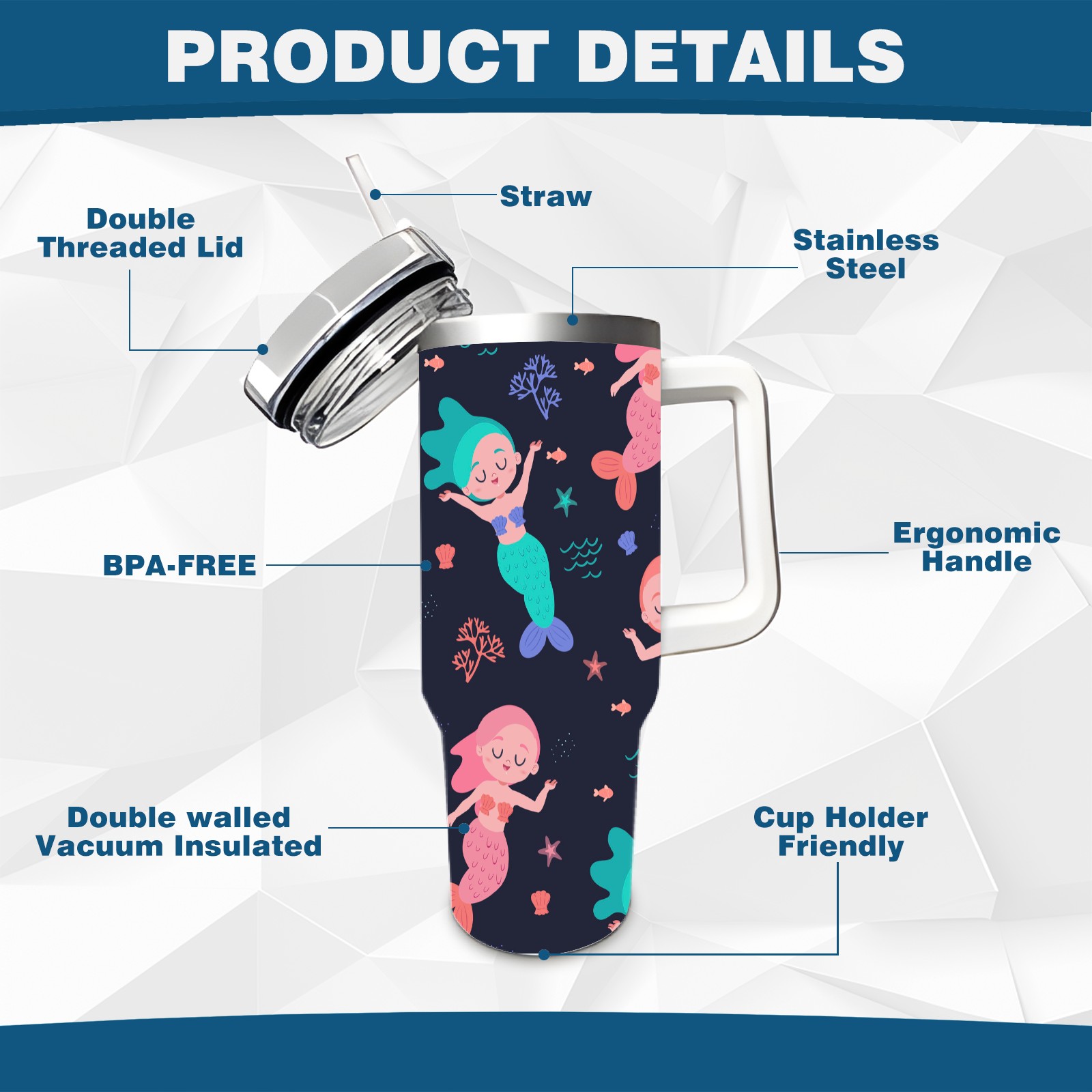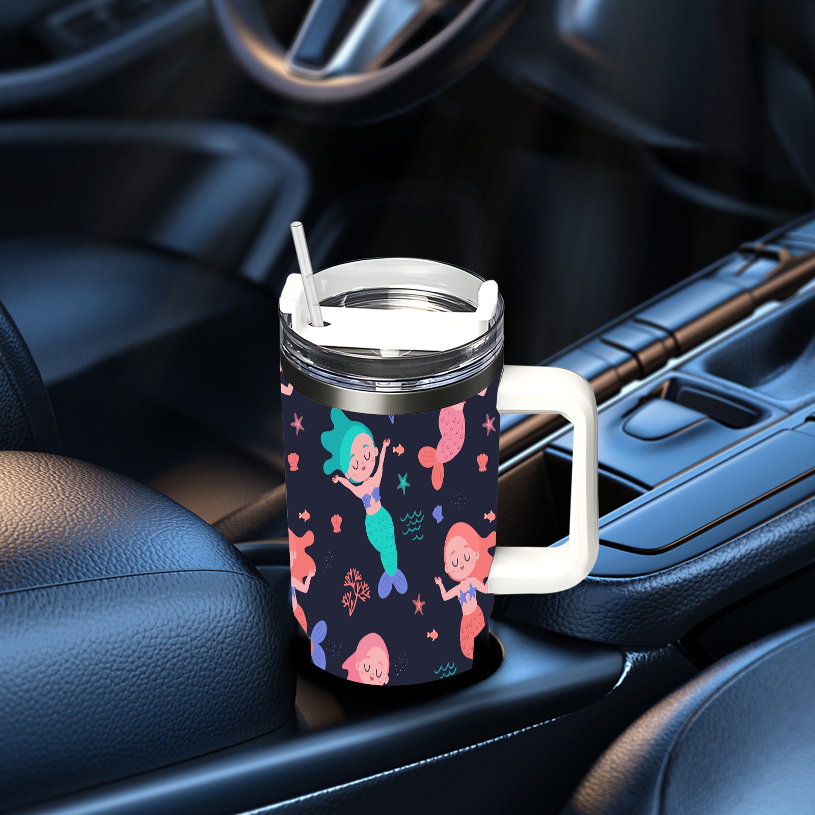 40oz Mermaid Girls thermos with lid and straw, leak-proof stainless steel, with handle, spill-proof bottle, convenient for travel(pink)