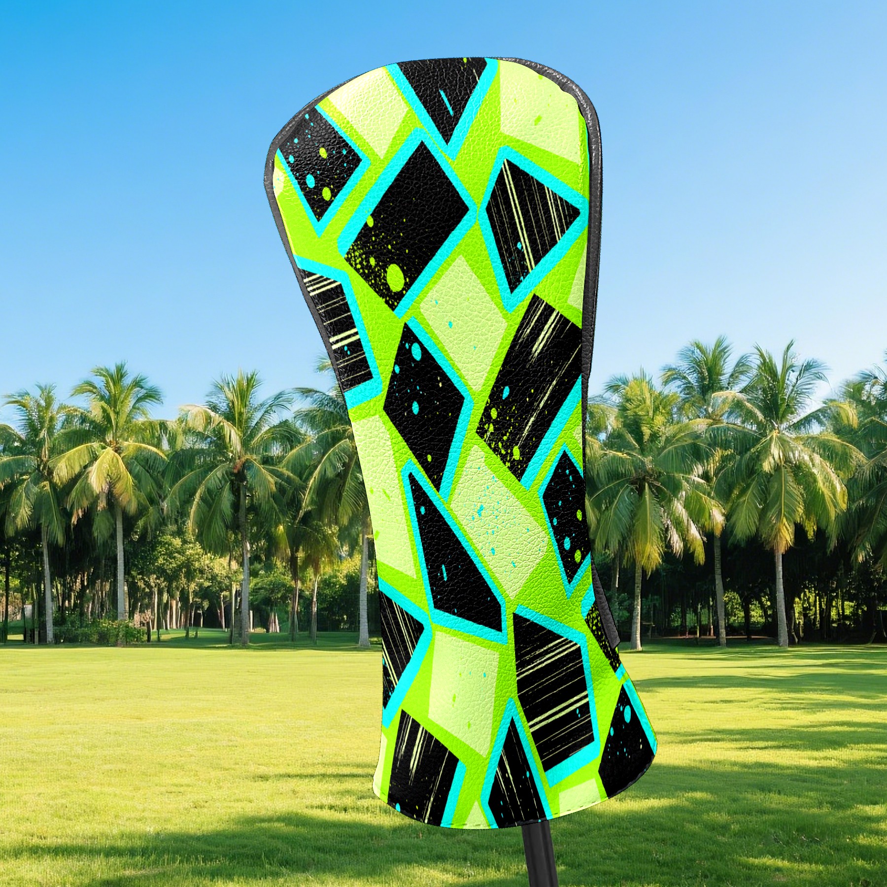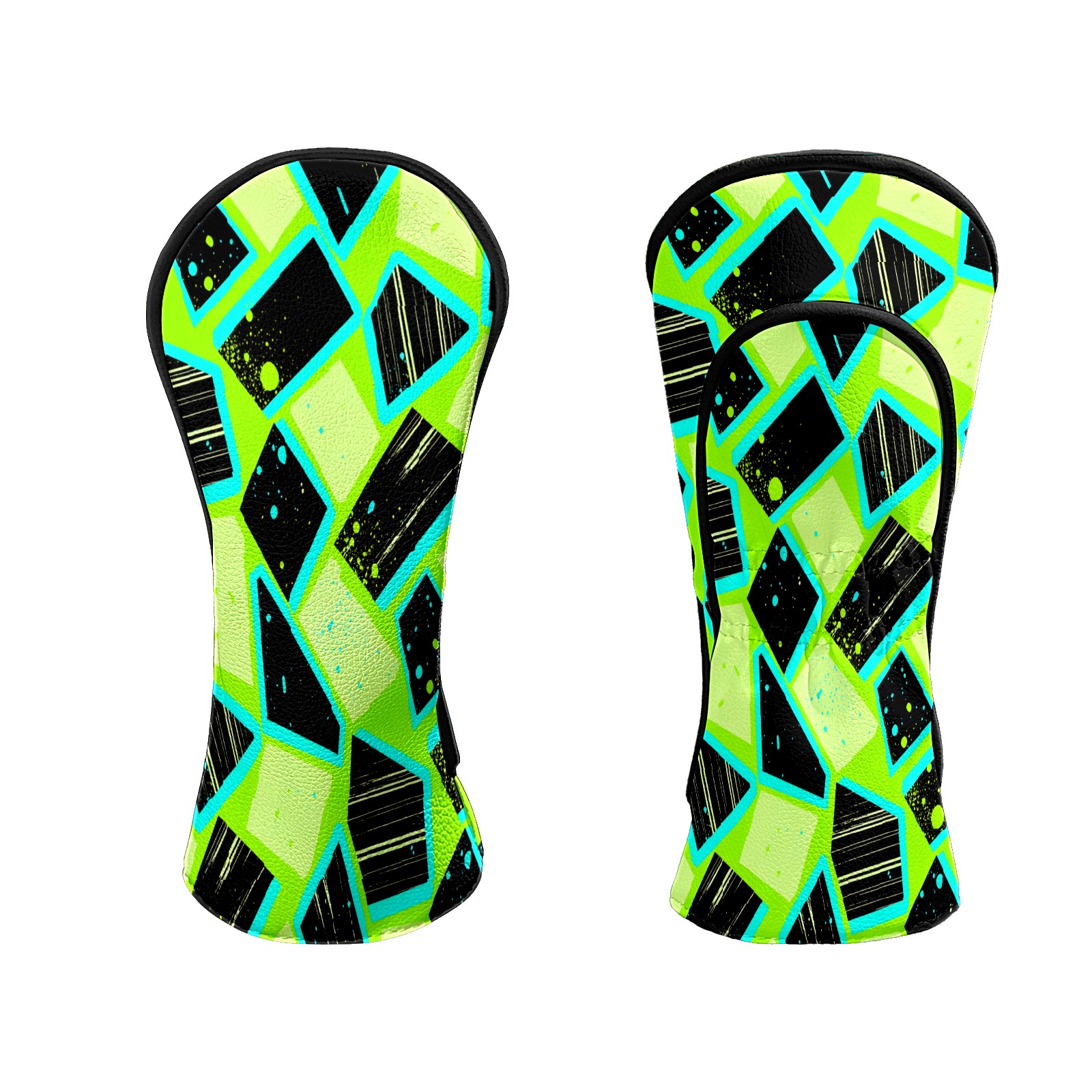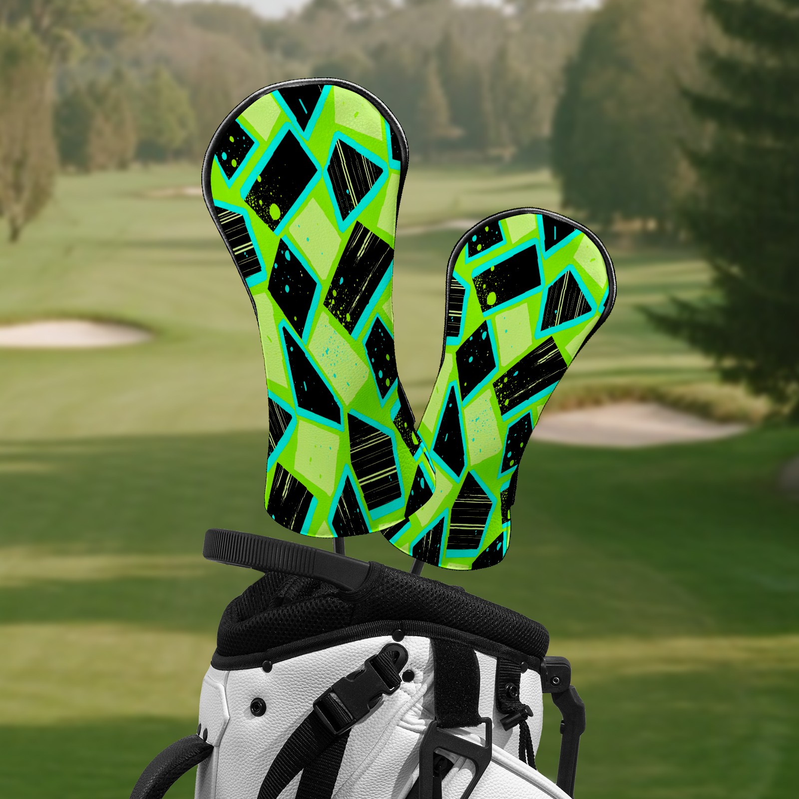 Counullo Golf Club Headcovers - Geometry Green Premium PU Leather with Plush Lining for Driver & Fairway Woods, No-Slip Fit for All Clubs, Novelty Gift for Men & Women