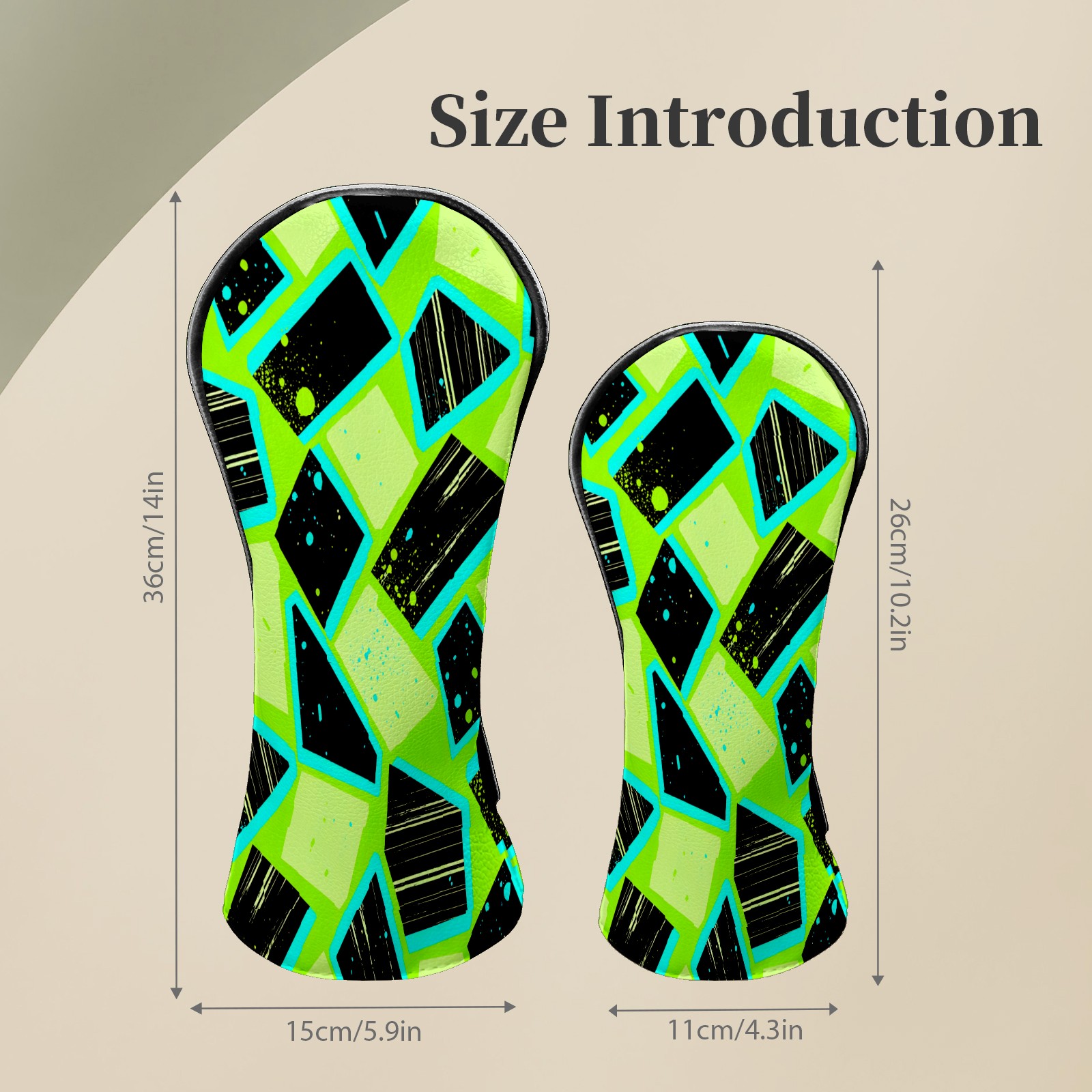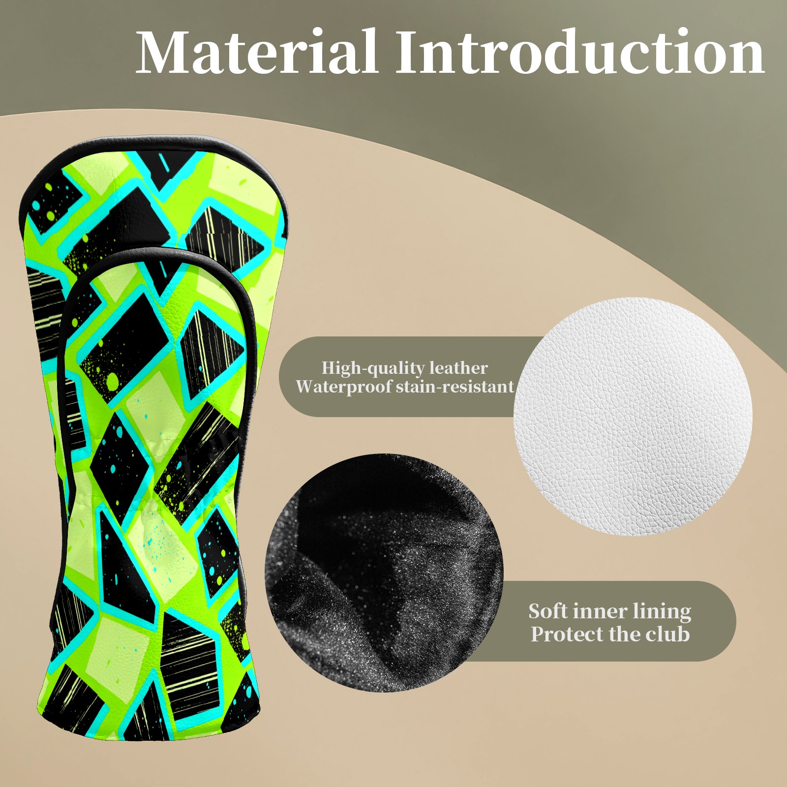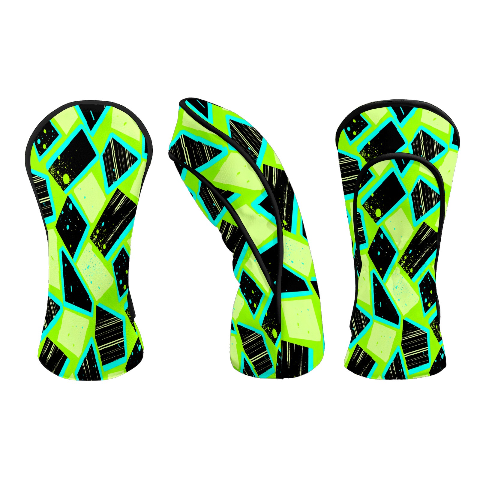 Counullo Golf Club Headcovers - Geometry Green Premium PU Leather with Plush Lining for Driver & Fairway Woods, No-Slip Fit for All Clubs, Novelty Gift for Men & Women