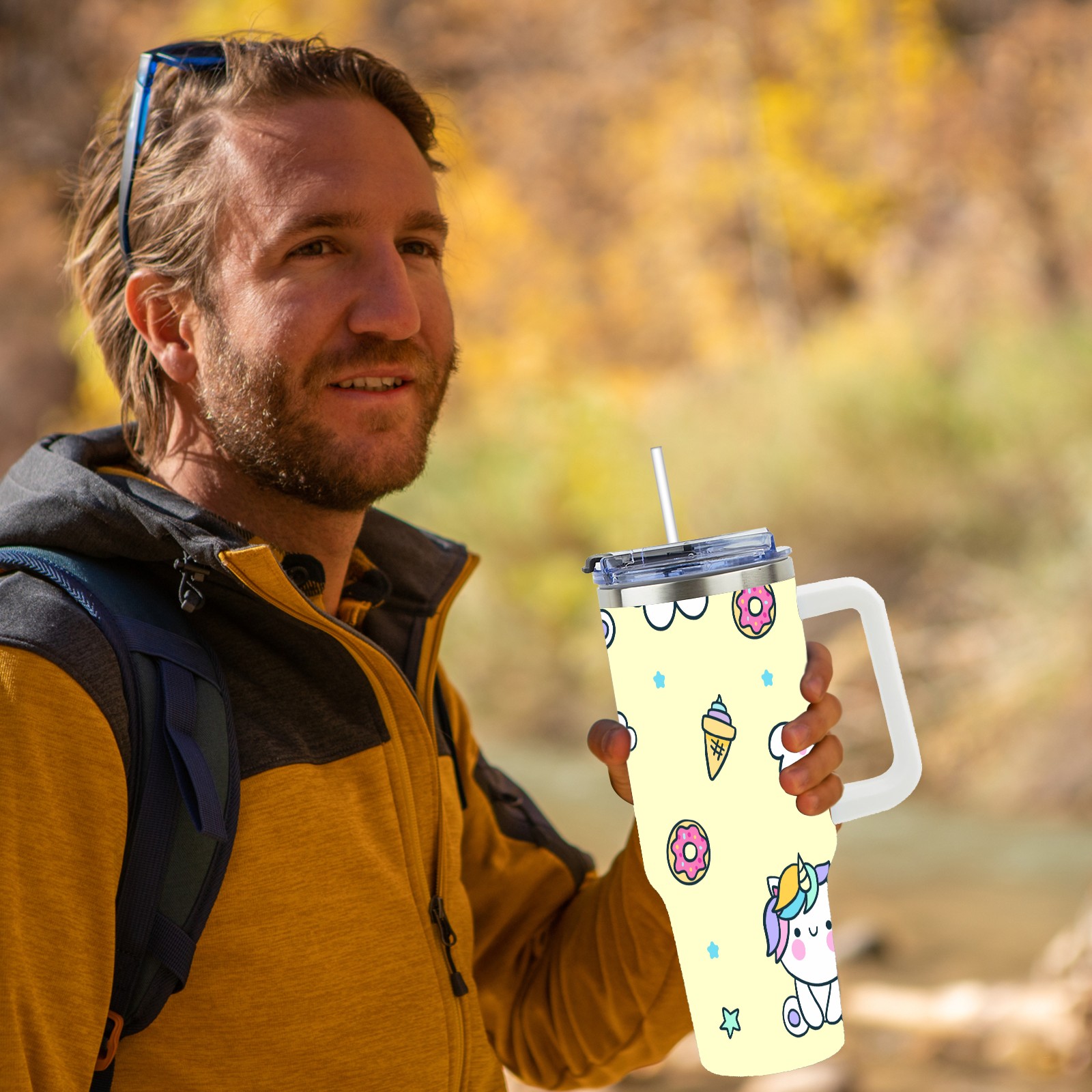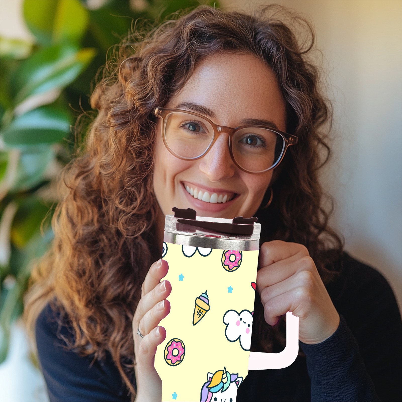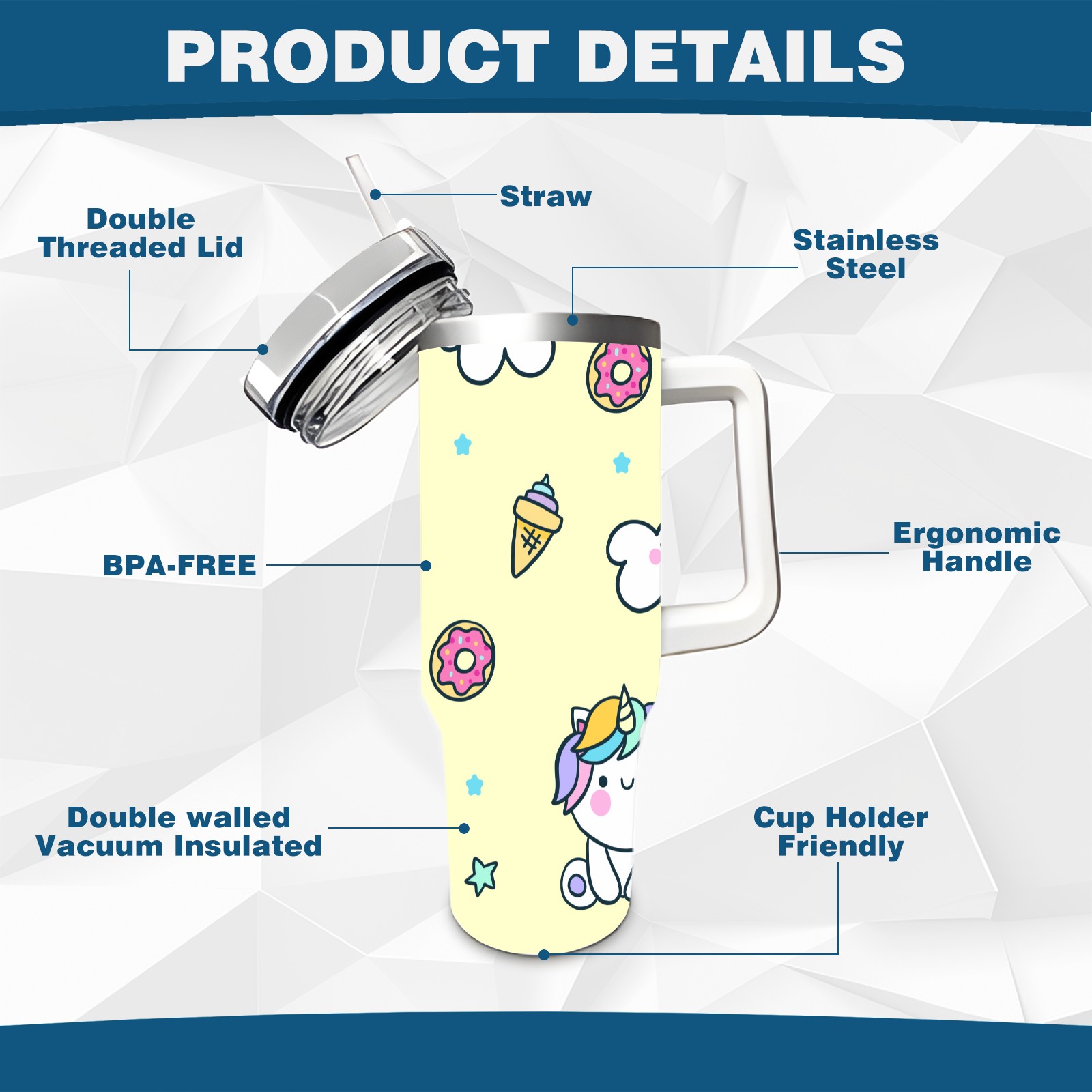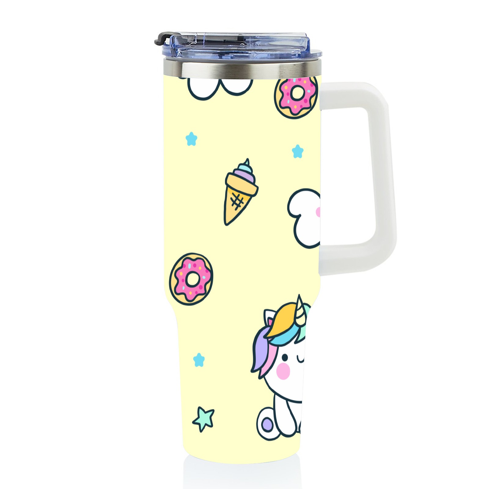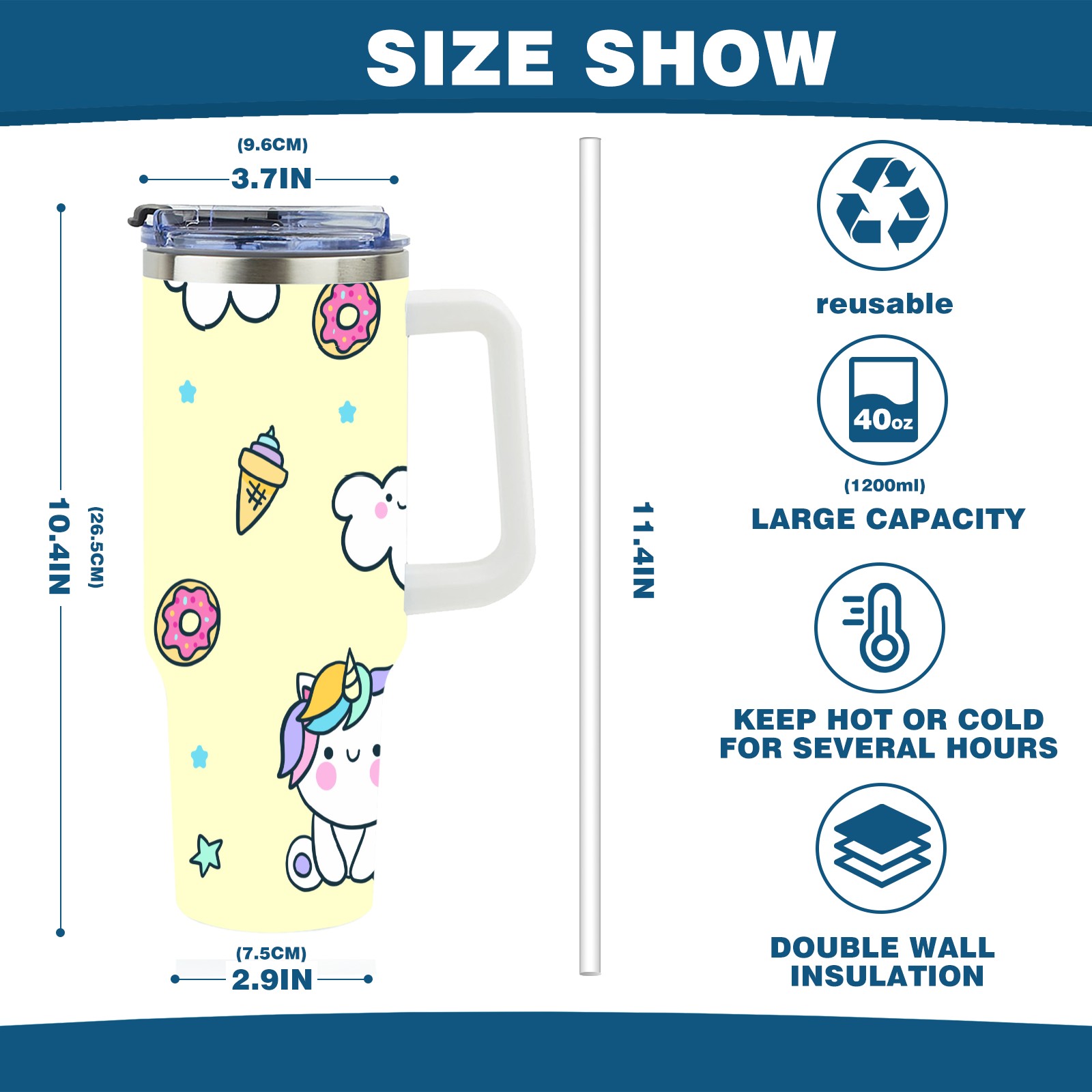 40oz Unicorn Baby thermos with lid and straw, leak-proof stainless steel, with handle, spill-proof bottle, convenient for travel(pink)
