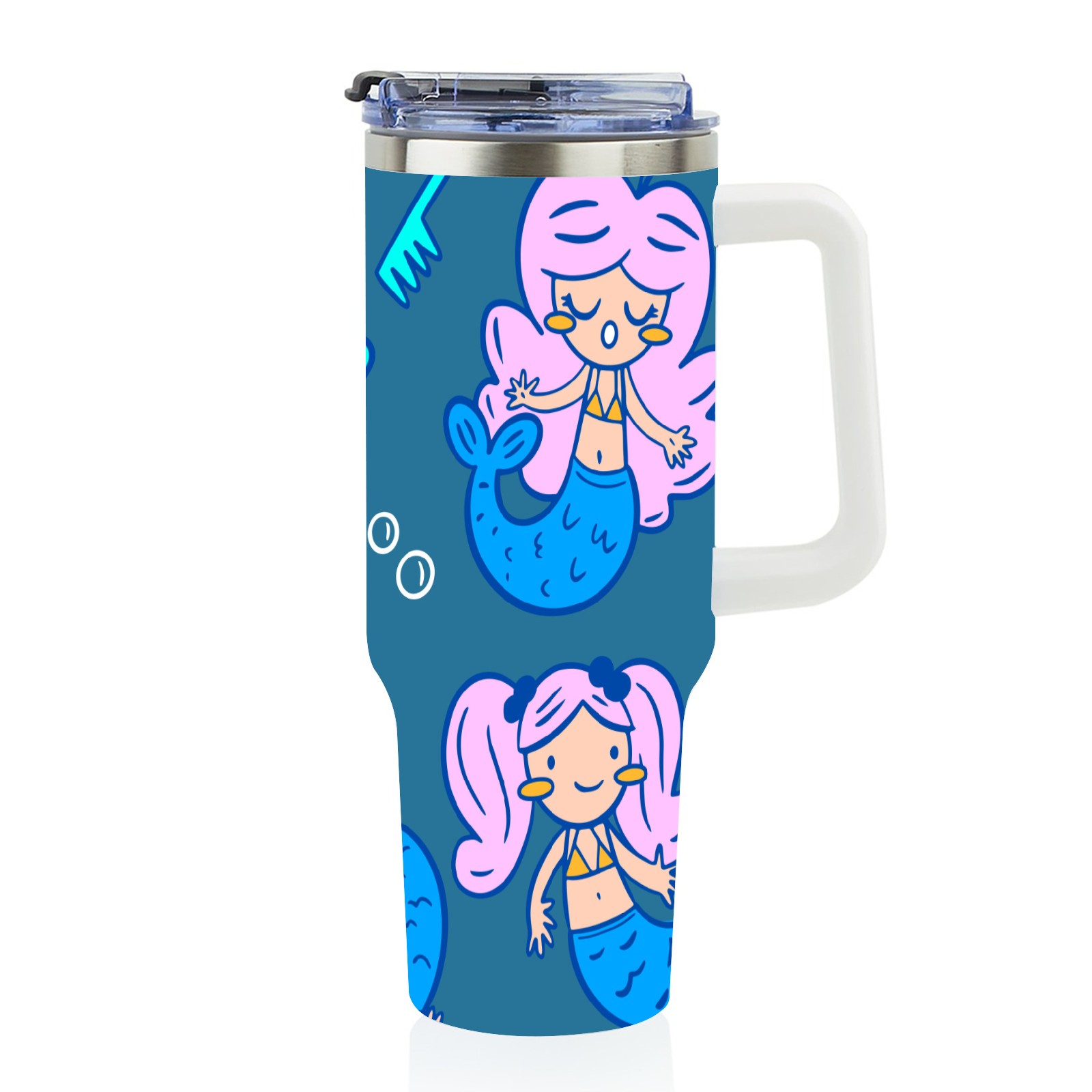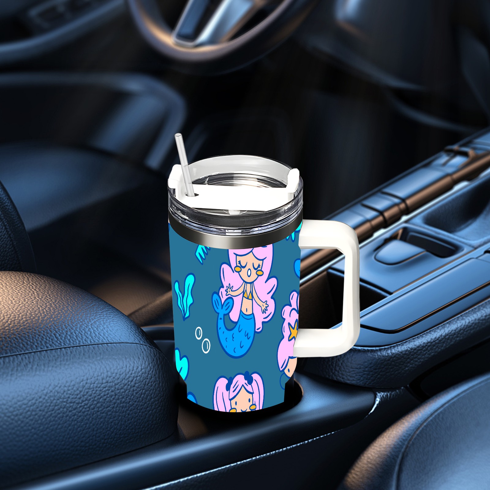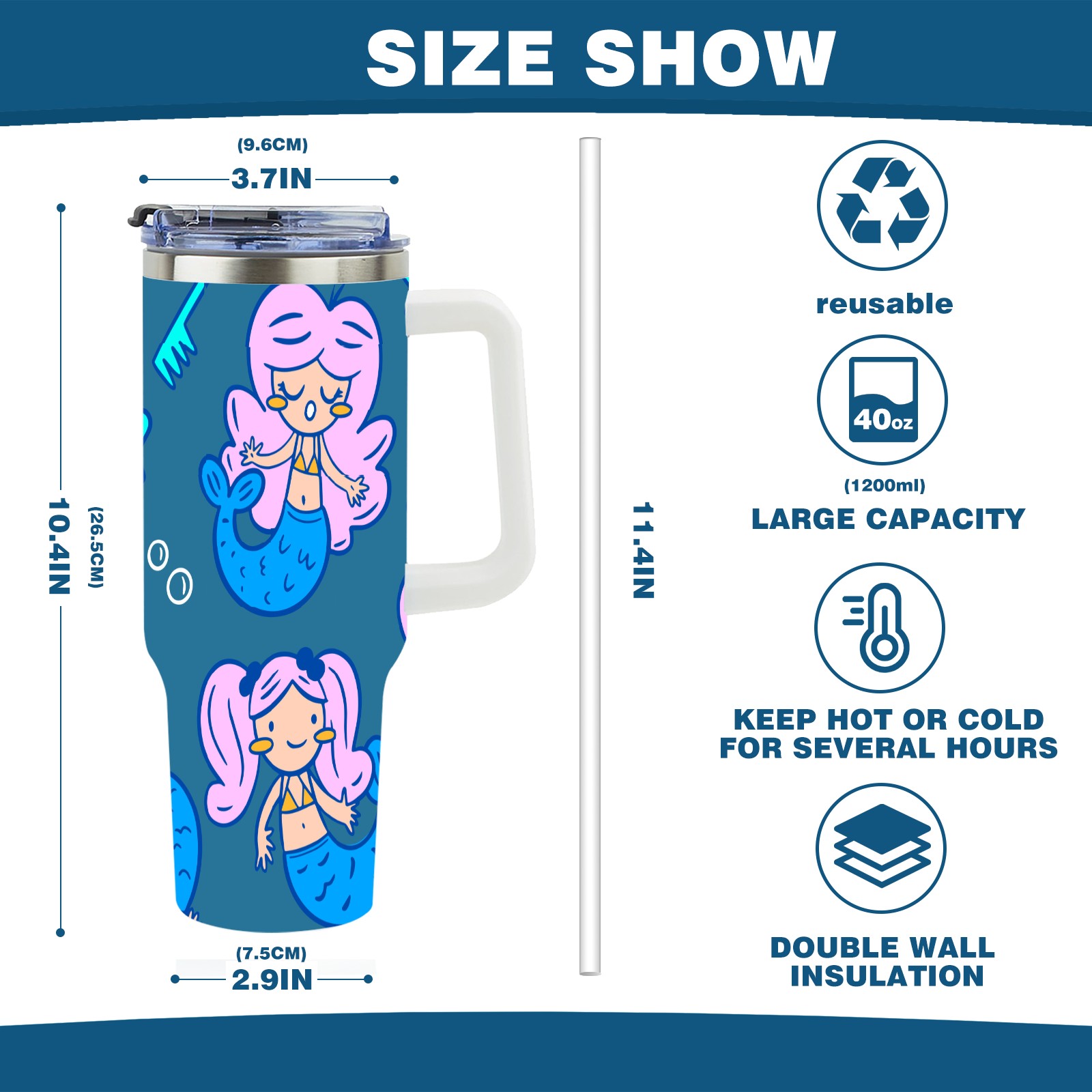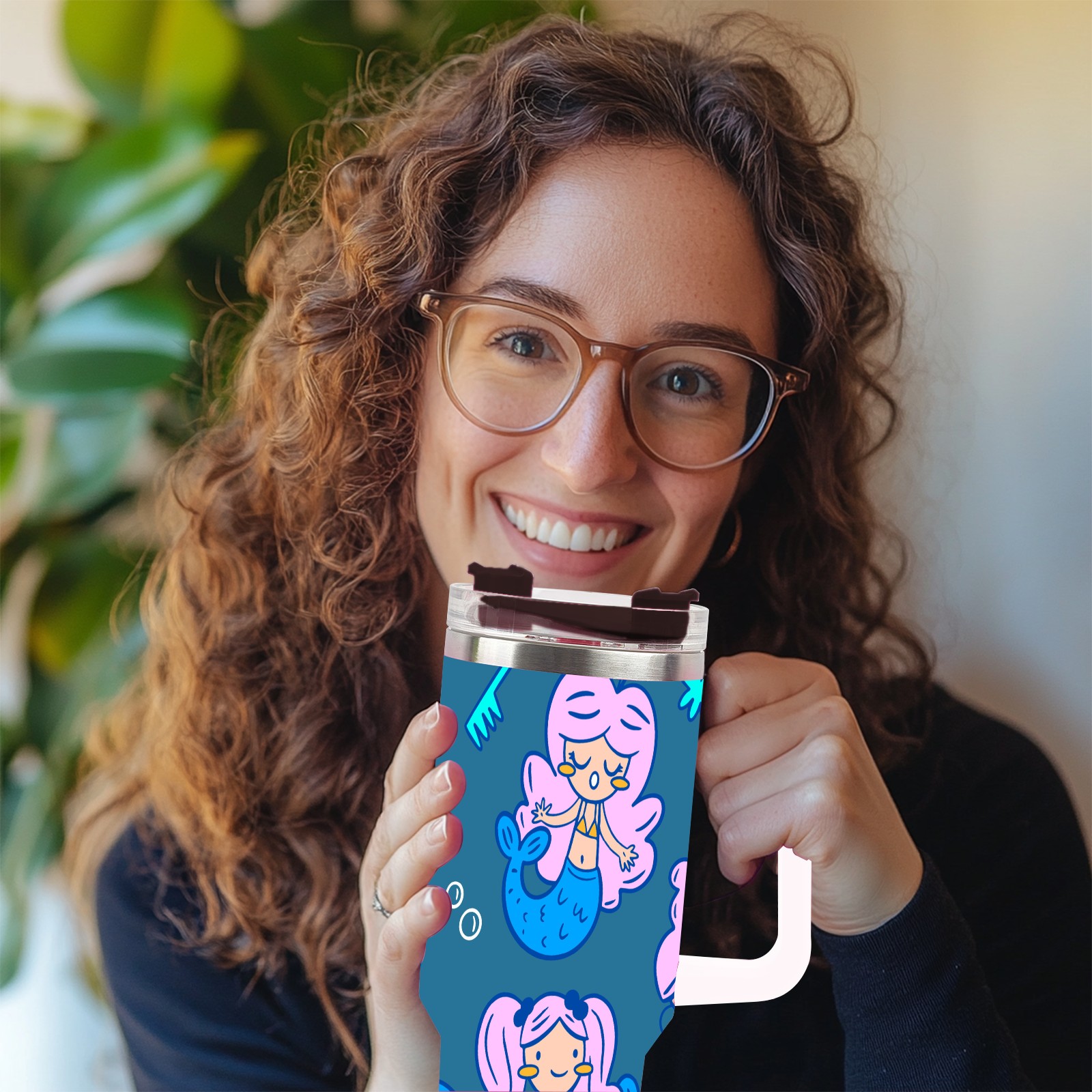 40oz Mermaid Seaweed thermos with lid and straw, leak-proof stainless steel, with handle, spill-proof bottle, convenient for travel(pink)