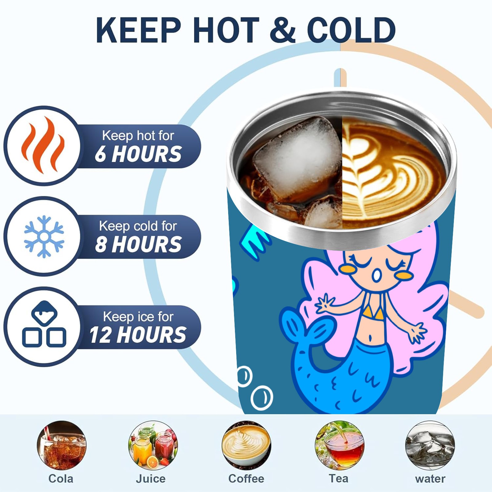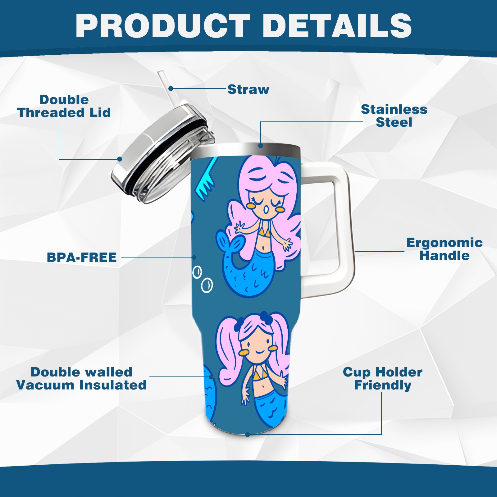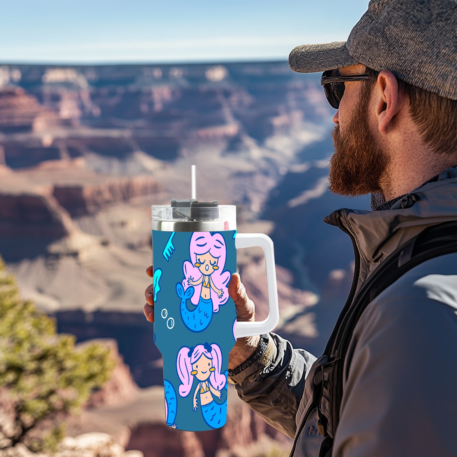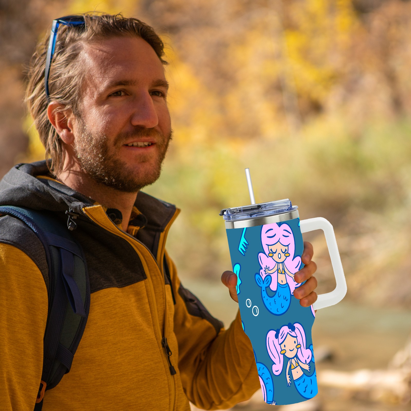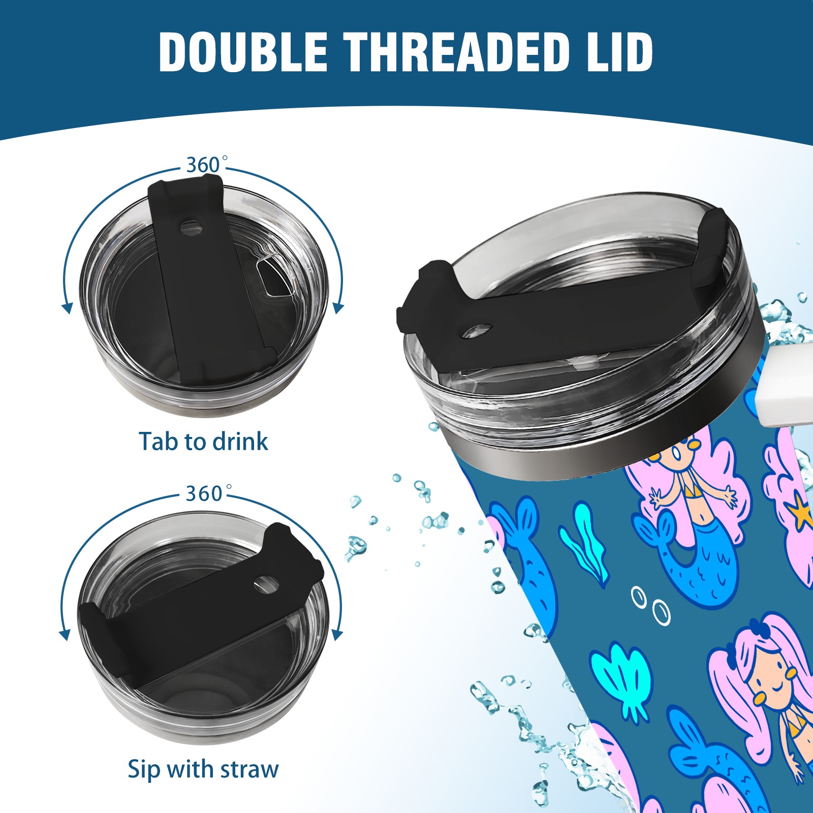 40oz Mermaid Seaweed thermos with lid and straw, leak-proof stainless steel, with handle, spill-proof bottle, convenient for travel(pink)