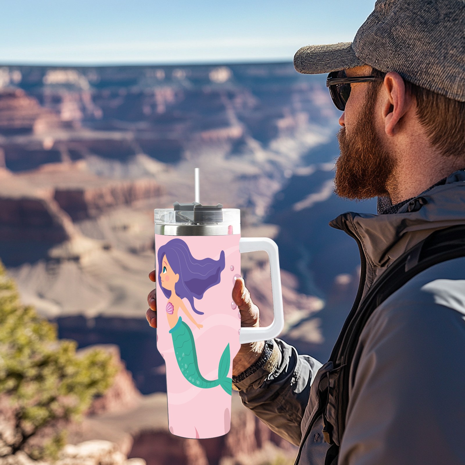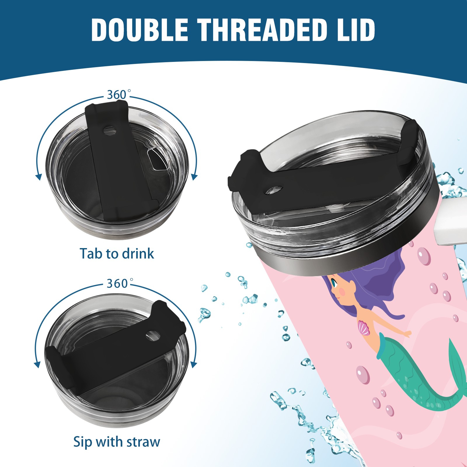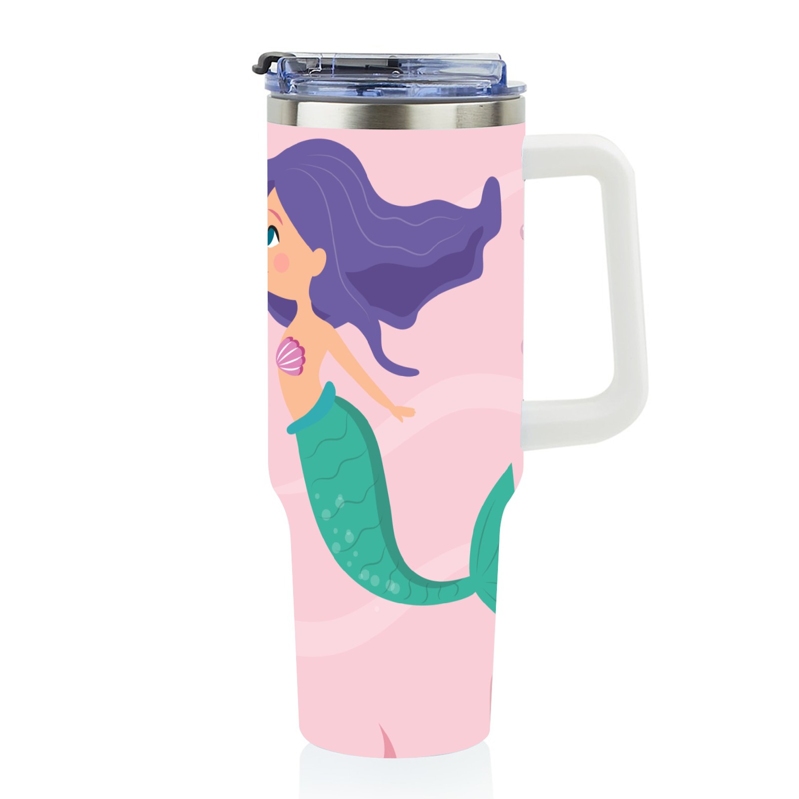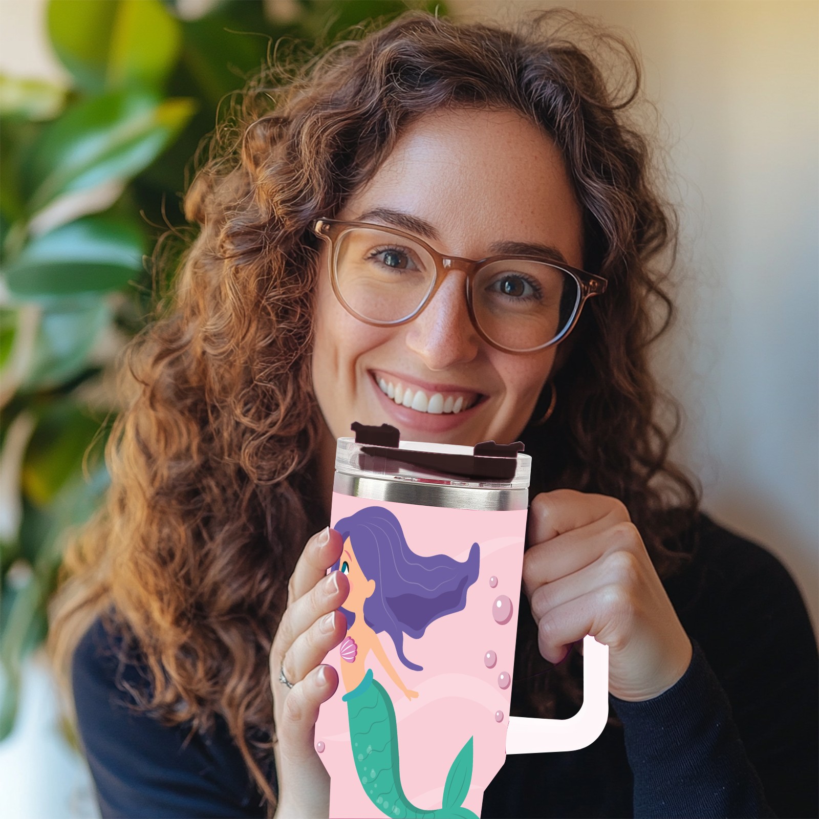 40oz Mermaid thermos with lid and straw, leak-proof stainless steel, with handle, spill-proof bottle, convenient for travel(pink)