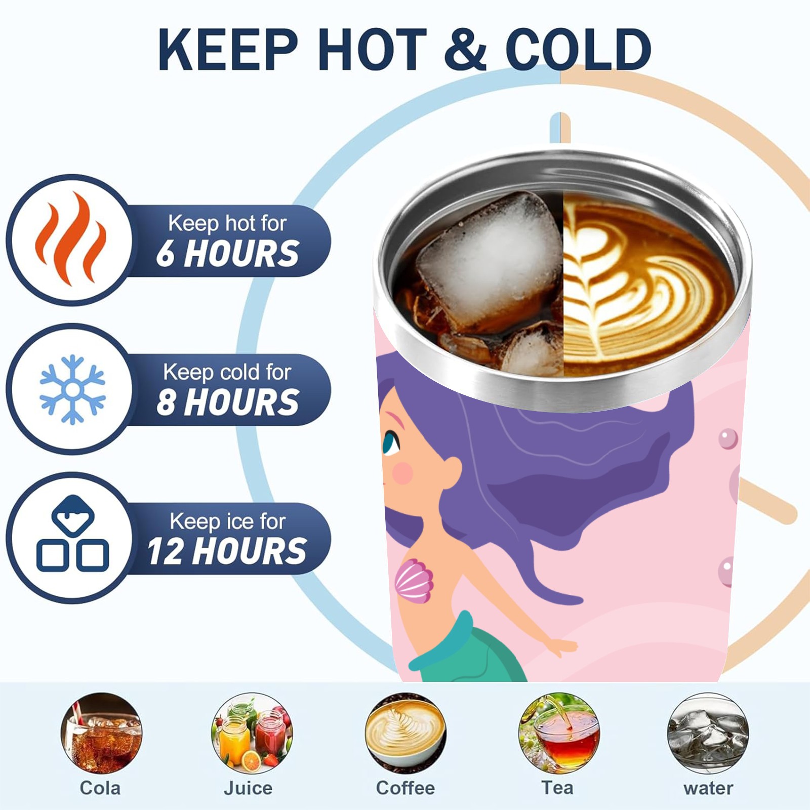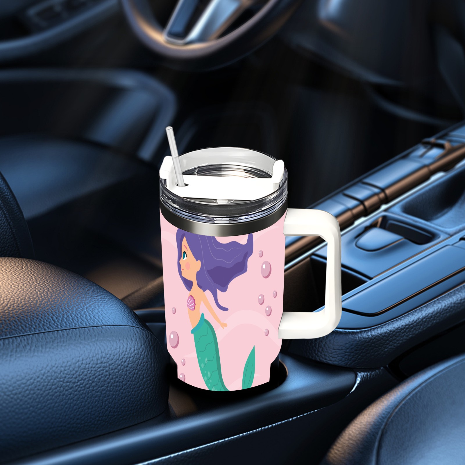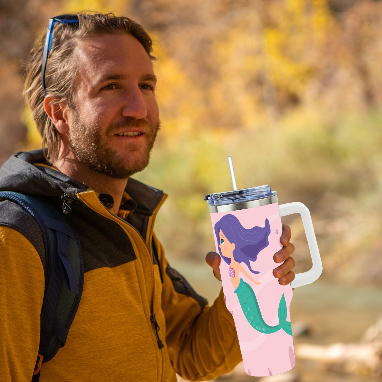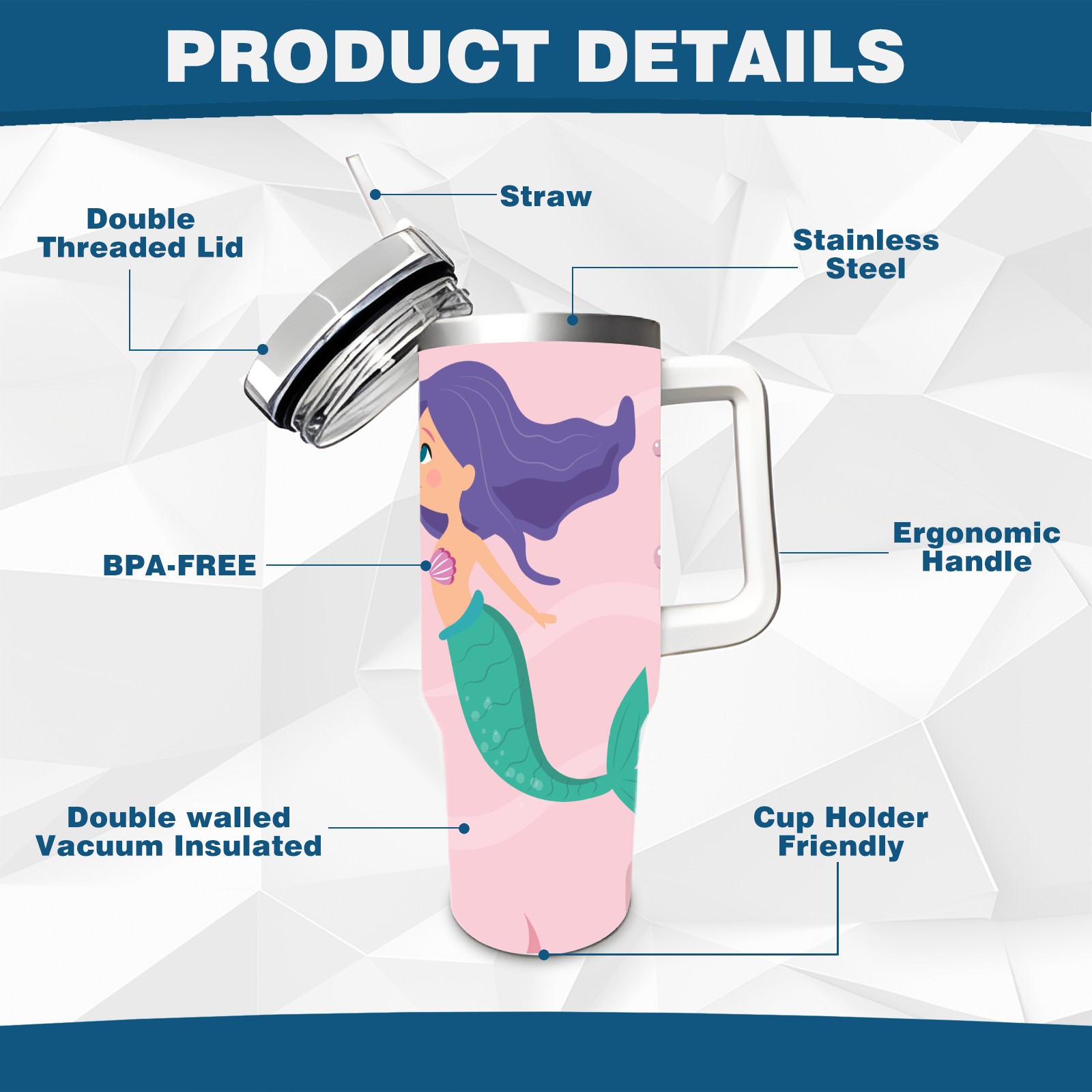 40oz Mermaid thermos with lid and straw, leak-proof stainless steel, with handle, spill-proof bottle, convenient for travel(pink)