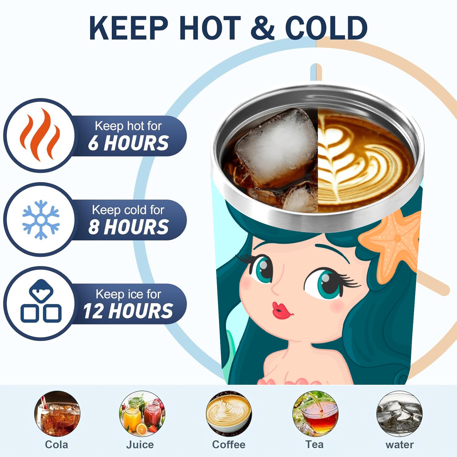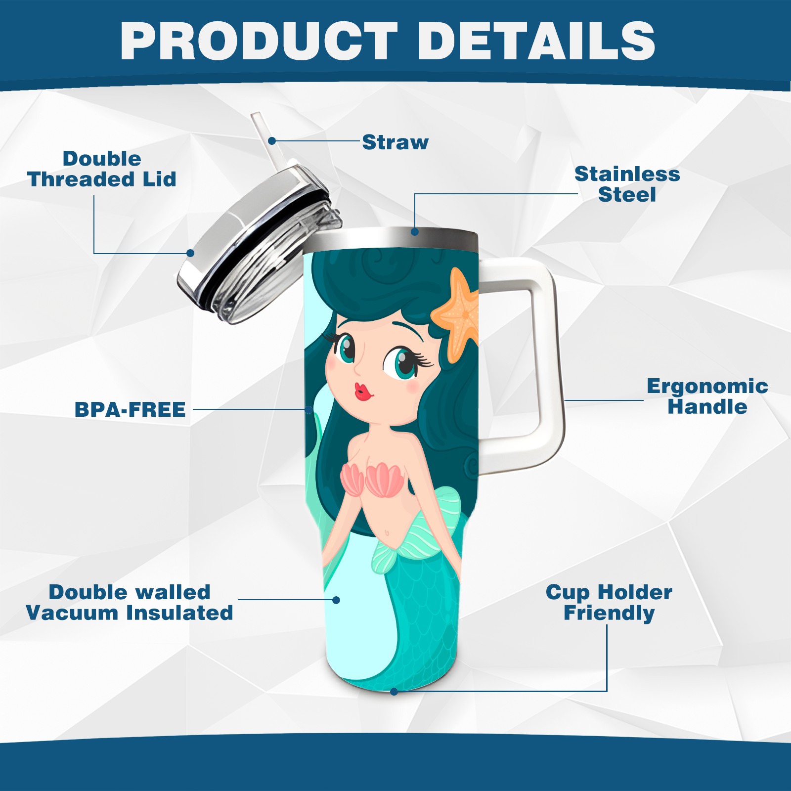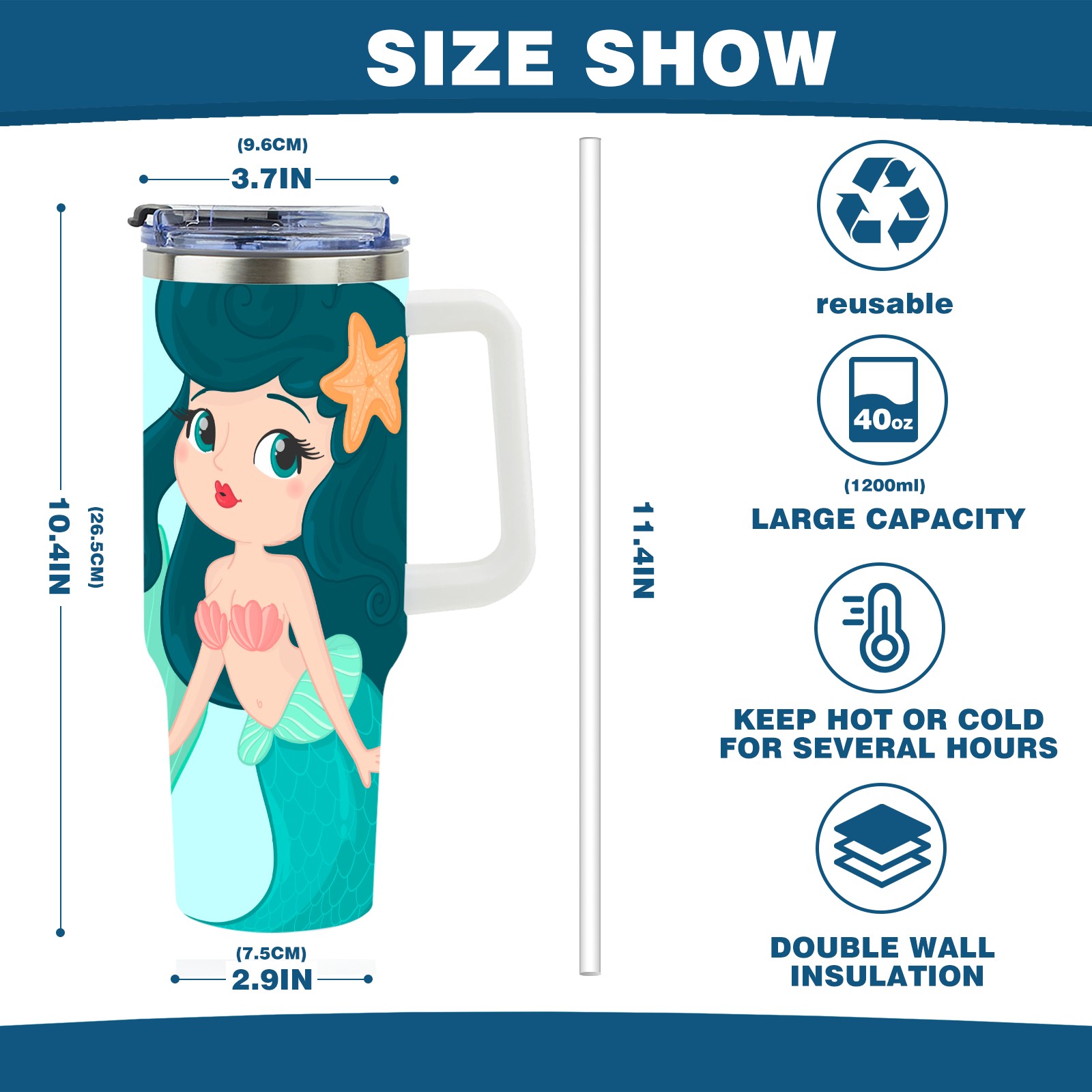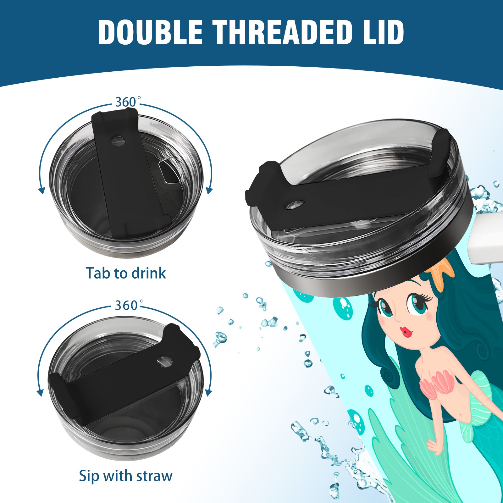 40oz Green Mermaid thermos with lid and straw, leak-proof stainless steel, with handle, spill-proof bottle, convenient for travel(pink)