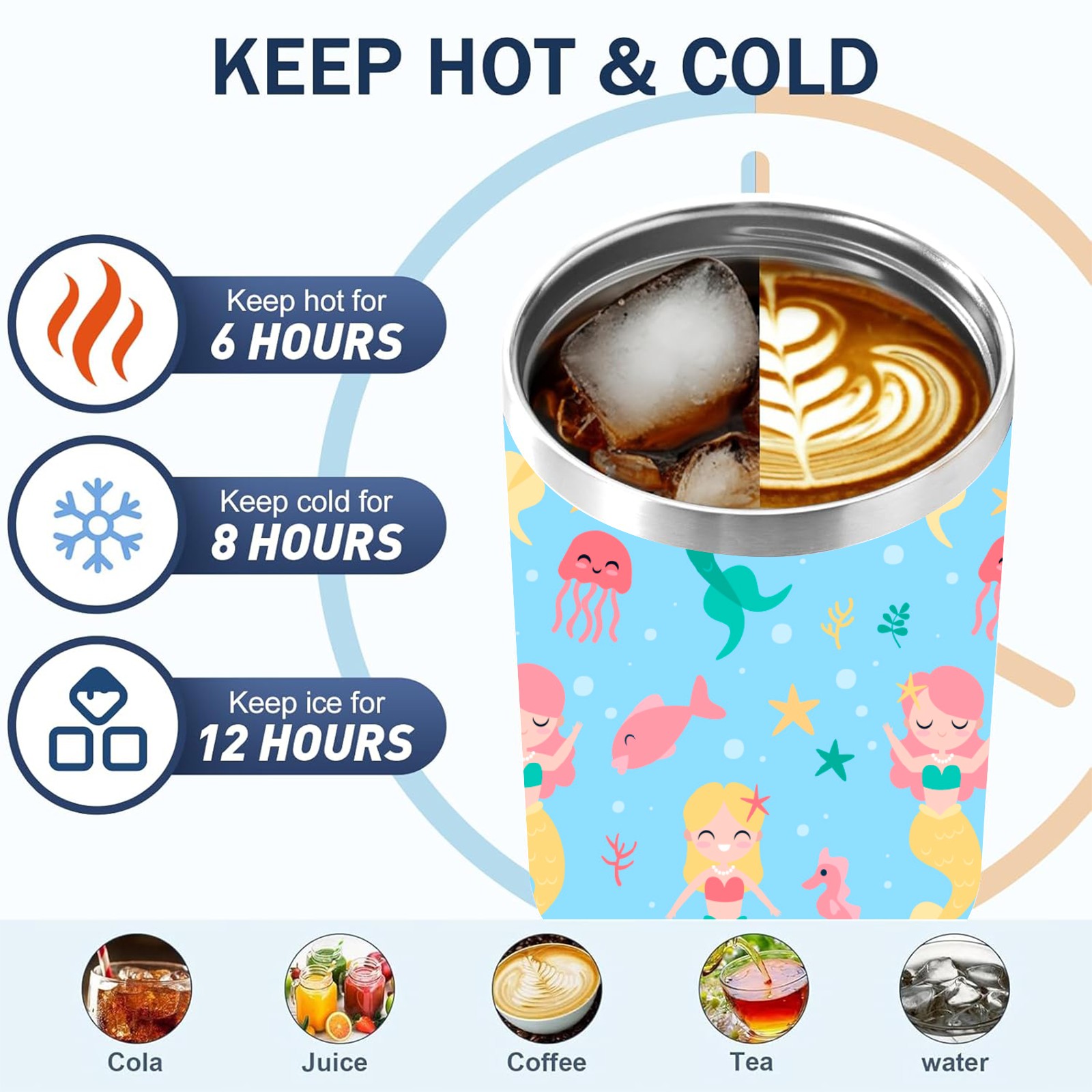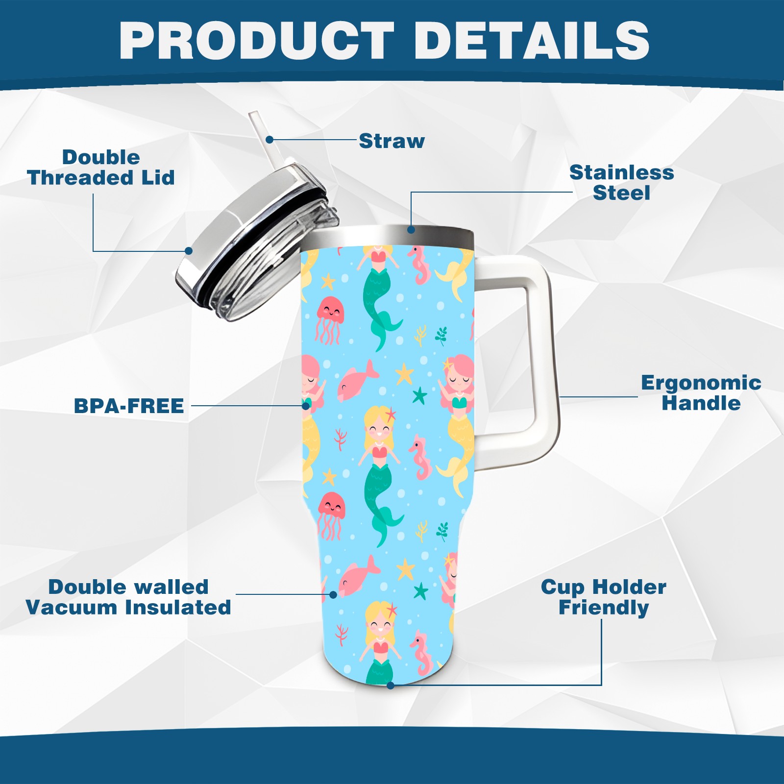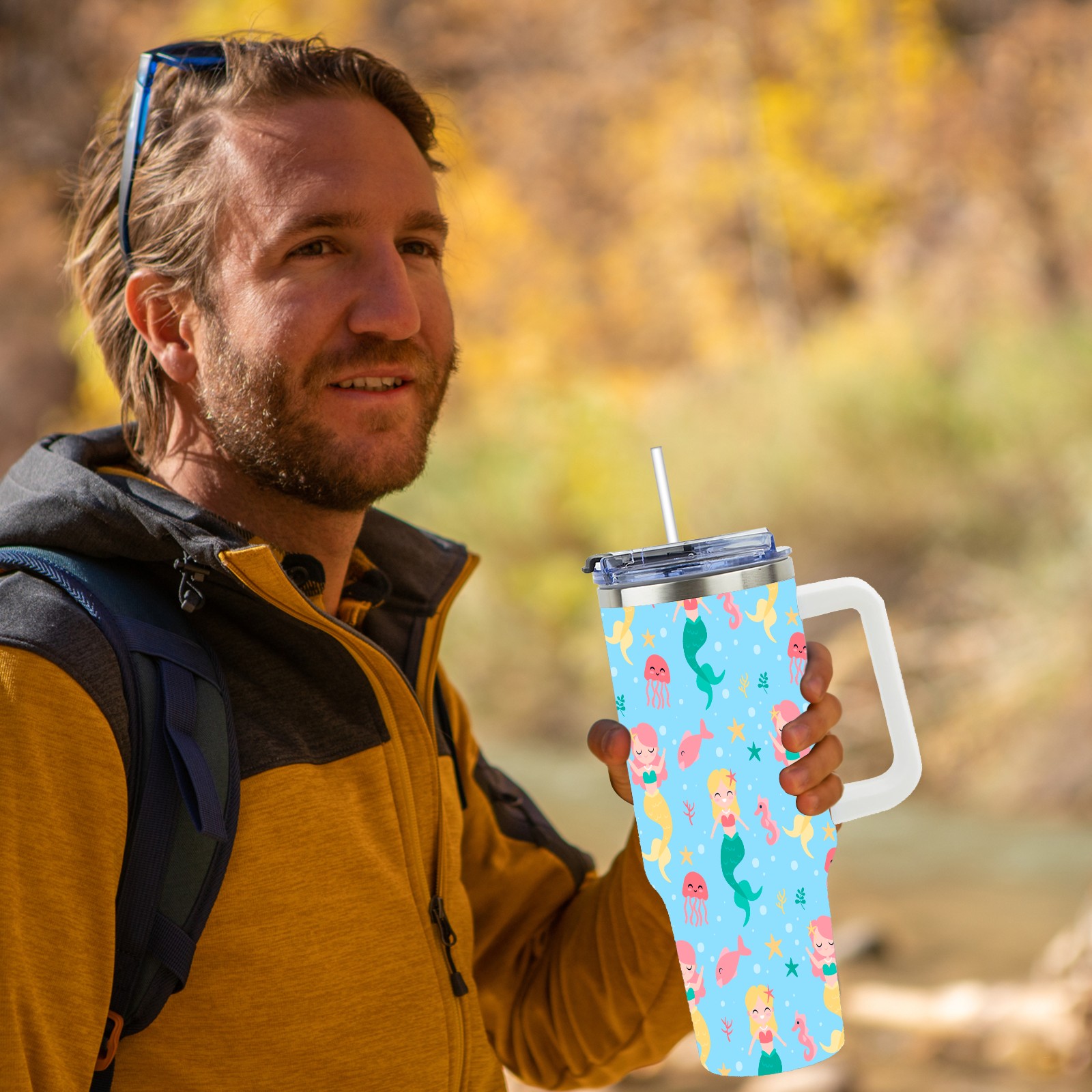 40oz Mermaid Fish thermos with lid and straw, leak-proof stainless steel, with handle, spill-proof bottle, convenient for travel(pink)