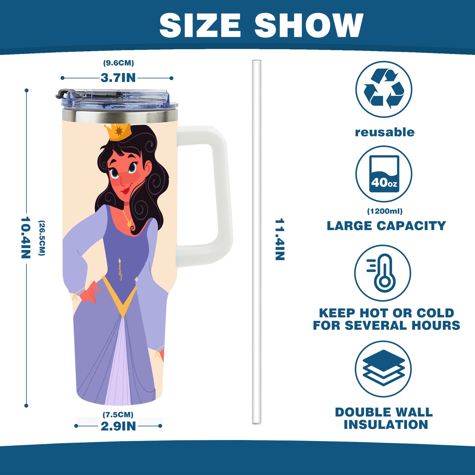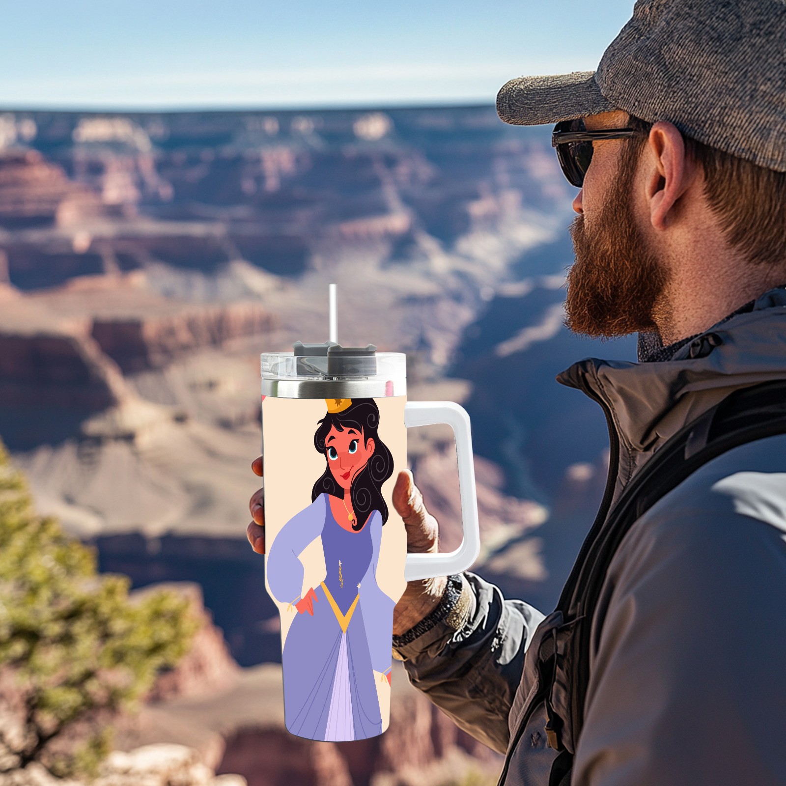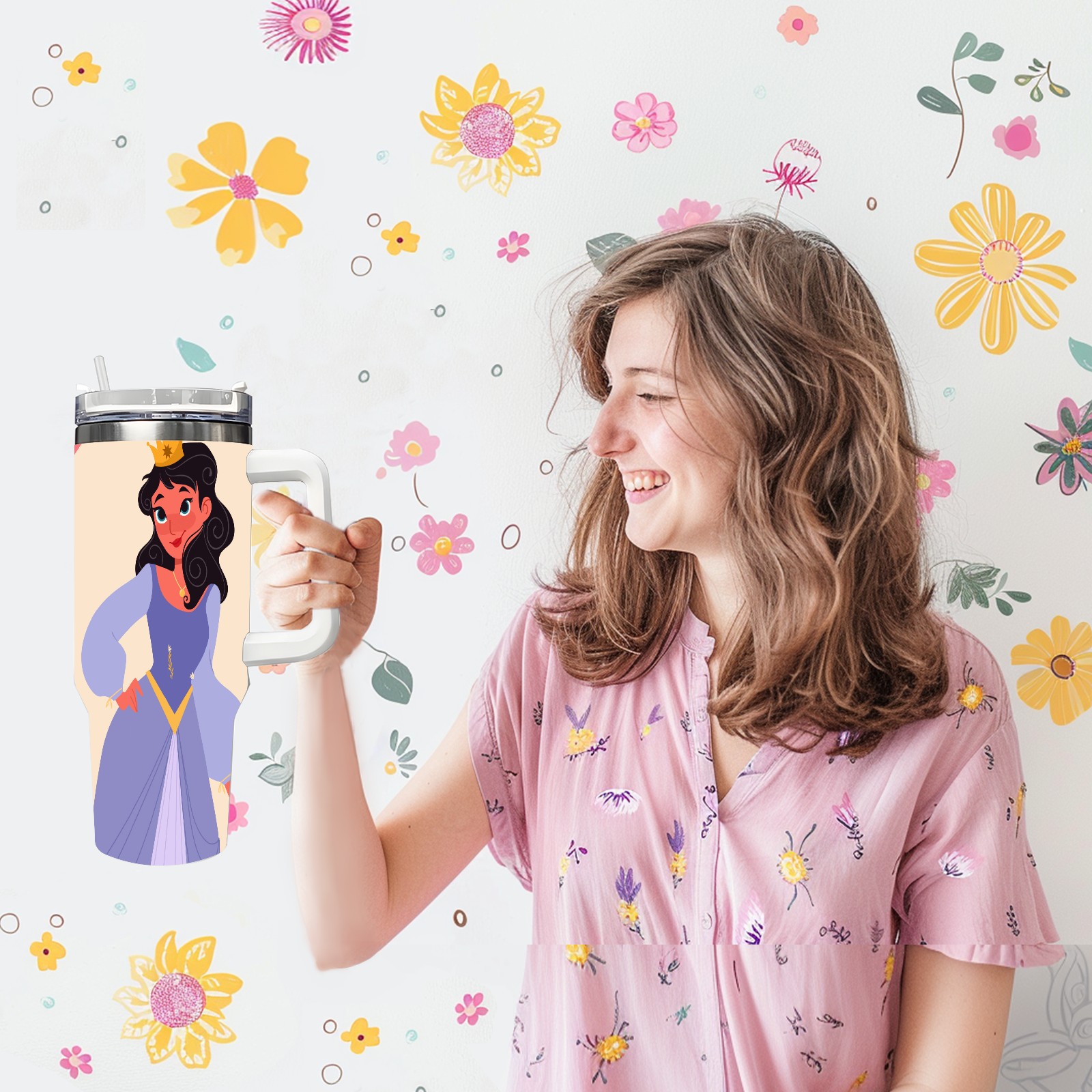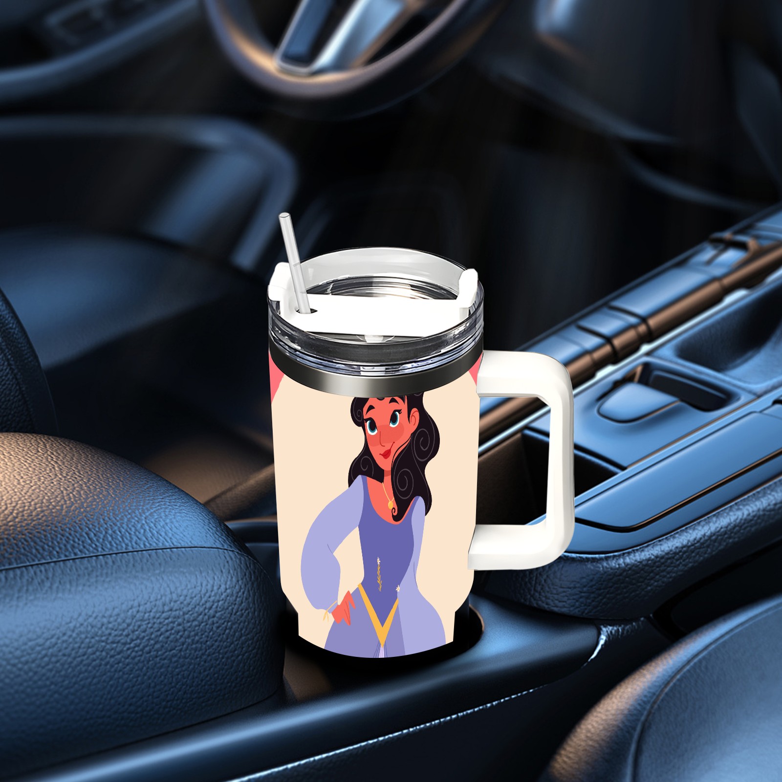 40oz Noble Princess thermos with lid and straw, leak-proof stainless steel, with handle, spill-proof bottle, convenient for travel(pink)
