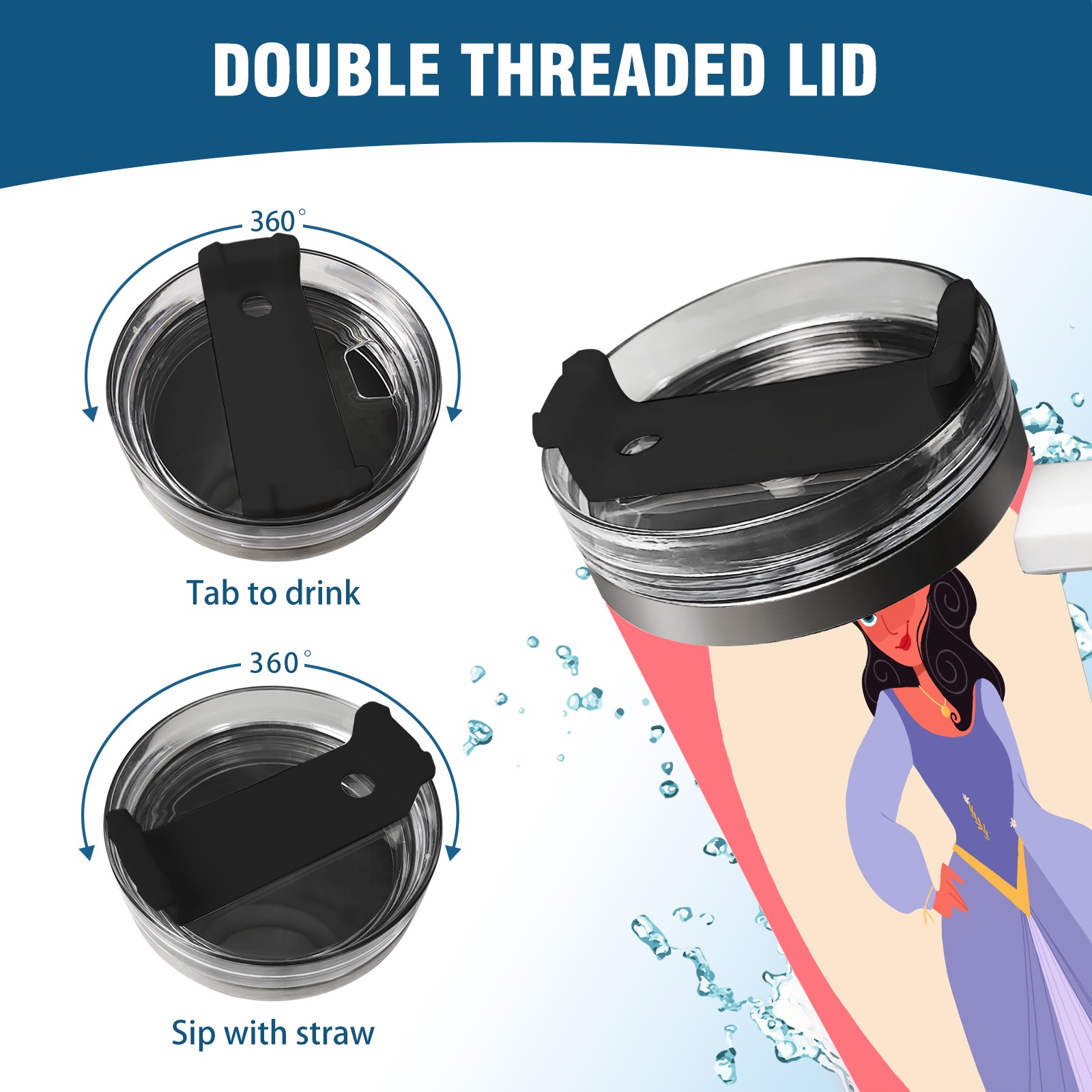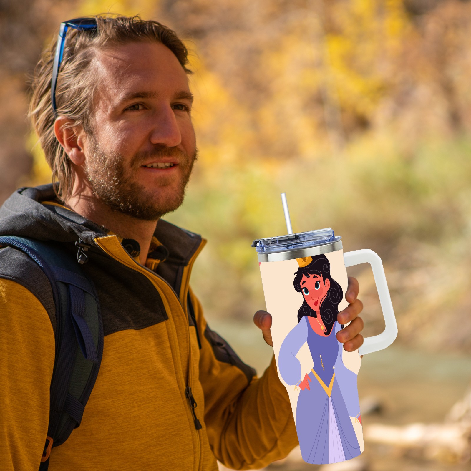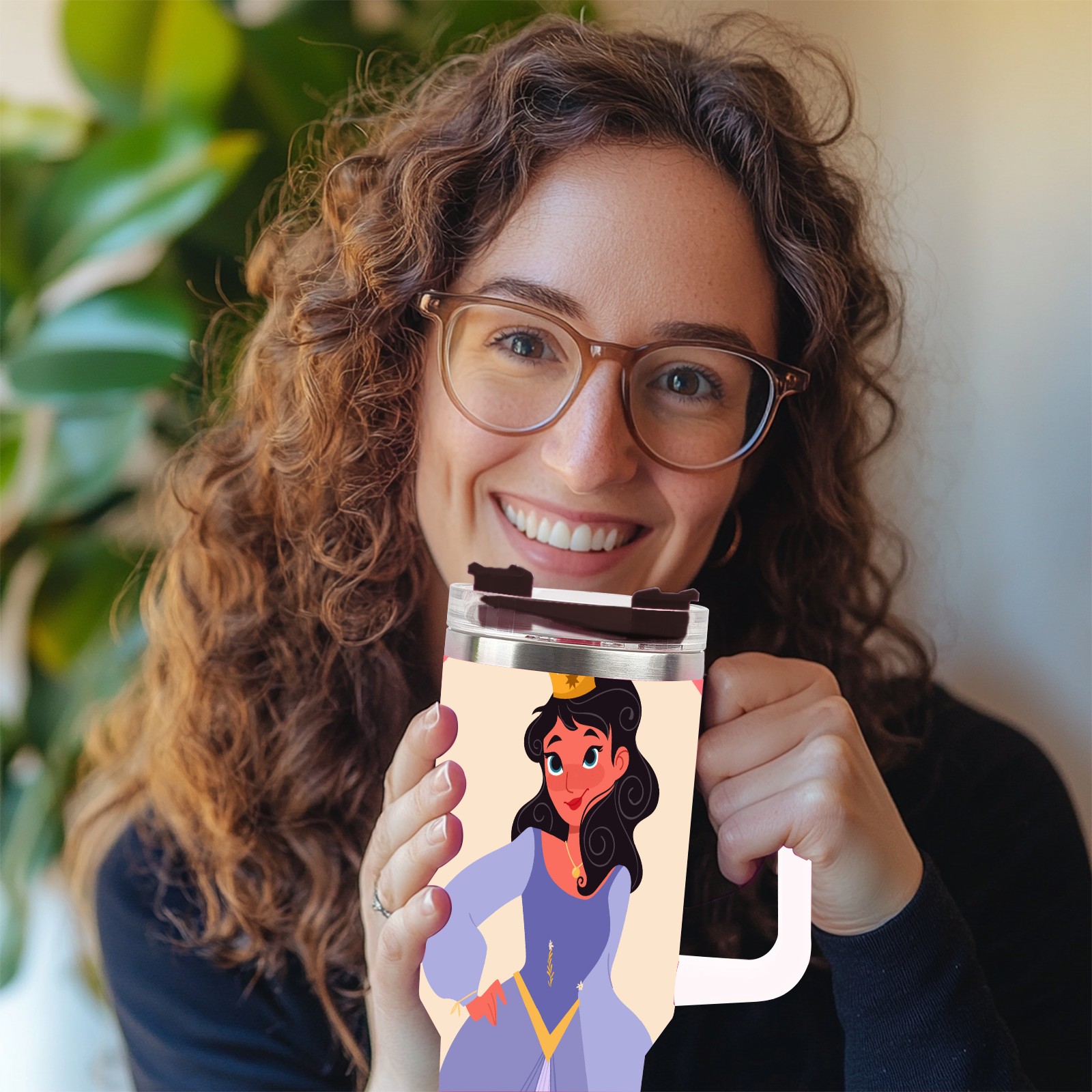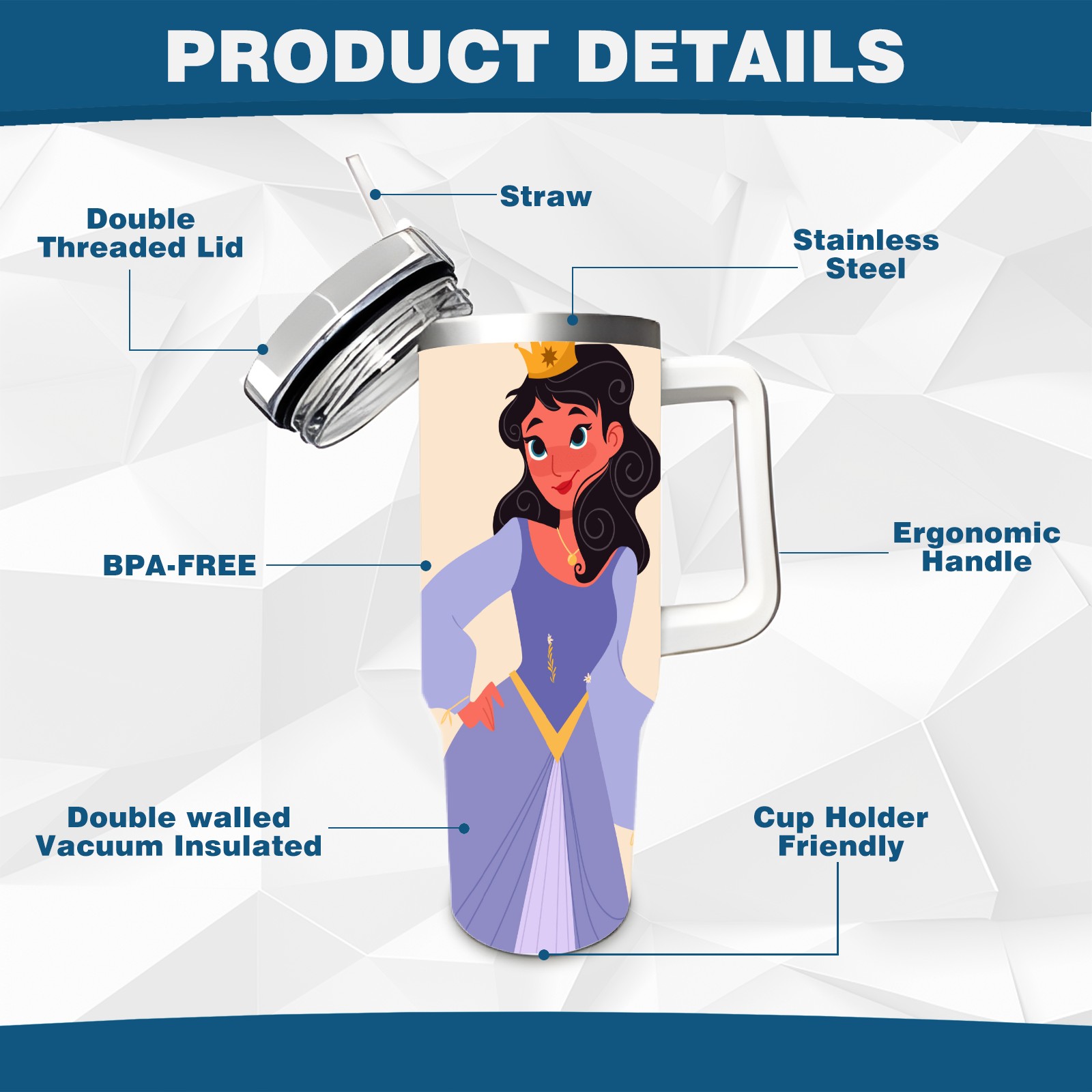 40oz Noble Princess thermos with lid and straw, leak-proof stainless steel, with handle, spill-proof bottle, convenient for travel(pink)
