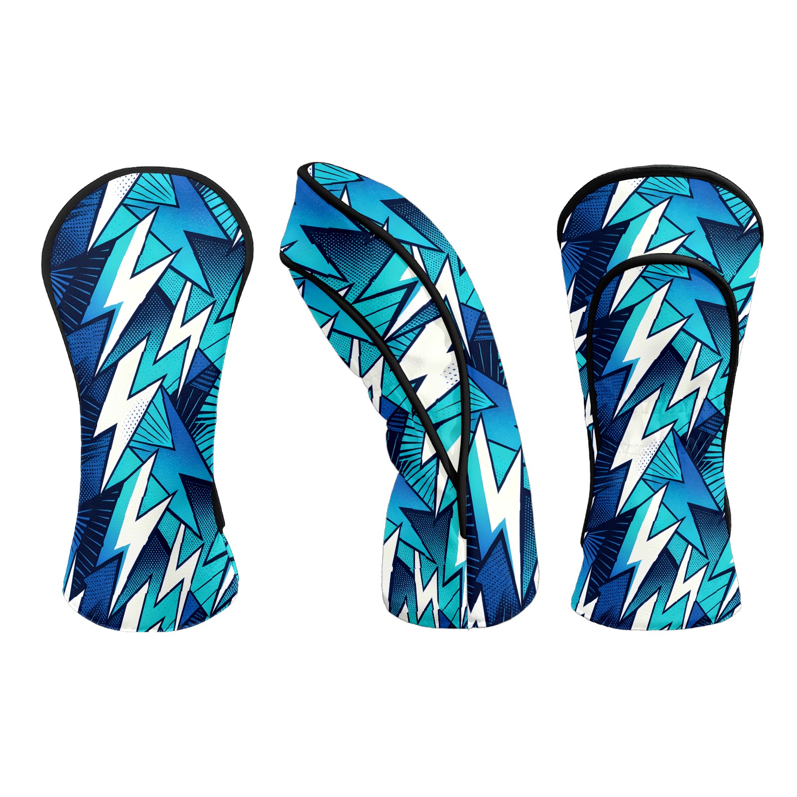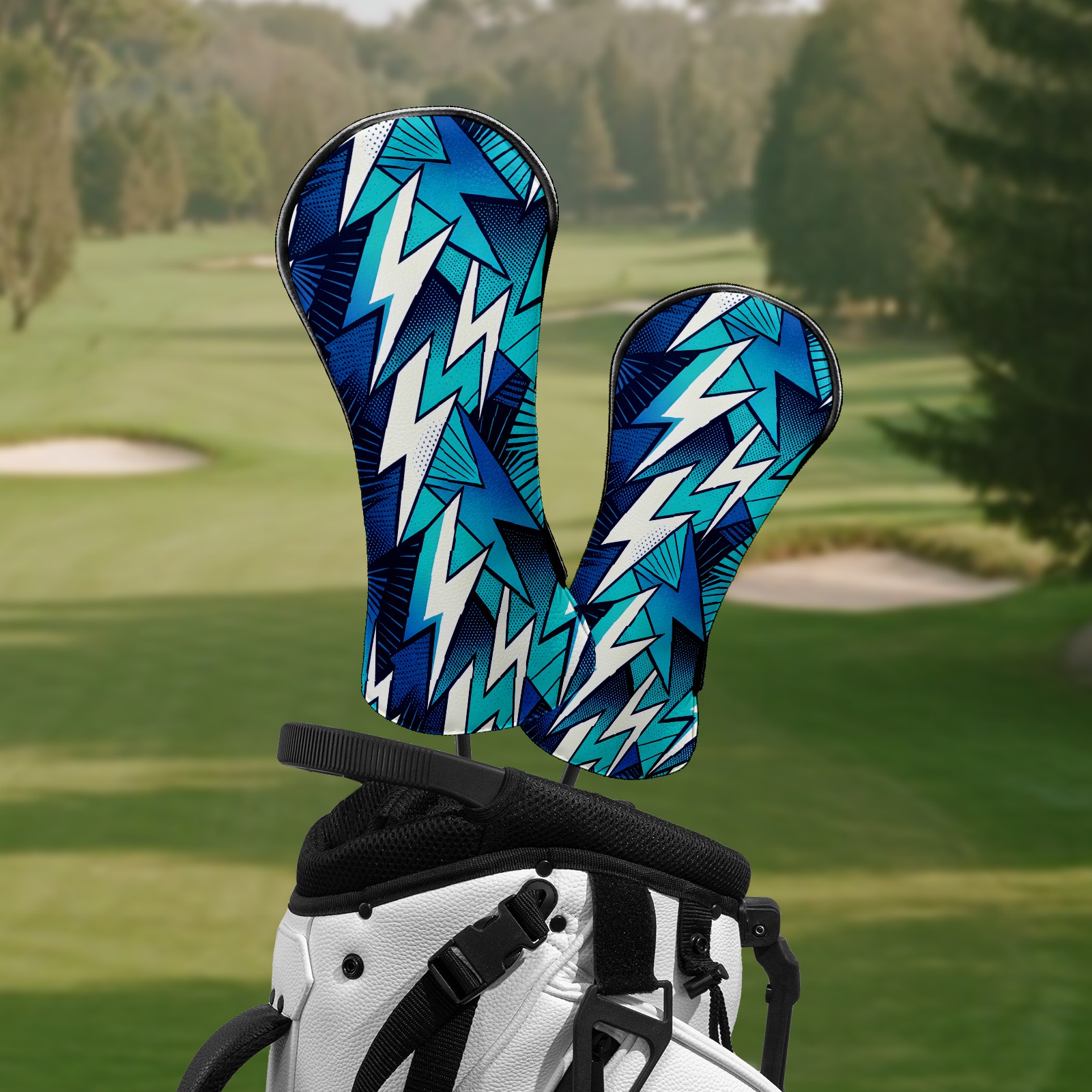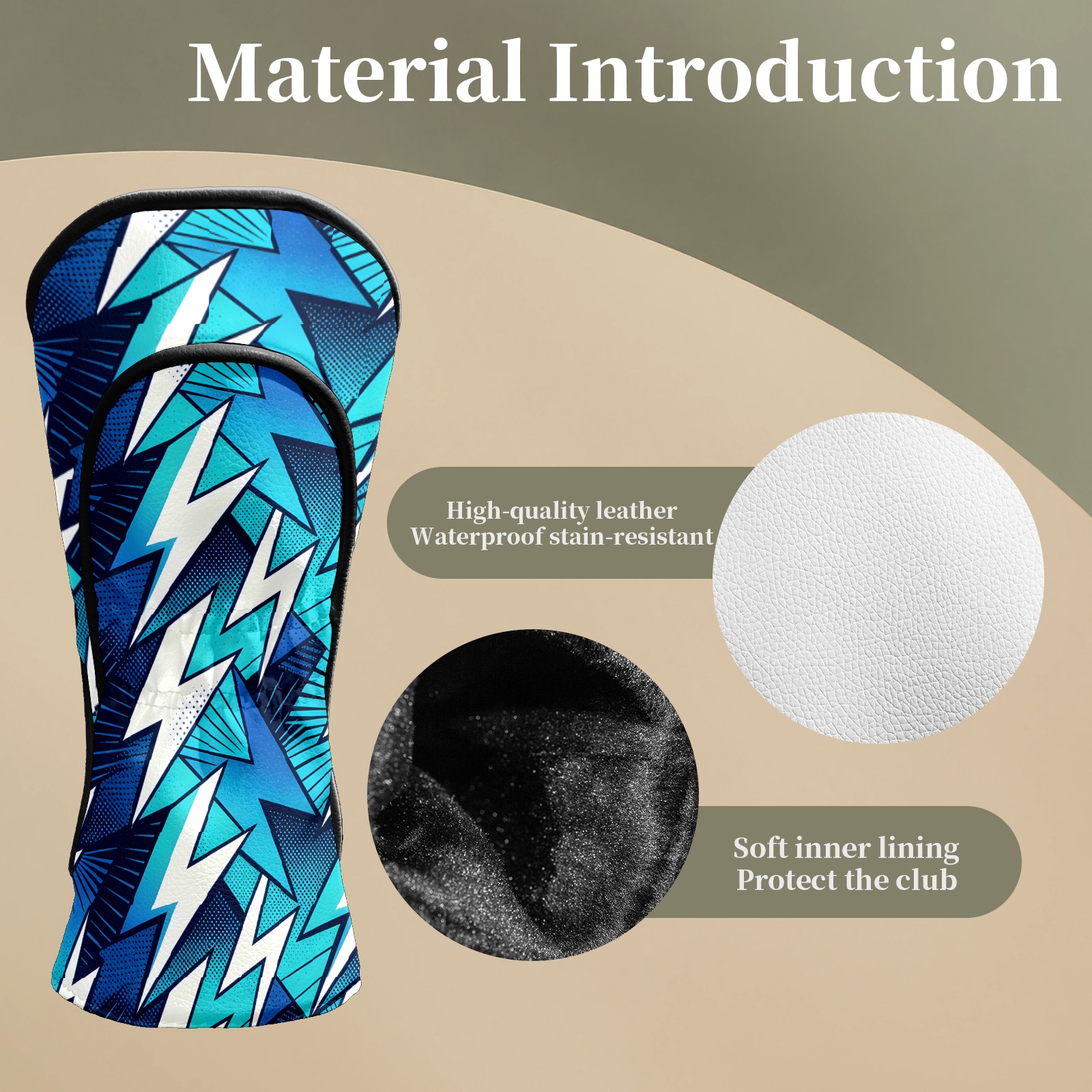 Counullo Golf Club Headcovers - Lightning Blue Premium PU Leather with Plush Lining for Driver & Fairway Woods, No-Slip Fit for All Clubs, Novelty Gift for Men & Women