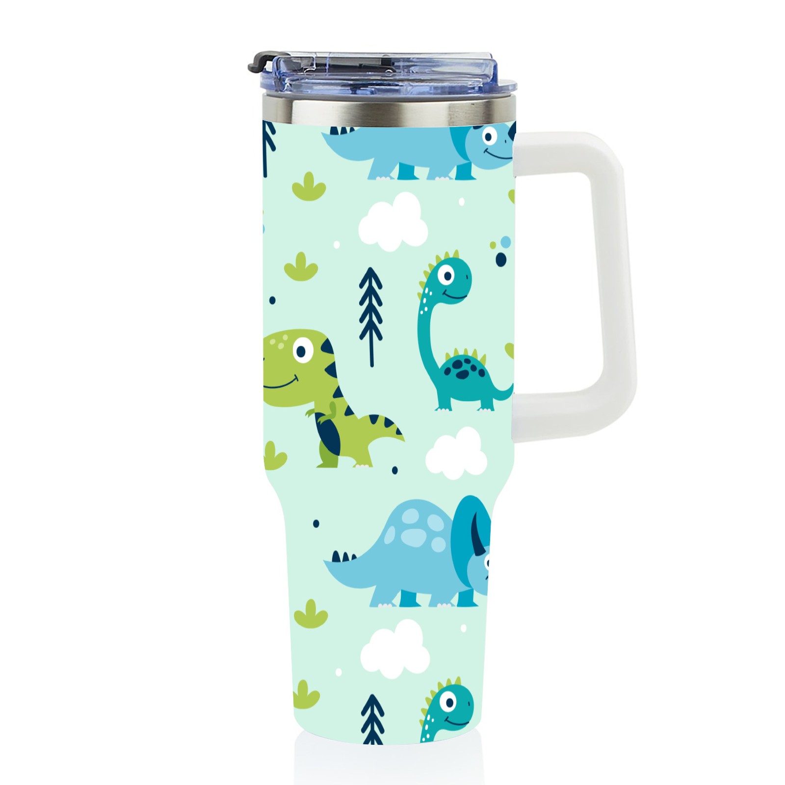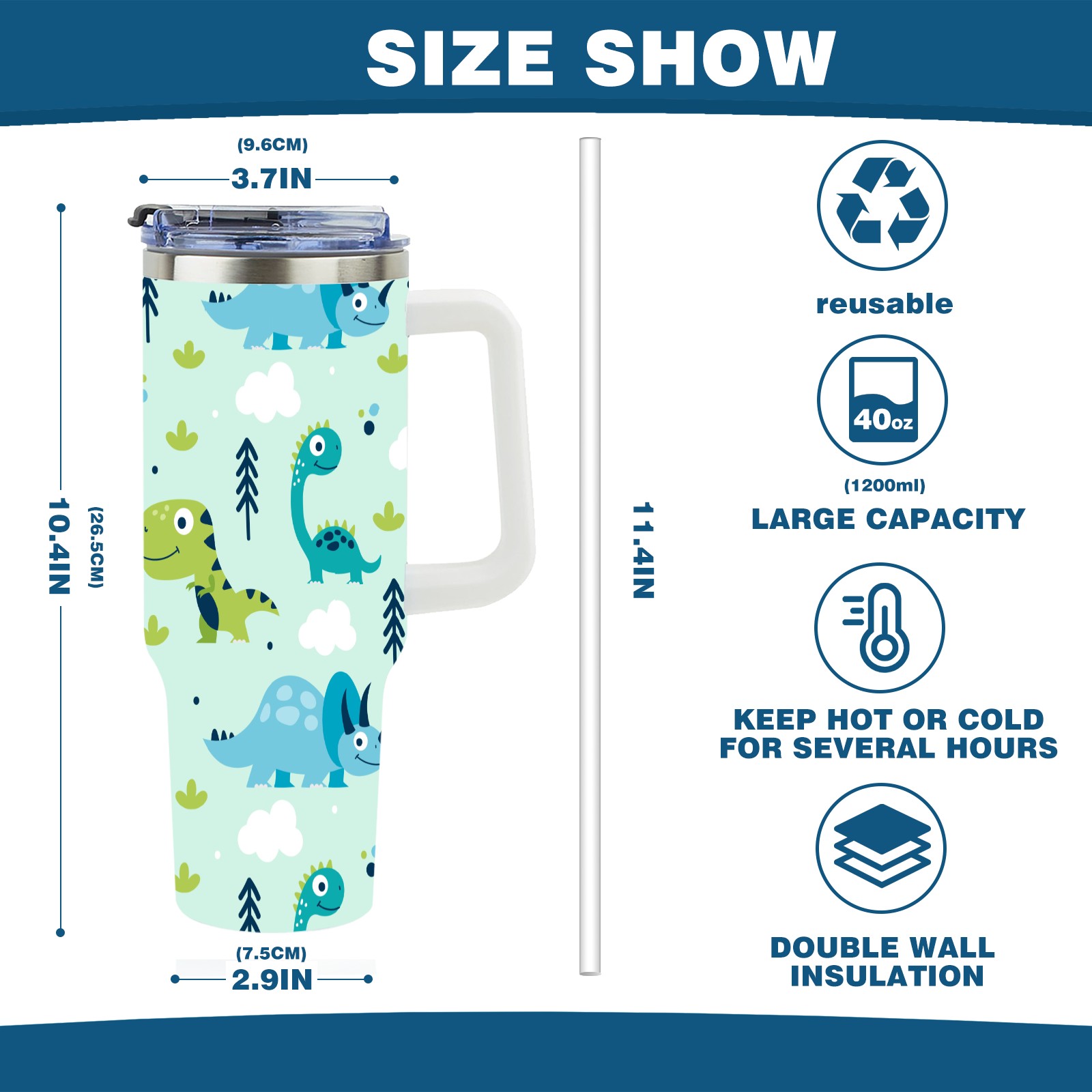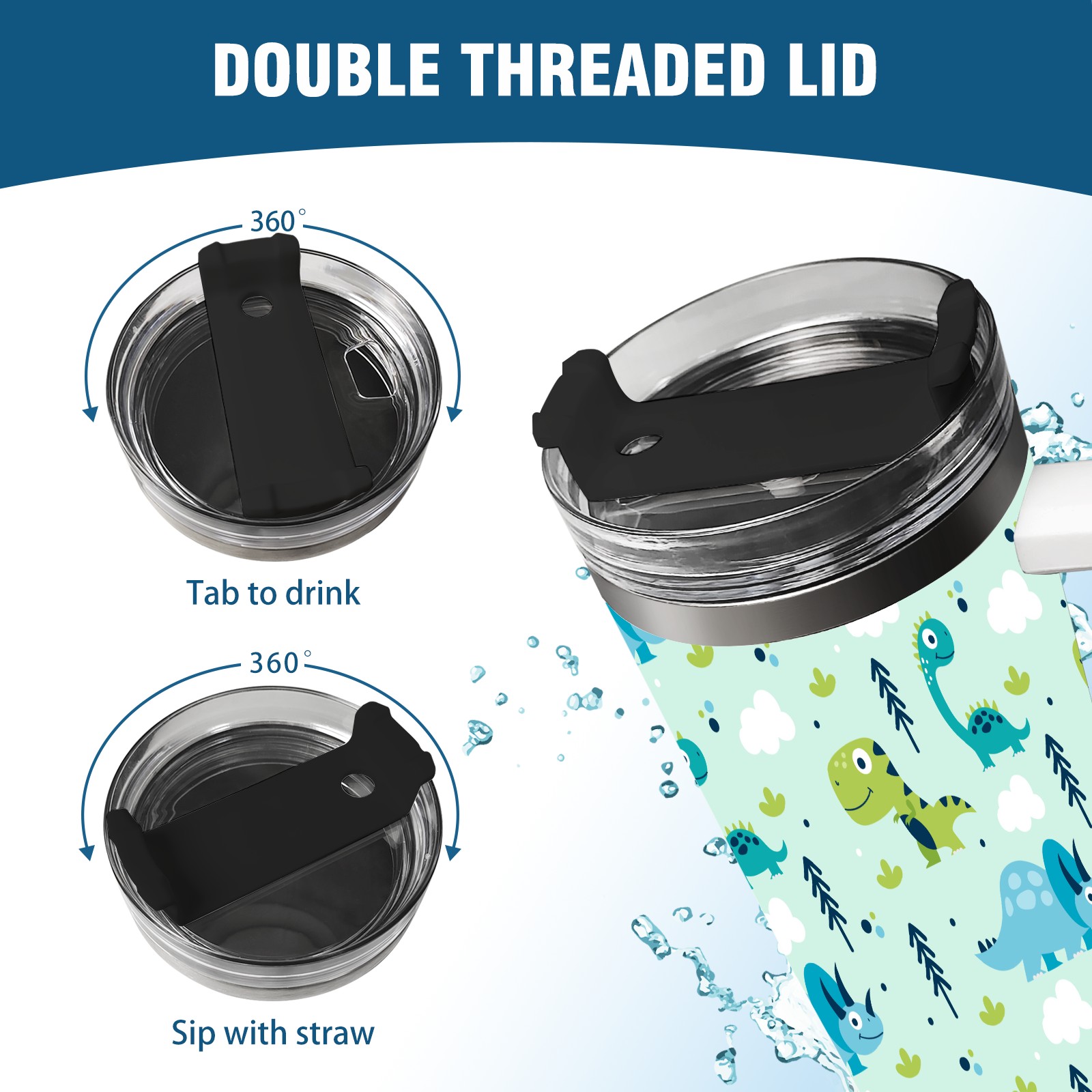 40oz Animal Dinosaur thermos with lid and straw, leak-proof stainless steel, with handle, spill-proof bottle, convenient for travel(pink)