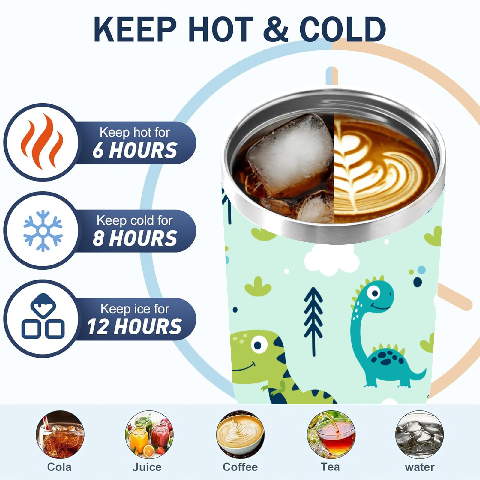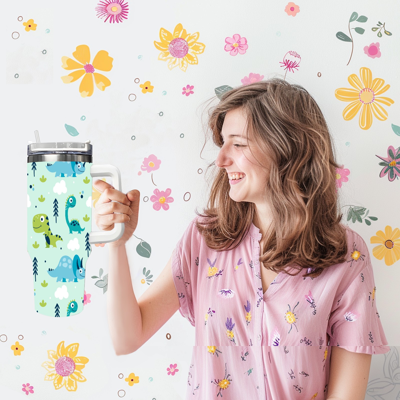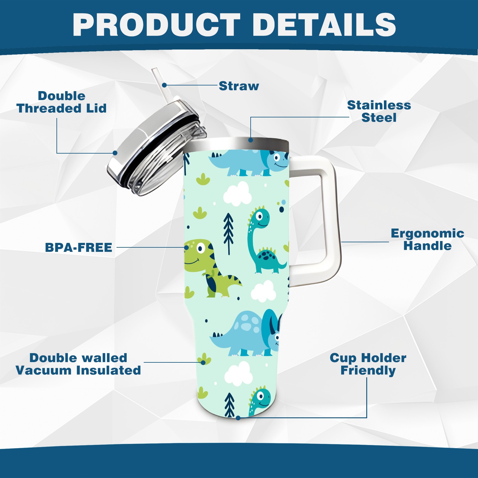 40oz Animal Dinosaur thermos with lid and straw, leak-proof stainless steel, with handle, spill-proof bottle, convenient for travel(pink)