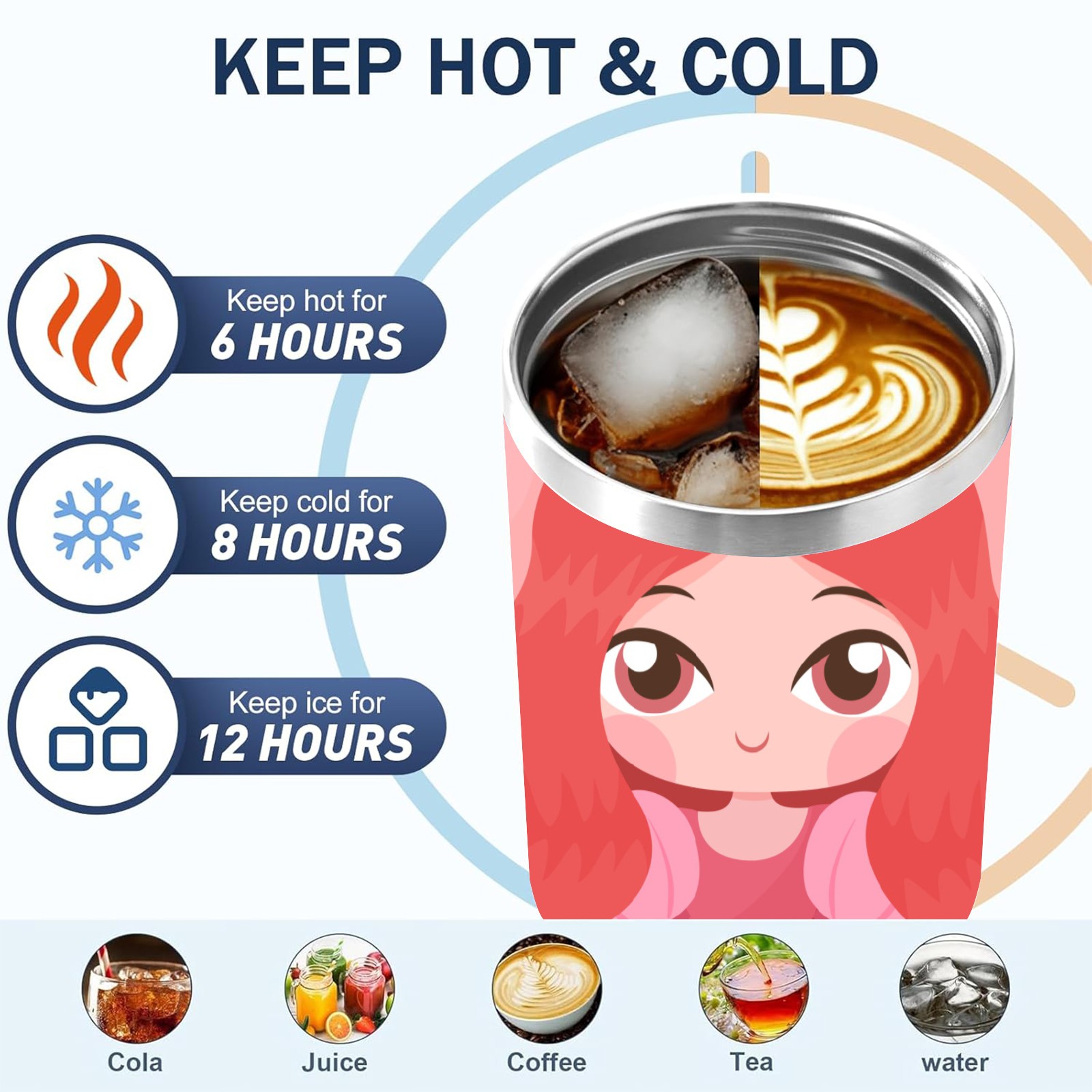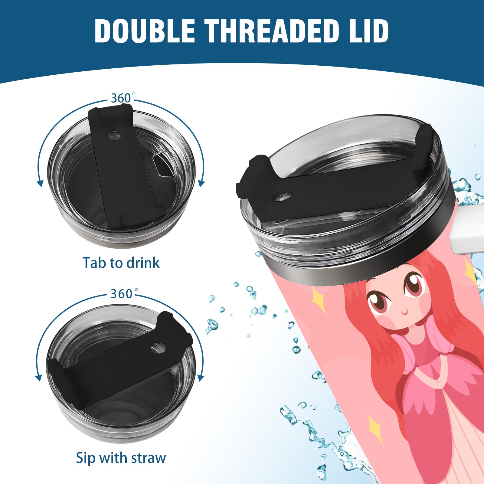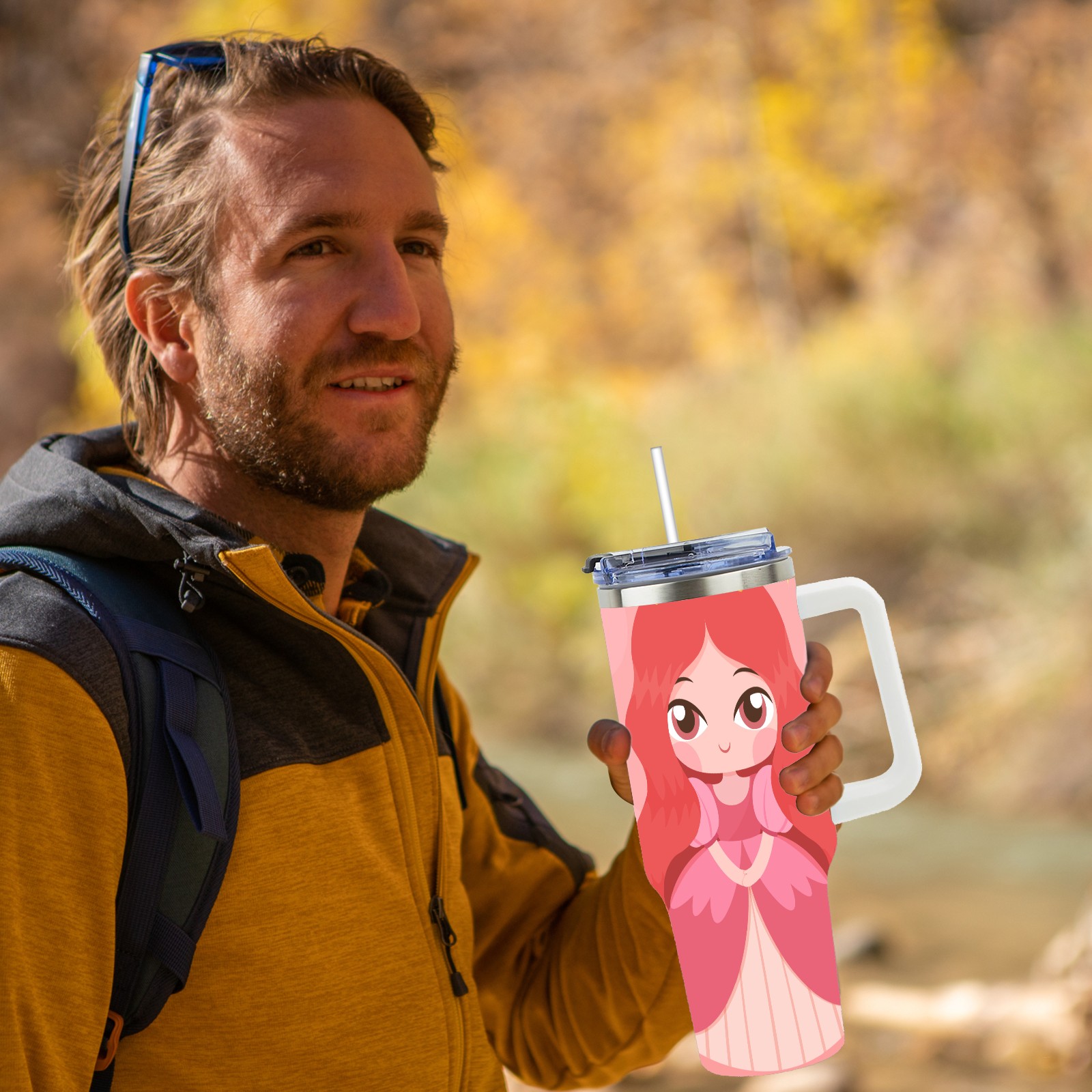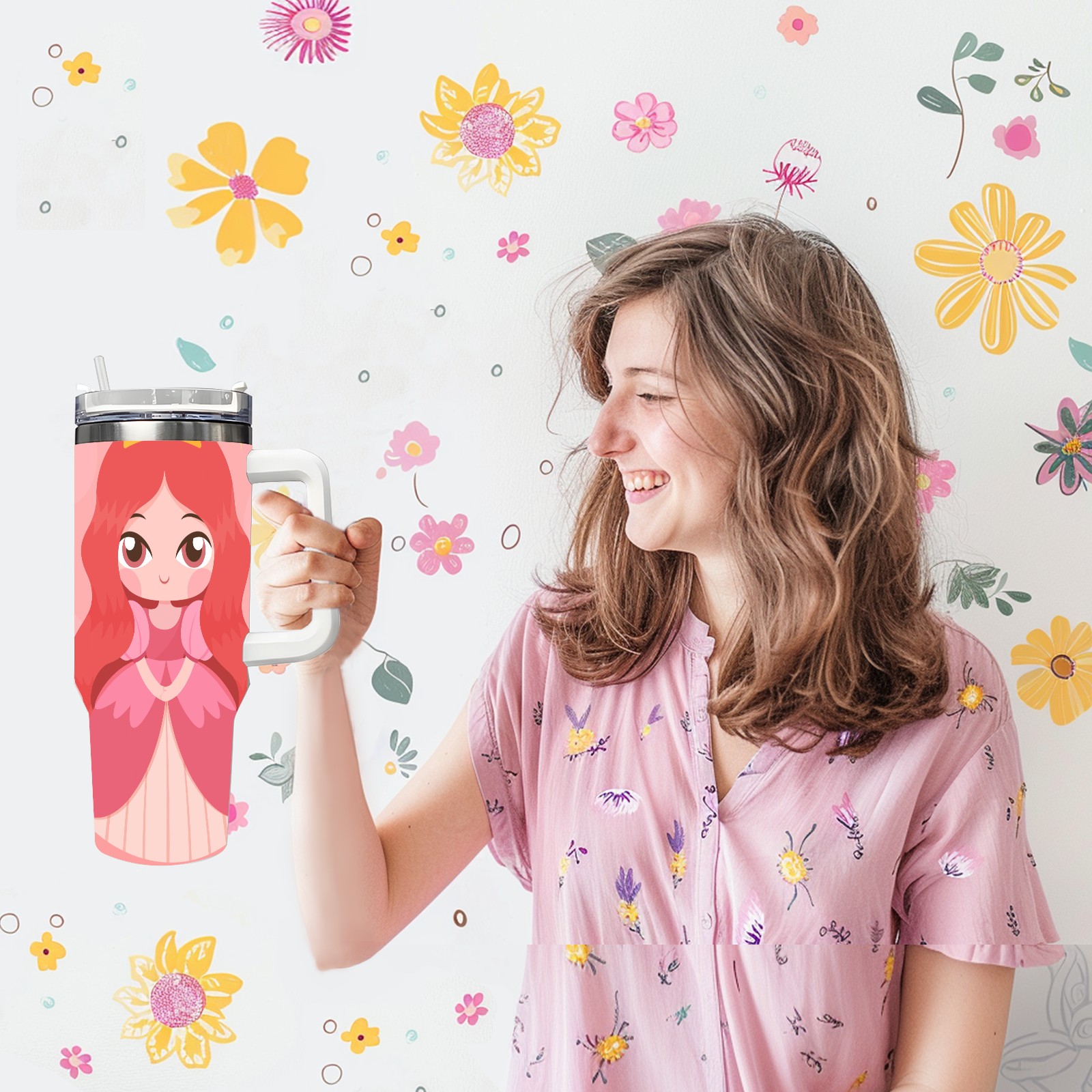 40oz Princess Baby thermos with lid and straw, leak-proof stainless steel, with handle, spill-proof bottle, convenient for travel(pink)