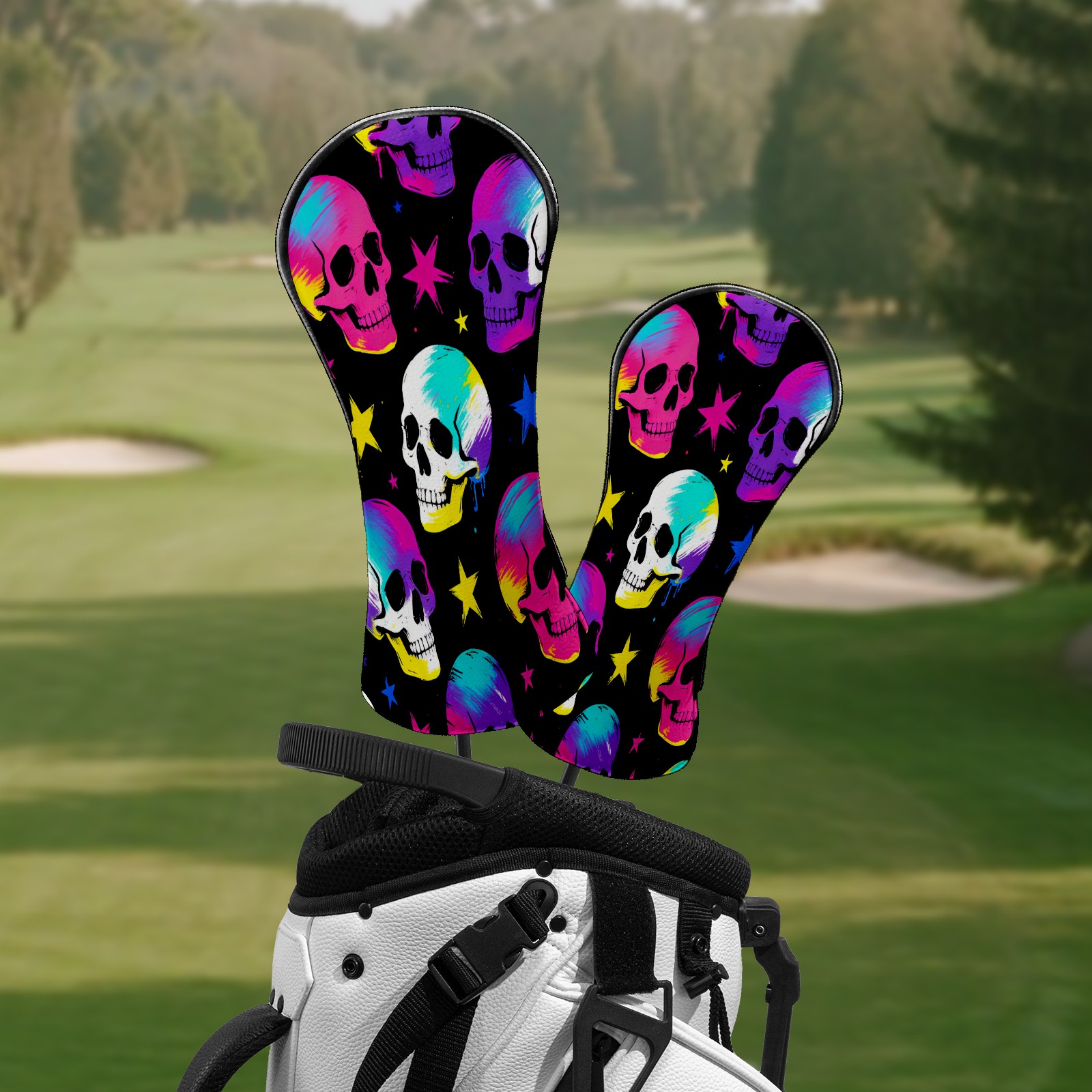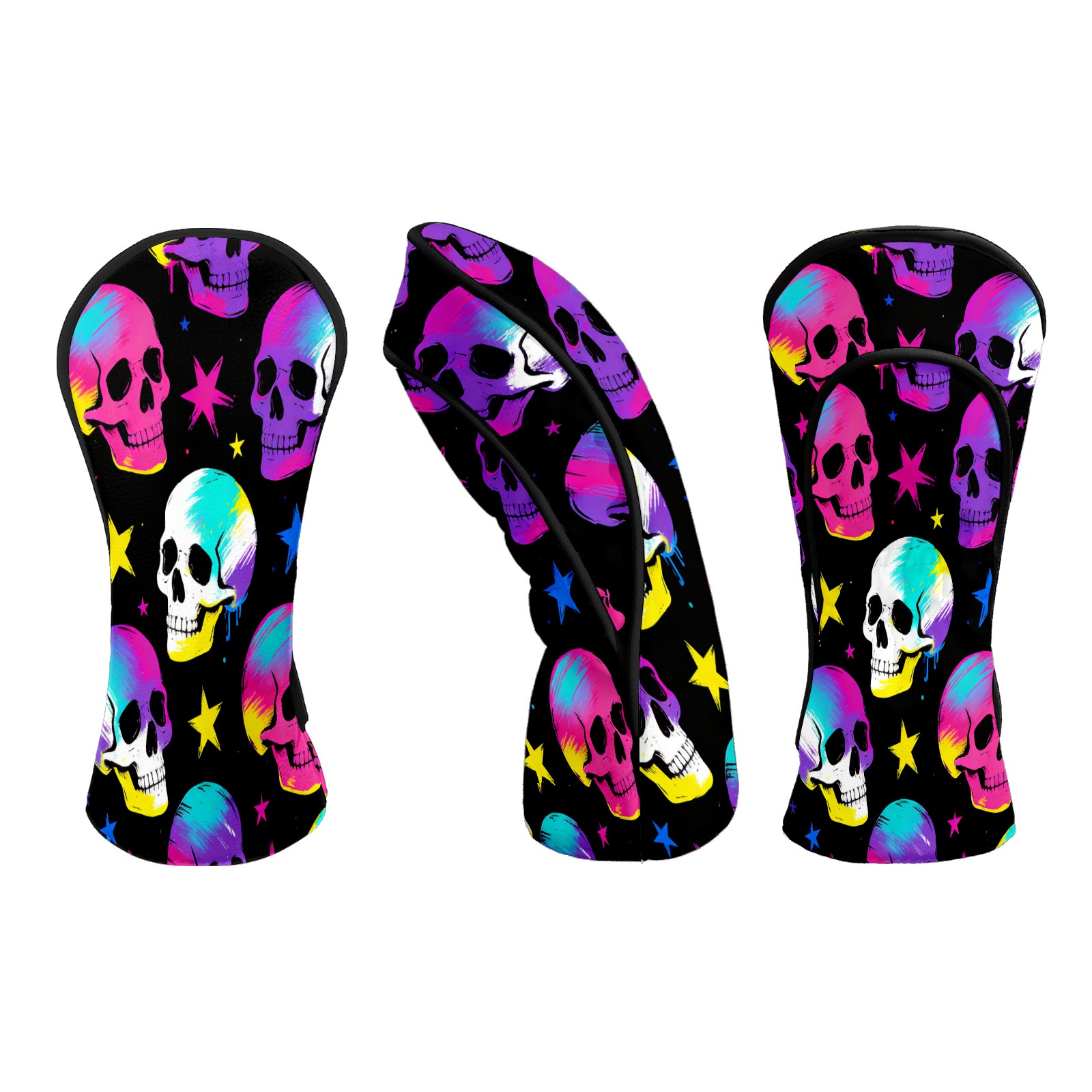 Counullo Golf Club Headcovers - Skulls Purple Premium PU Leather with Plush Lining for Driver & Fairway Woods, No-Slip Fit for All Clubs, Novelty Gift for Men & Women