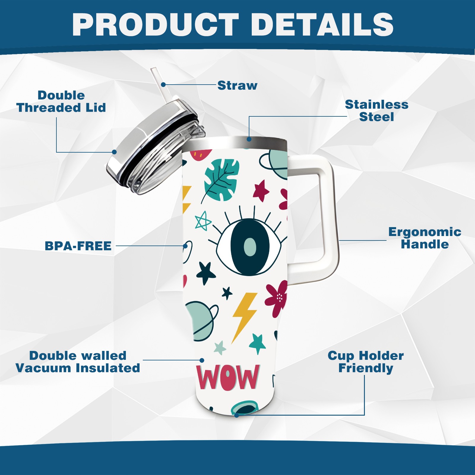 • <p>This multi-functional insulated water bottle features a simple and practical design, suitable for various daily scenarios. The ergonomic handle allows for easy one-handed drinking, and the detachable handle can be adjusted or removed as needed, making it convenient for commuting, exercising, or carrying to meetings. Made of high-quality stainless steel, it is BPA-free and features double-walled vacuum insulation technology that keeps drinks cold for 8 hours and hot for 6 hours, ensuring you can enjoy your beverage at the perfect temperature anytime, anywhere. The 40-ounce Christmas edition comes with a sliding lid, silicone straw, and a non-slip design. Accessories are dishwasher safe, and the narrow bottom and wide mouth design perfectly fits car cup holders. The exclusive flip-top straw lid is environmentally friendly and durable, with a one-touch leak-proof closure and two drinking modes: sip and gulp. A dust cover provides effective protection. This bottle is suitable for travel, office work, sports, camping, and other occasions, making it a thoughtful gift for friends and family.</p>