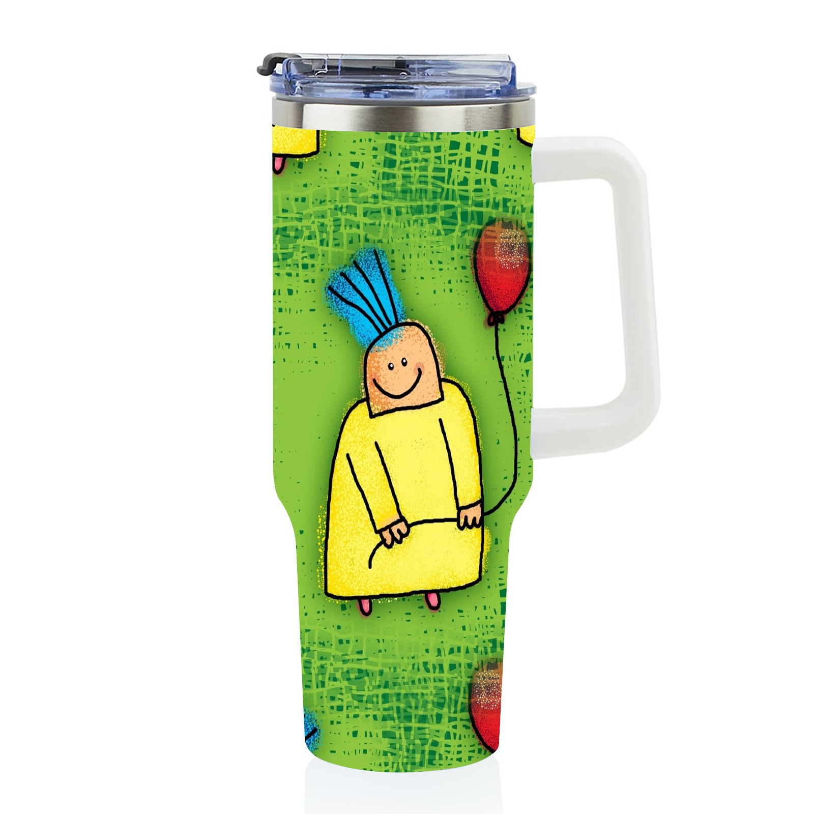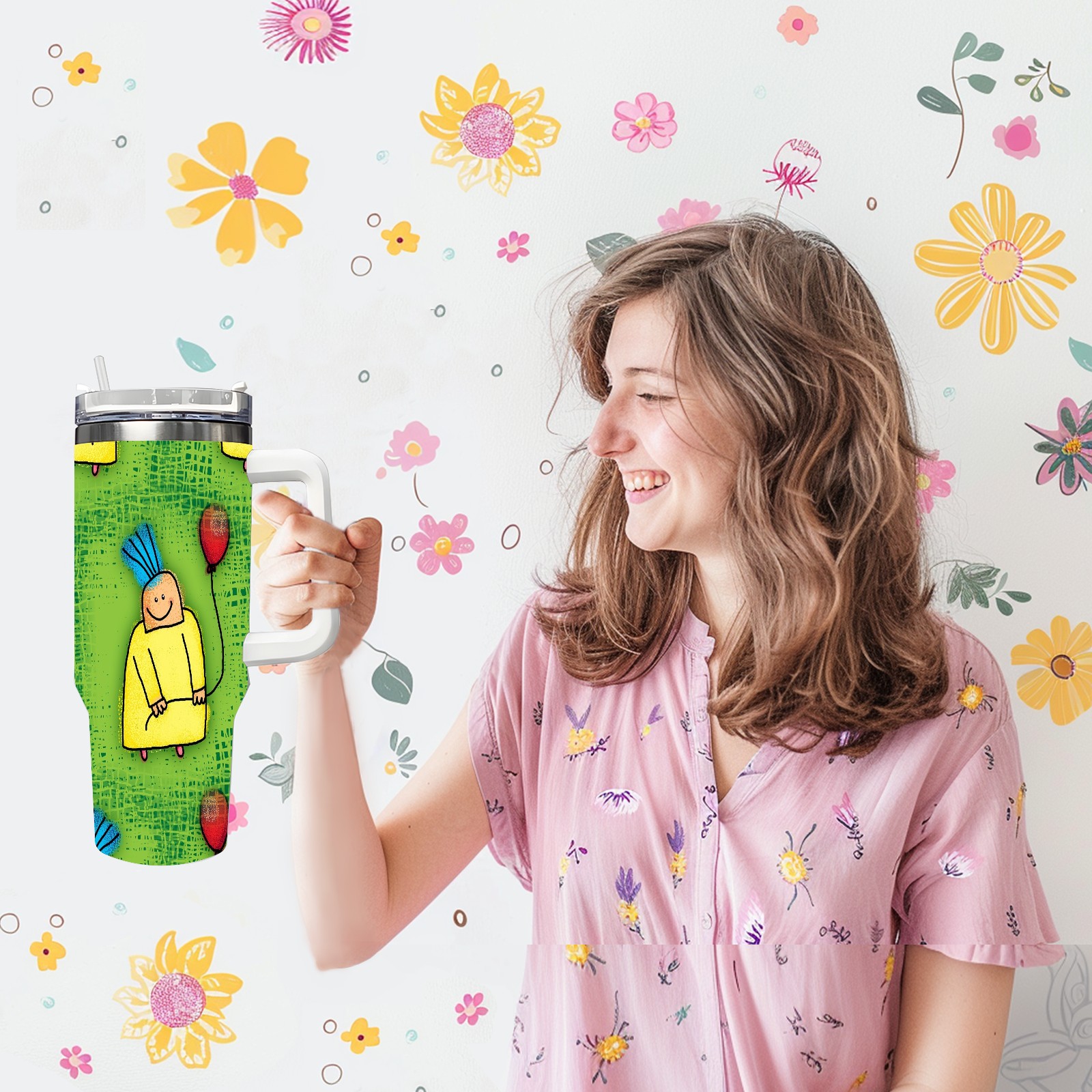 40oz Cartoon Boy thermos with lid and straw, leak-proof stainless steel, with handle, spill-proof bottle, convenient for travel(pink)