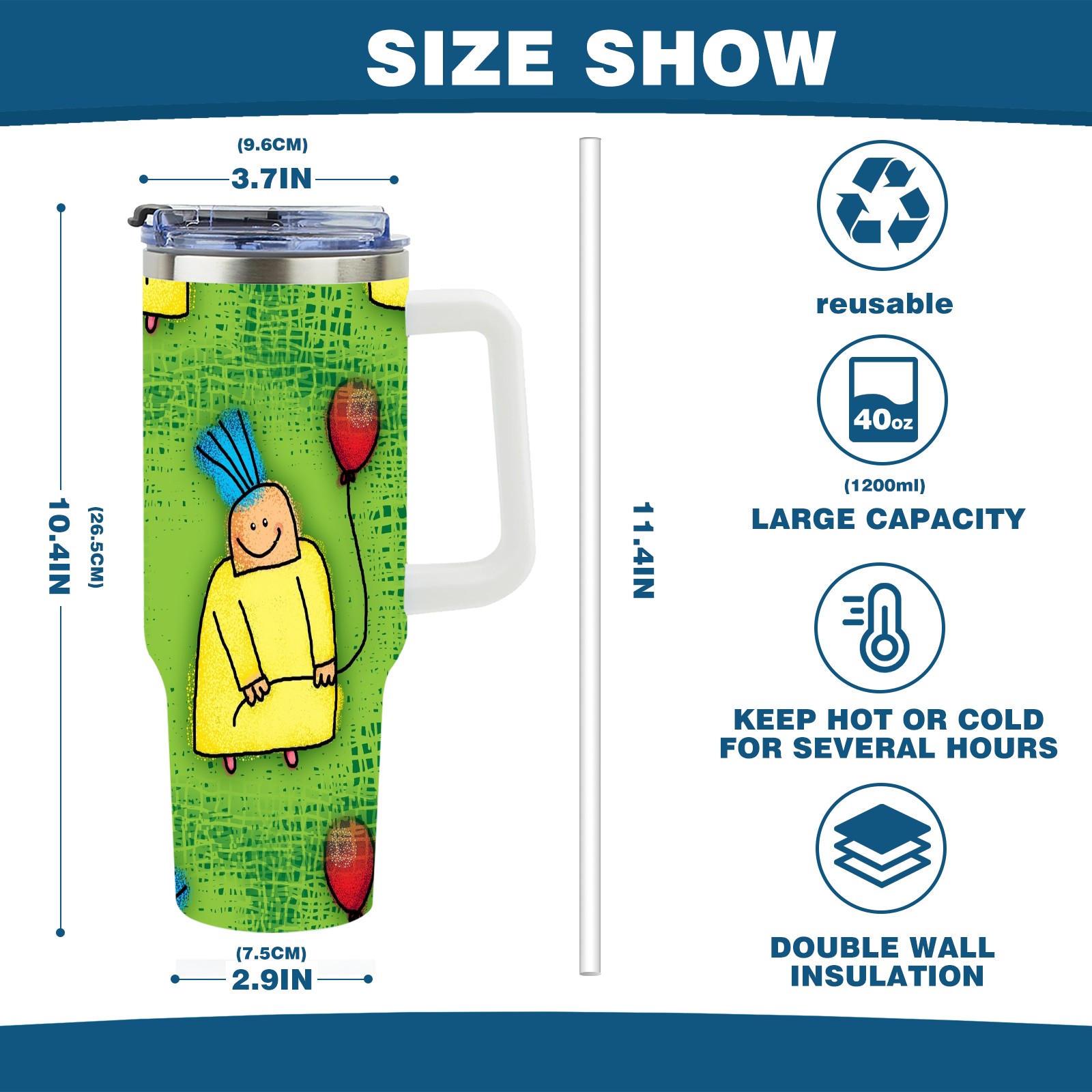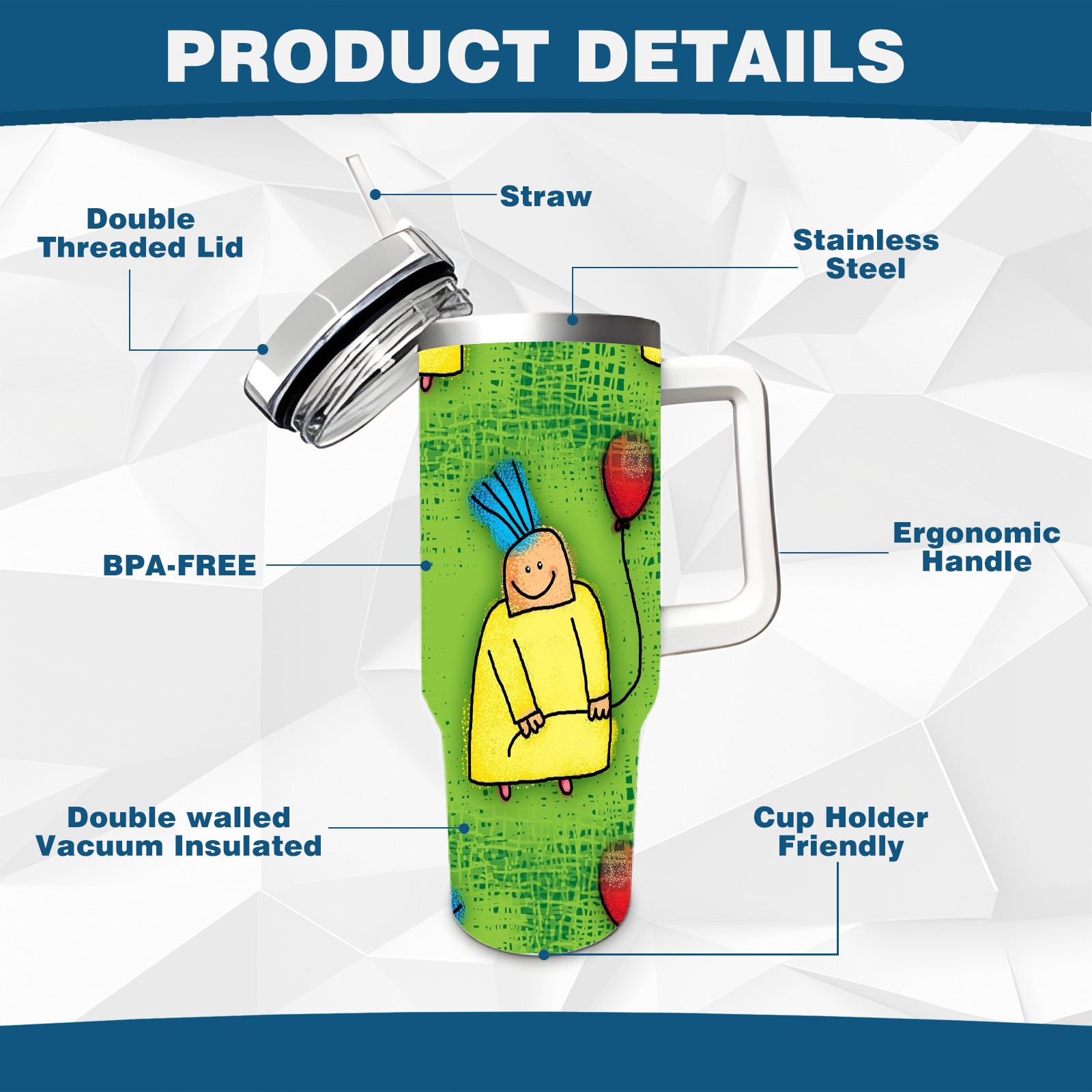 • <p>This multi-functional insulated water bottle features a simple and practical design, suitable for various daily scenarios. The ergonomic handle allows for easy one-handed drinking, and the detachable handle can be adjusted or removed as needed, making it convenient for commuting, exercising, or carrying to meetings. Made of high-quality stainless steel, it is BPA-free and features double-walled vacuum insulation technology that keeps drinks cold for 8 hours and hot for 6 hours, ensuring you can enjoy your beverage at the perfect temperature anytime, anywhere. The 40-ounce Christmas edition comes with a sliding lid, silicone straw, and a non-slip design. Accessories are dishwasher safe, and the narrow bottom and wide mouth design perfectly fits car cup holders. The exclusive flip-top straw lid is environmentally friendly and durable, with a one-touch leak-proof closure and two drinking modes: sip and gulp. A dust cover provides effective protection. This bottle is suitable for travel, office work, sports, camping, and other occasions, making it a thoughtful gift for friends and family.</p>