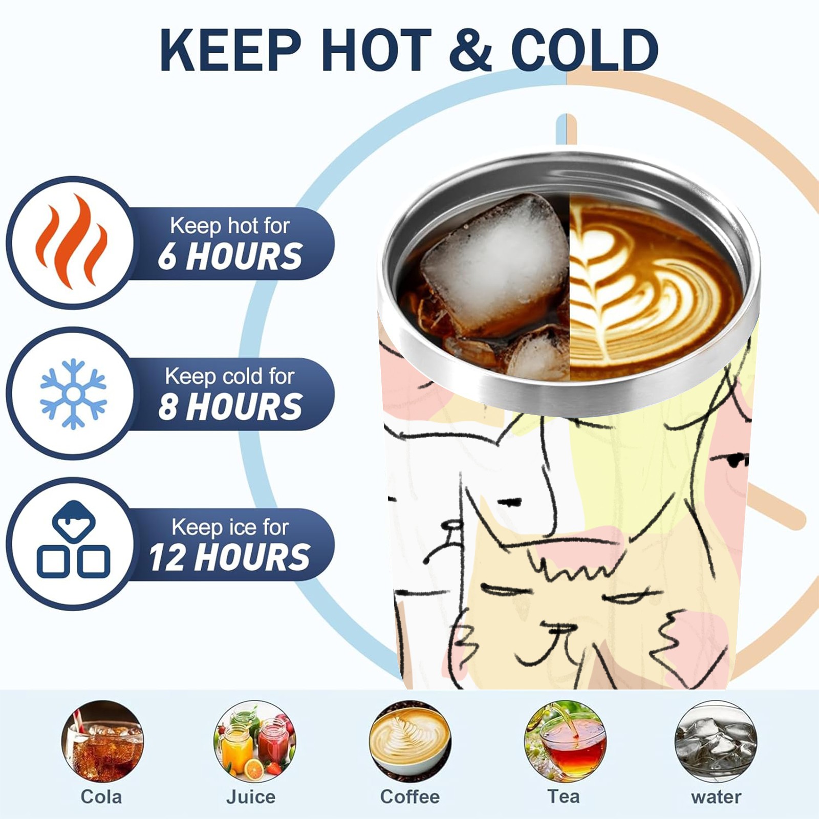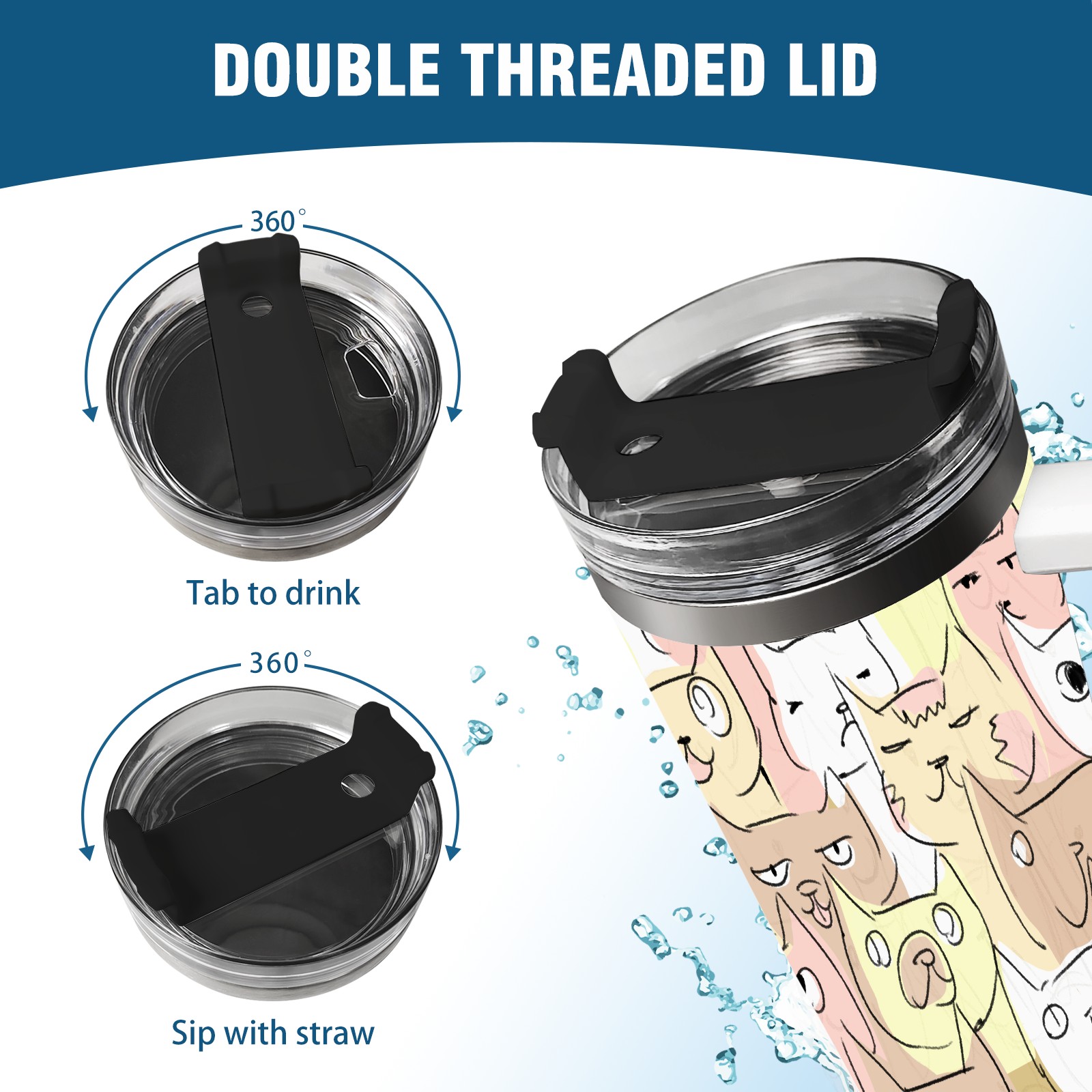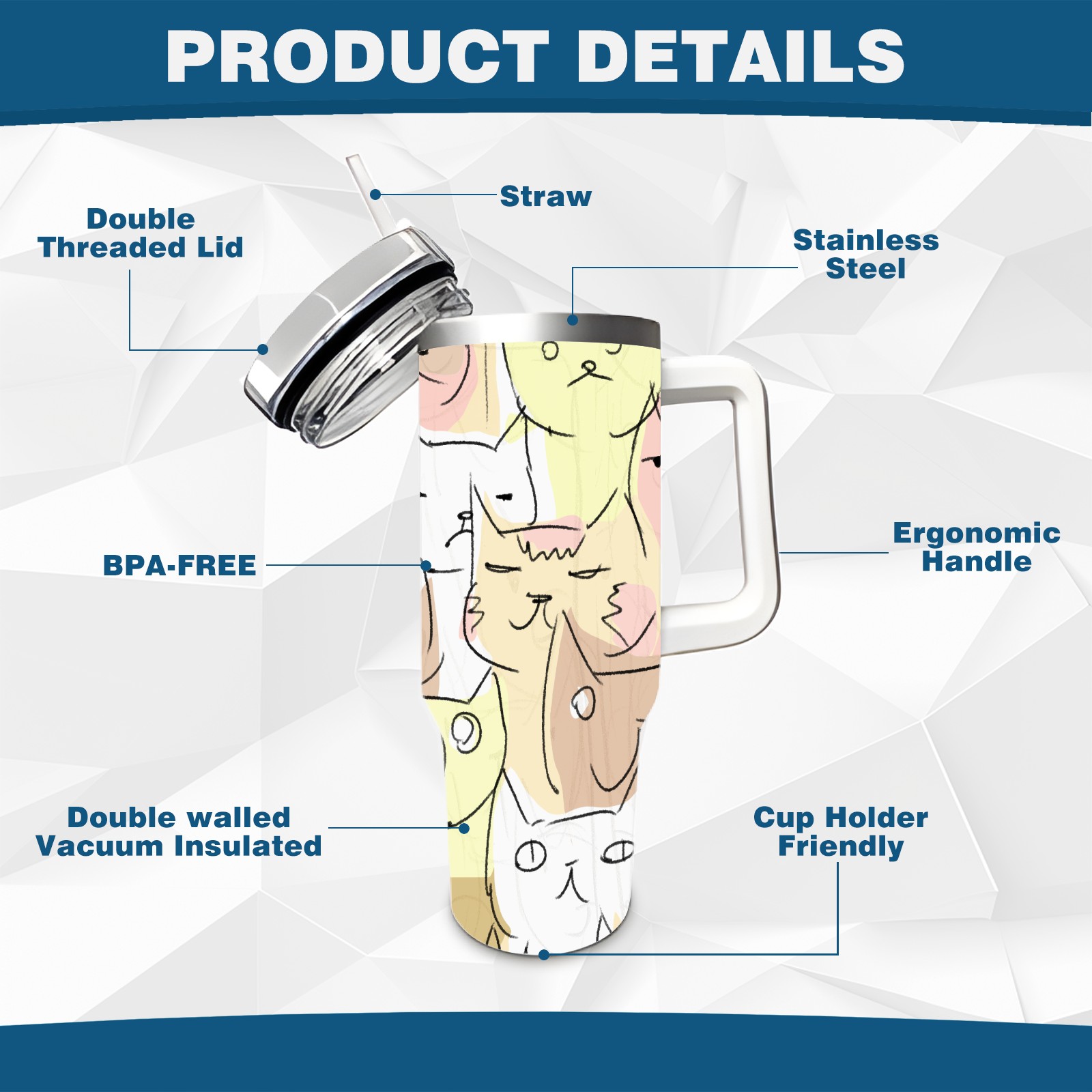 40oz Abstract Cat thermos with lid and straw, leak-proof stainless steel, with handle, spill-proof bottle, convenient for travel(pink)